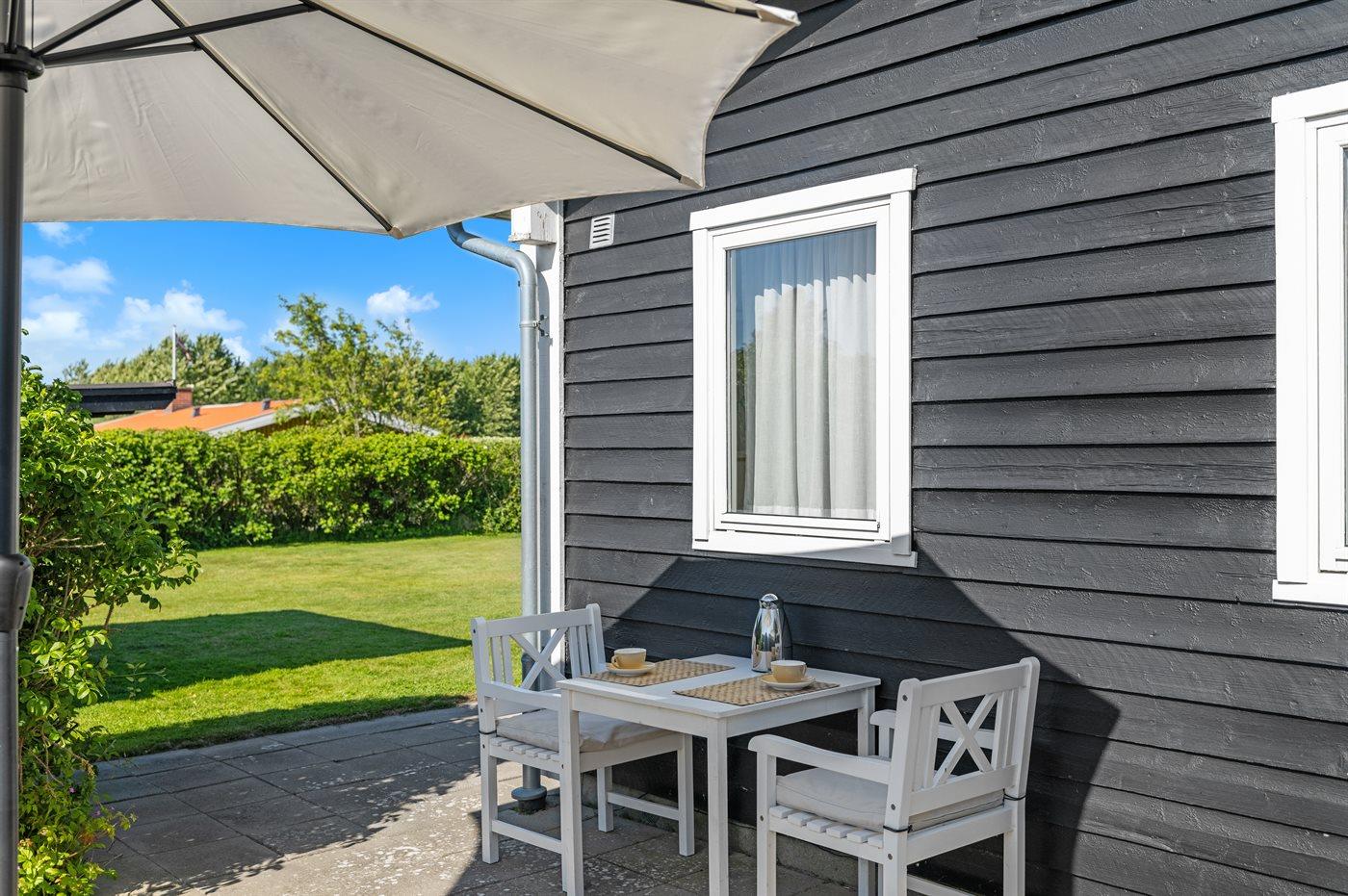 Ferieboligen er beliggende på en 800 m² stor havegrund. Der er 140 m til havet. Nærmeste forretning er beliggende i en afstand af 2000 m. Til ferieboligen hører 40 m² terrasseareal. Desuden er der 20 m² overdækket terrasse. Shelter. Udendørs bruser. Der er mulighed for at tilberede maden udendørs i udekøkkenet. Grill til rådighed. Parkering ved ferieboligen.