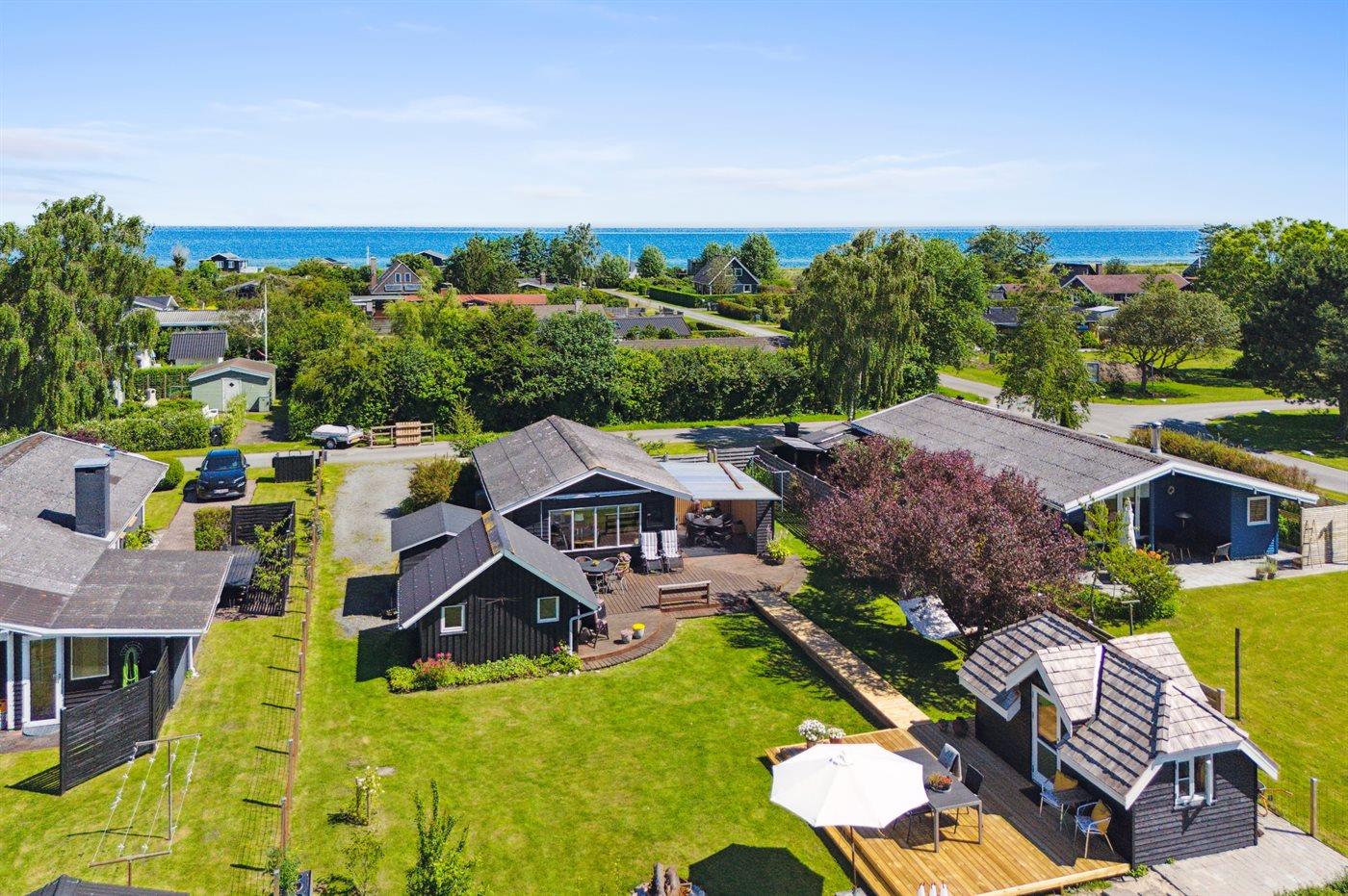 Ferieboligen er beliggende på en 645 m² stor havegrund. Der er 200 m til havet. Nærmeste forretning er beliggende i en afstand af 2000 m. Til ferieboligen hører 90 m² terrasseareal. Desuden er der 20 m² overdækket terrasse. Der er redskabsrum. Grill til rådighed. Der er installeret ladestander til opladning af elbil. Type 2 stik. Med 11 kW ladeeffekt. Parkering ved ferieboligen.