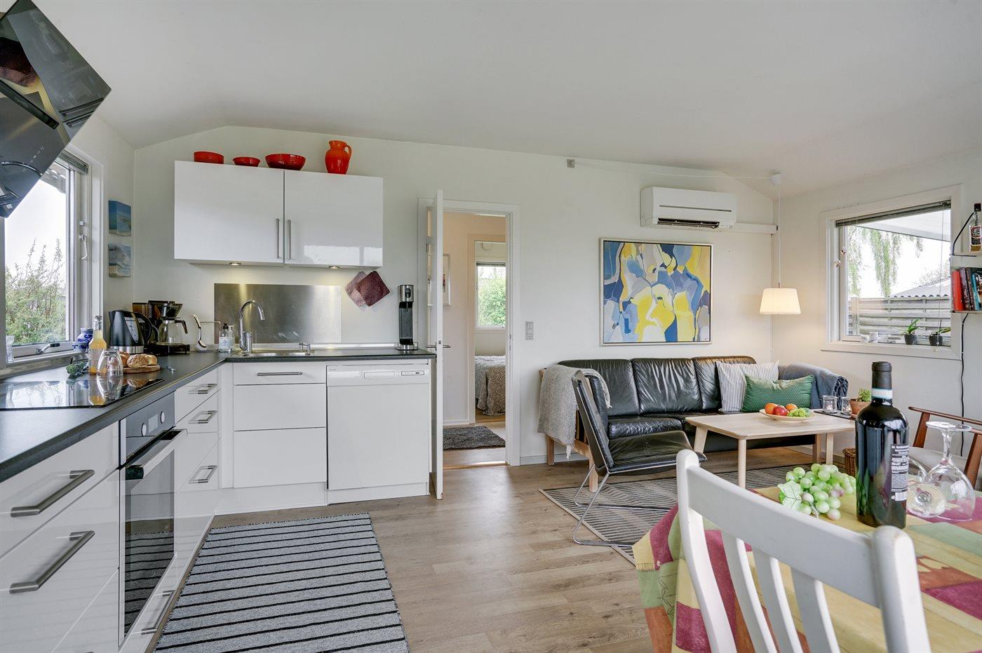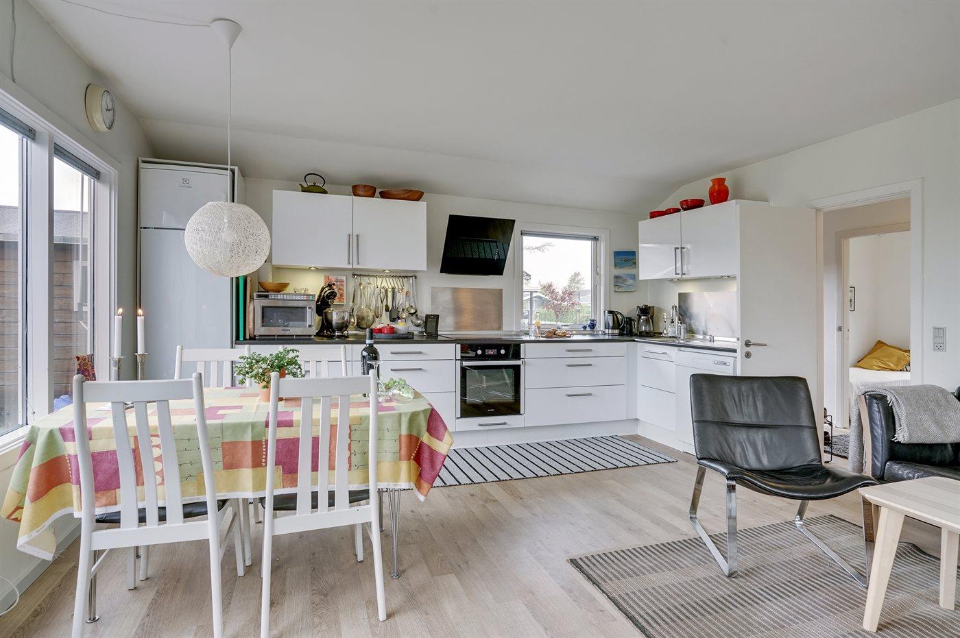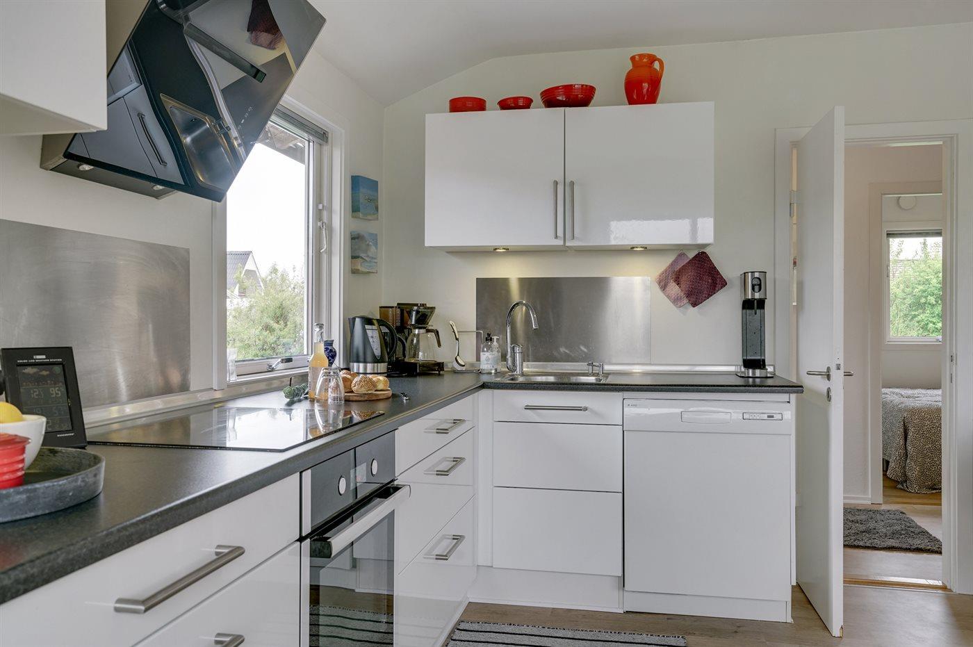 Køkkenet er udstyret med 1 køleskab. Der er 4 induktionskogeplader, varmluftovn, mikrobølgeovn samt opvaskemaskine.