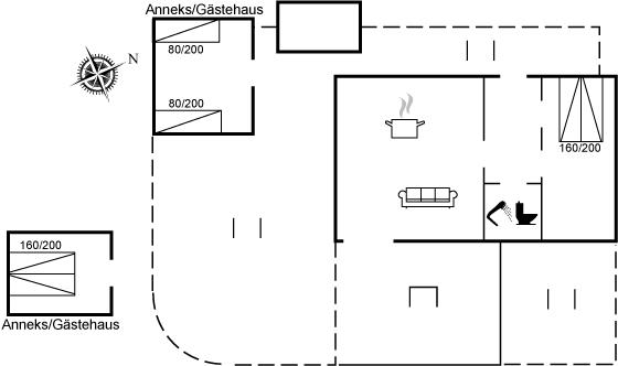 På grunden er der 2 flotte annekser, hvor de 4 af sovepladerne befinder sig.