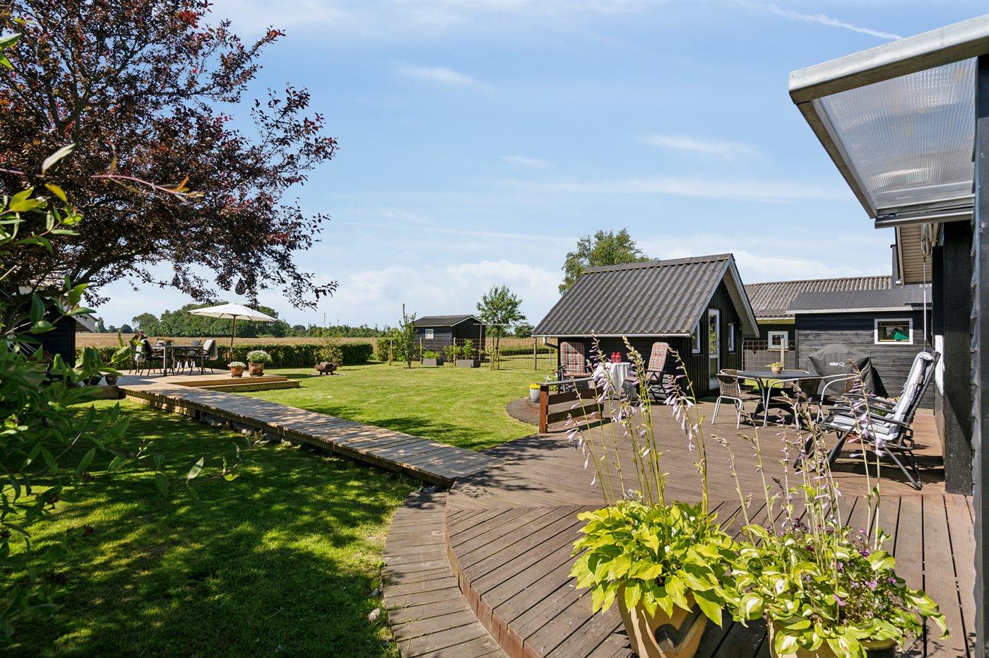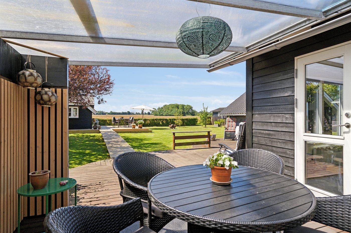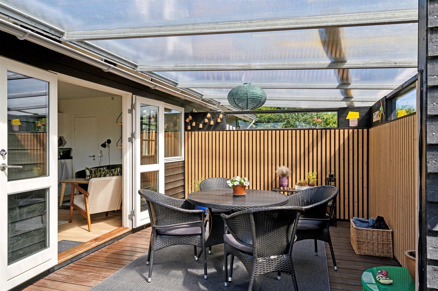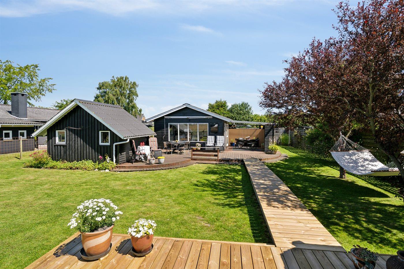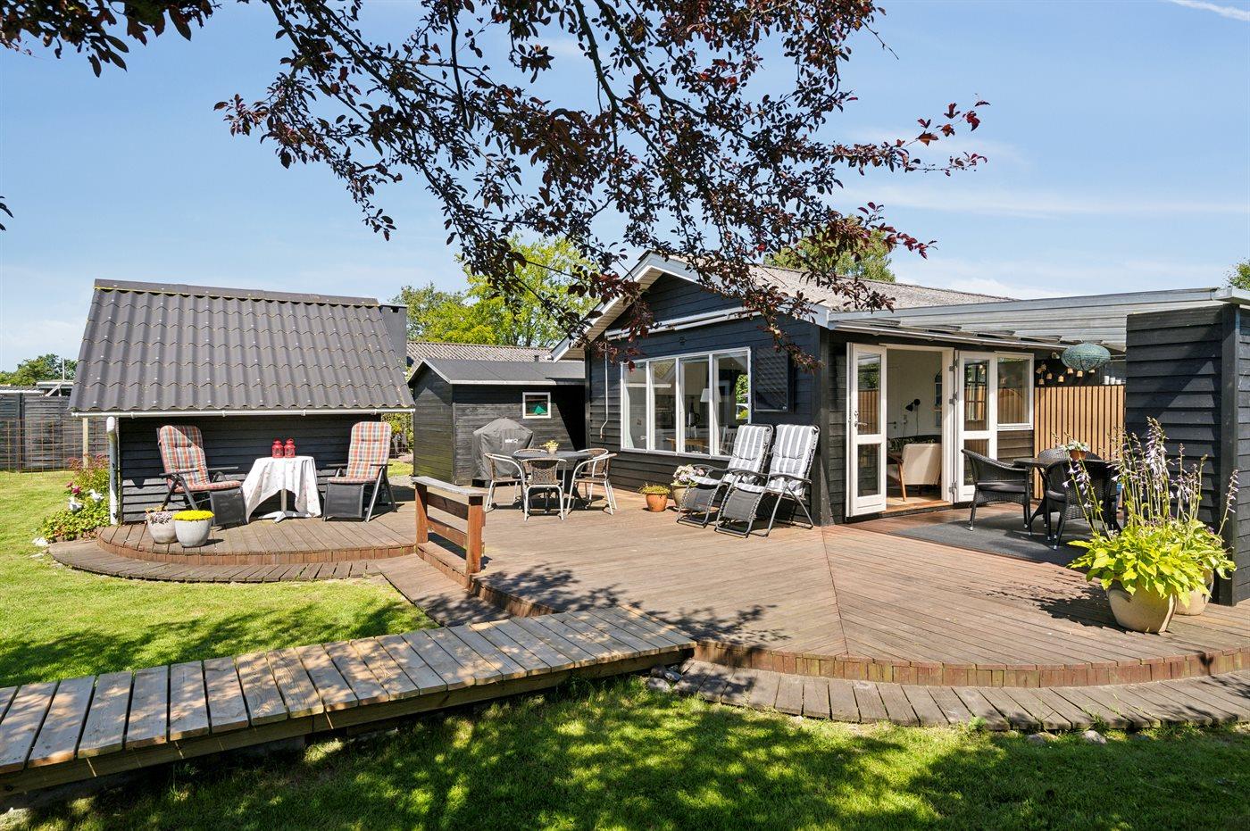Hyggeligt sommerhus nær Fyns bedste badestrand med stor terrasse og plads til udendørs aktiviteter.