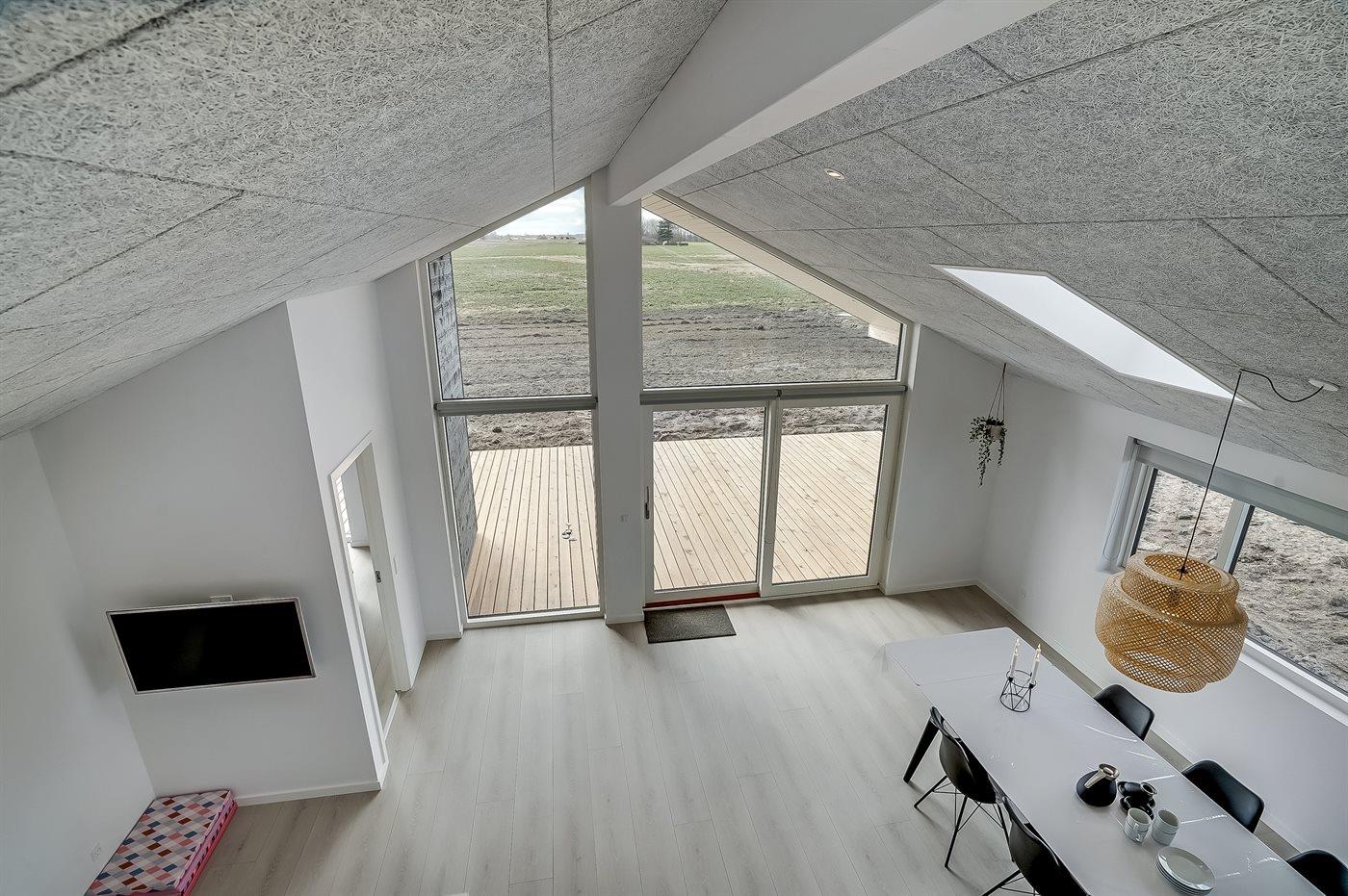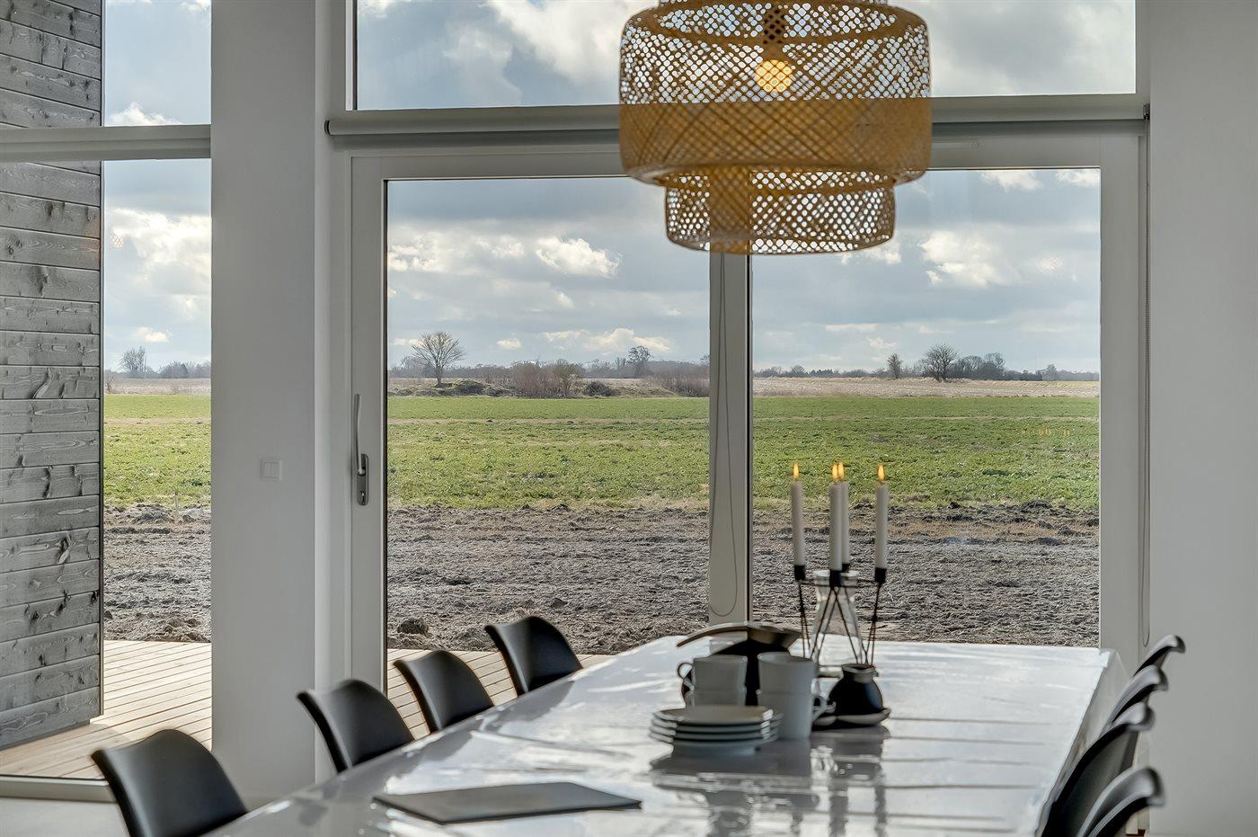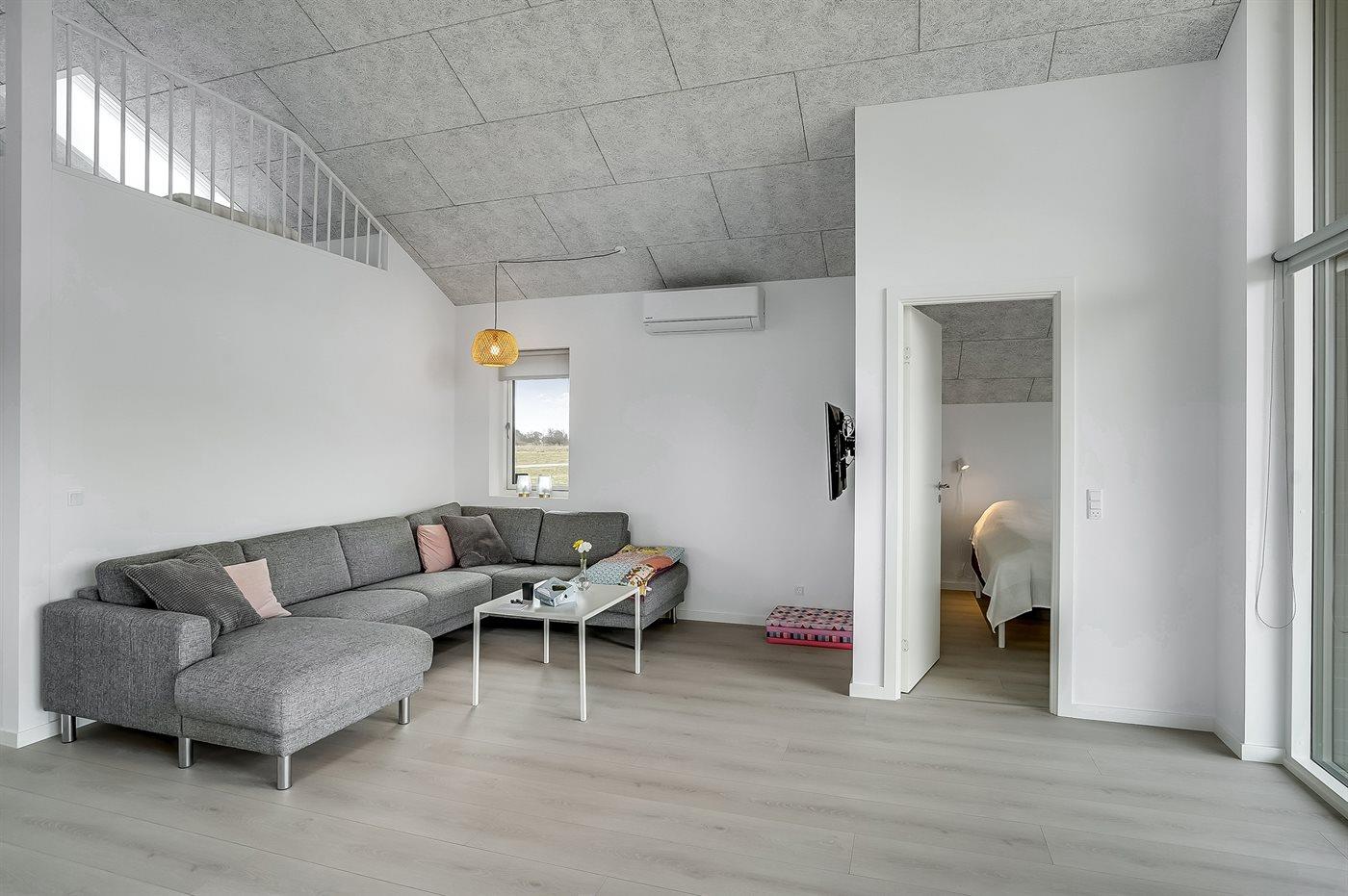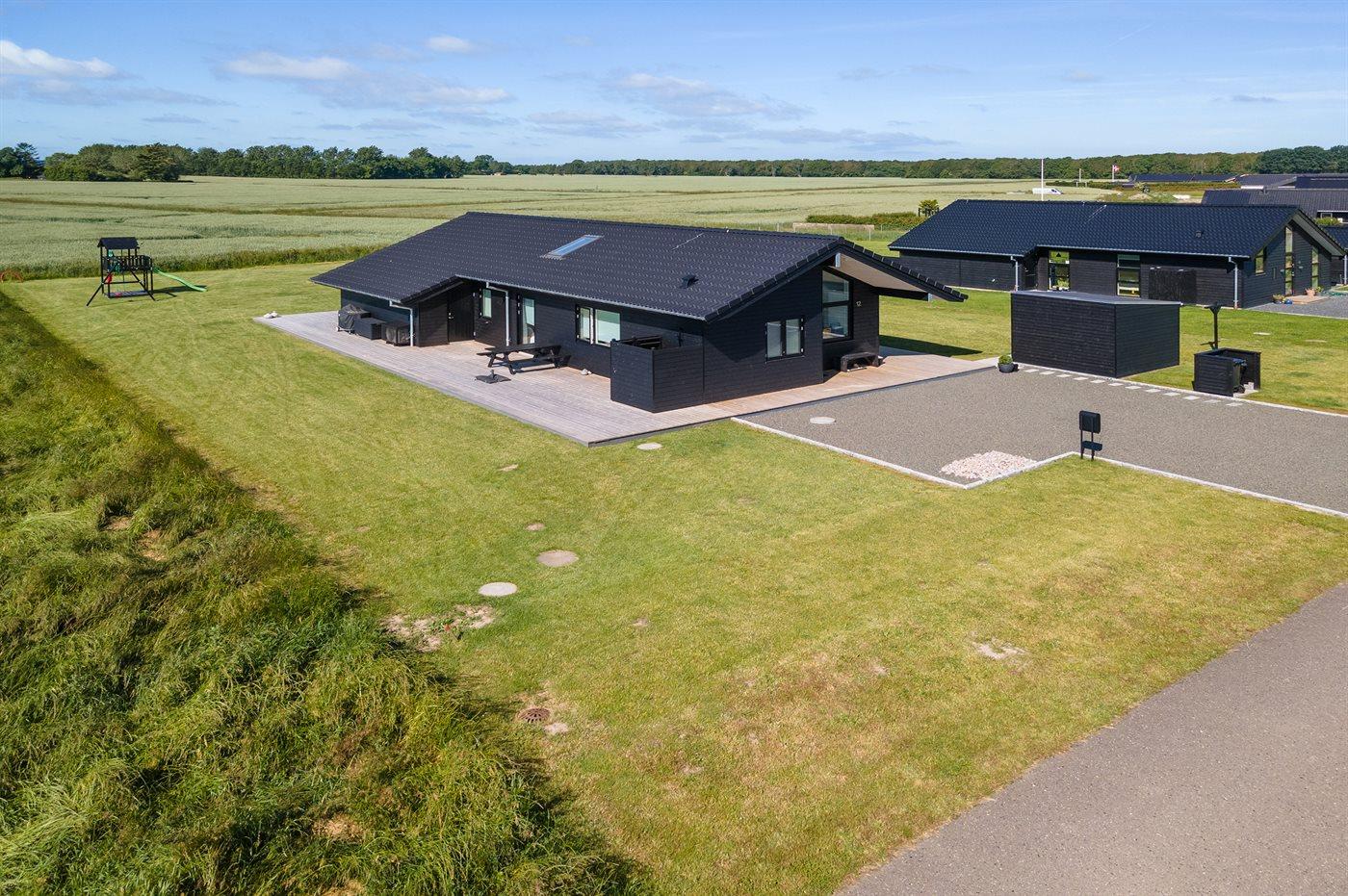 Lys og nybygget sommerhus nær børnevenlig badestrand med stor terrasse og moderne faciliteter.