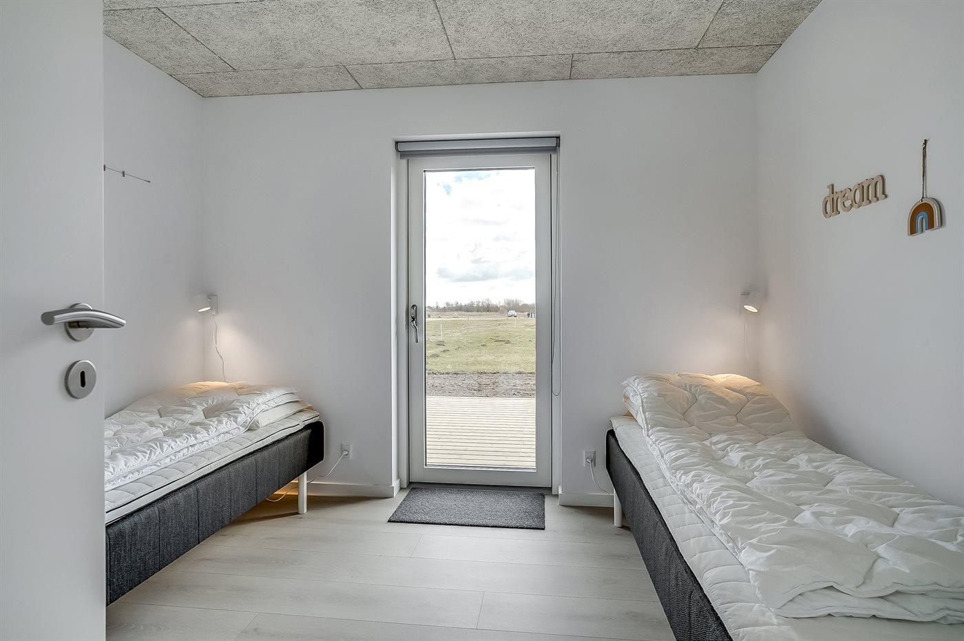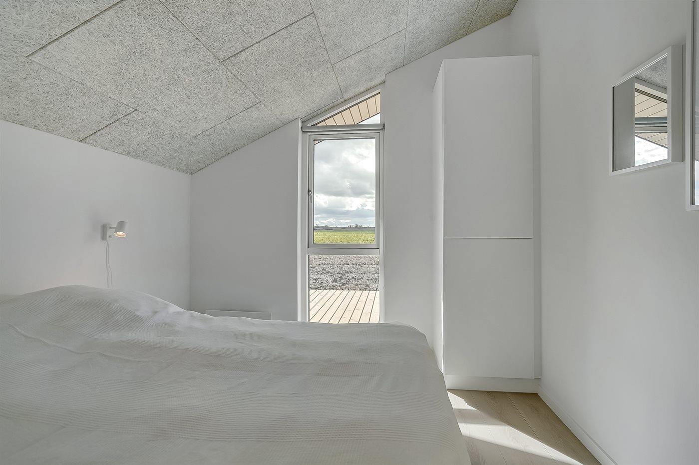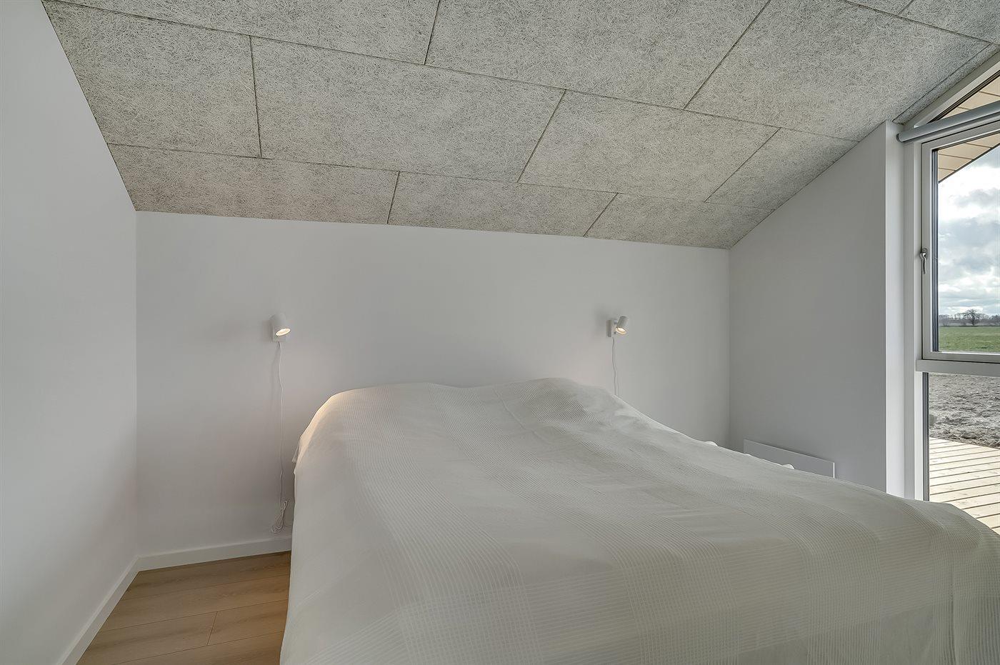Der er i alt 3 soveværelser. Sovepladserne fordeler sig på: 2 sovepladser i dobbeltseng. 4 sovepladser i enkeltsenge. 2 sovepladser på madrasser. 2 af disse sovepladser befinder sig på husets hems. Derudover er der 1 stk. barneseng.