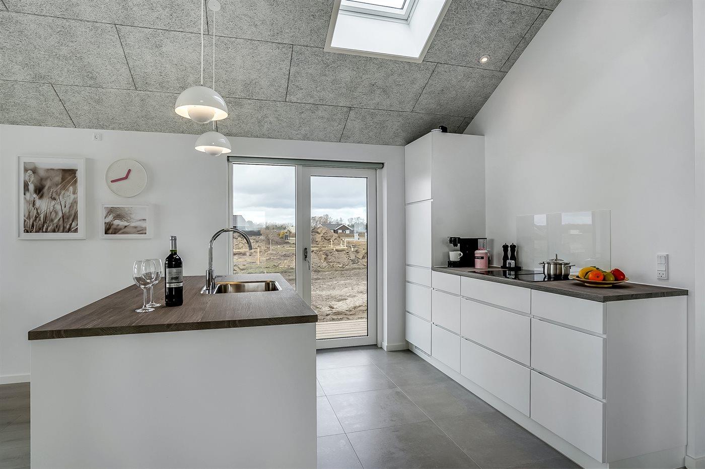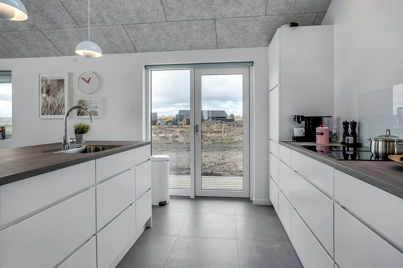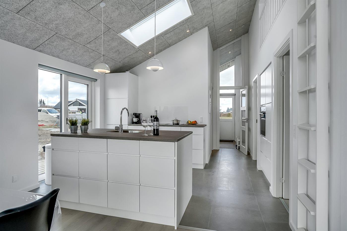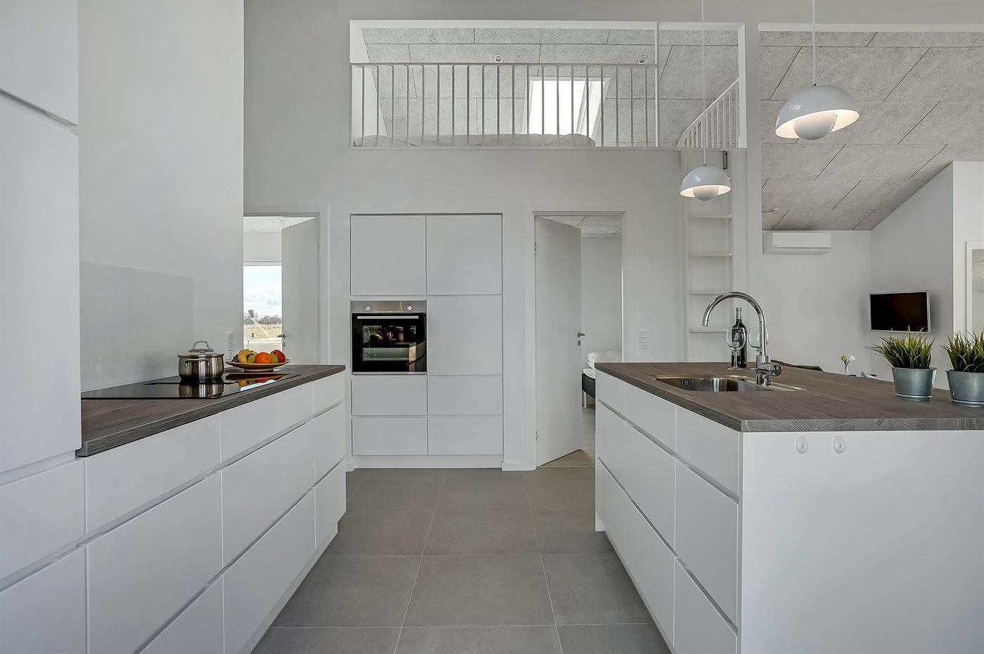 Køkkenet er udstyret med 1 køleskab. Der er 4 induktionskogeplader, varmluftovn, mikrobølgeovn samt opvaskemaskine.