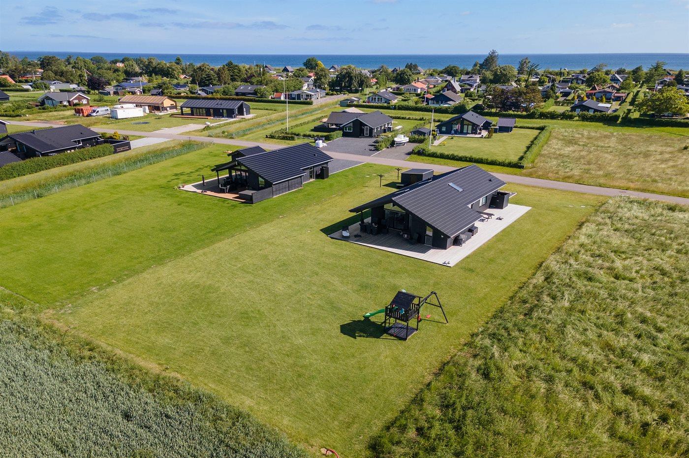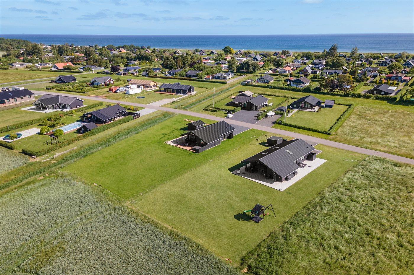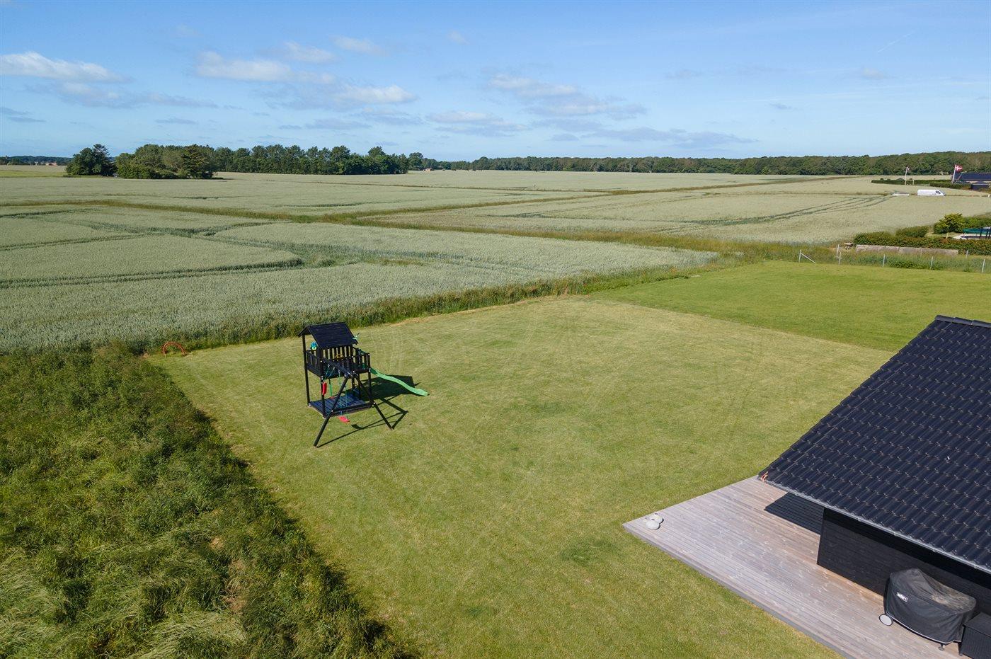 Ferieboligen er beliggende på en 1216 m² stor havegrund. Der er 400 m til havet. Nærmeste forretning er beliggende i en afstand af 2500 m. Til ferieboligen hører 160 m² terrasseareal. Desuden er der 35 m² overdækket terrasse. Gynge. Sandkasse. Udendørs bruser. Grill til rådighed. Parkering ved ferieboligen.