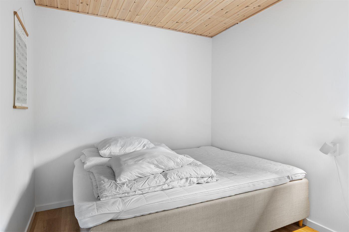 Der er i alt 2 soveværelser. Sovepladserne fordeler sig på: 2 sovepladser i dobbeltseng. 2 sovepladser i enkeltsenge. 2 sovepladser i sovesofa (dobbelt). 2 af disse sovepladser befinder sig i stuen. Derudover er der 1 stk. barneseng.