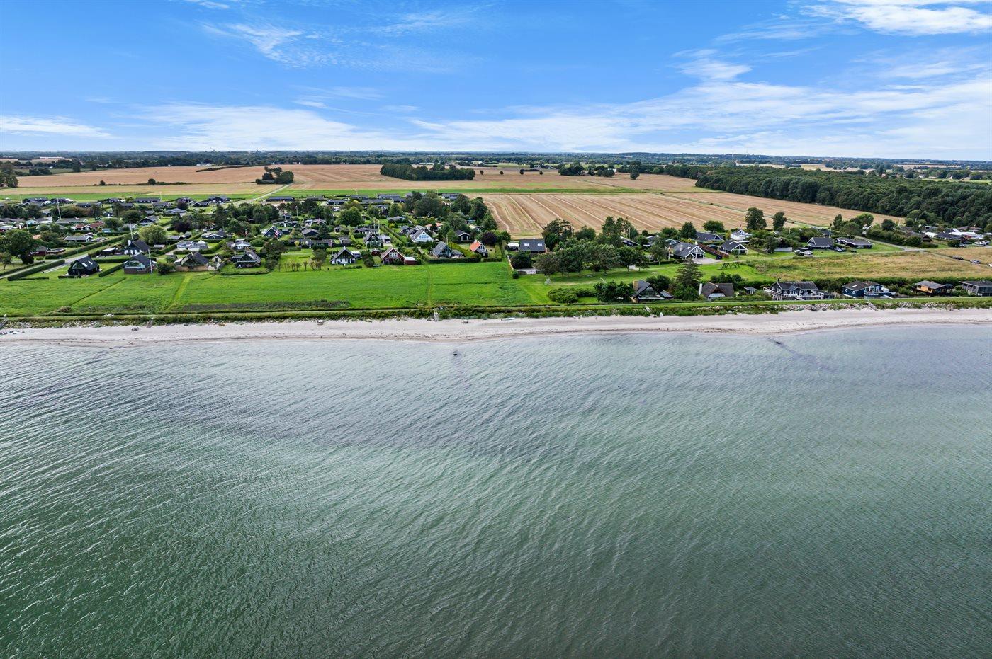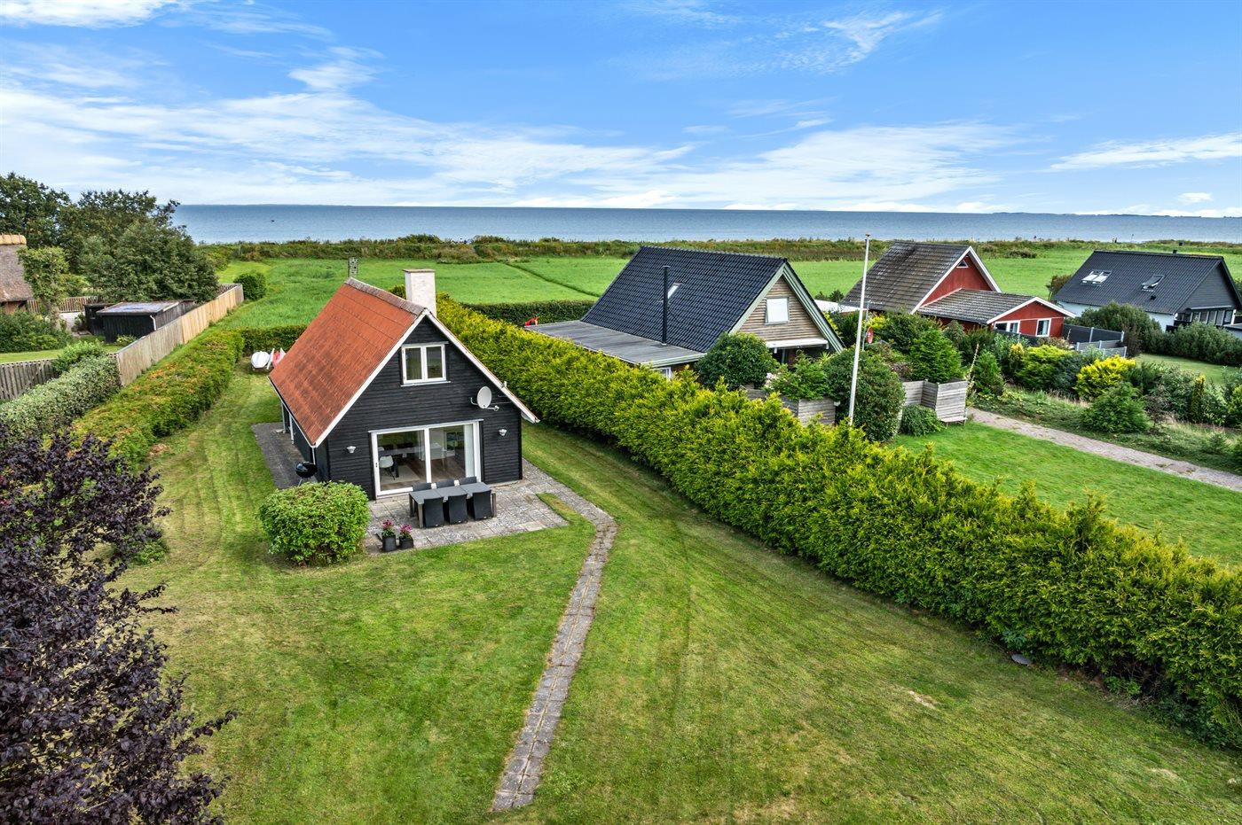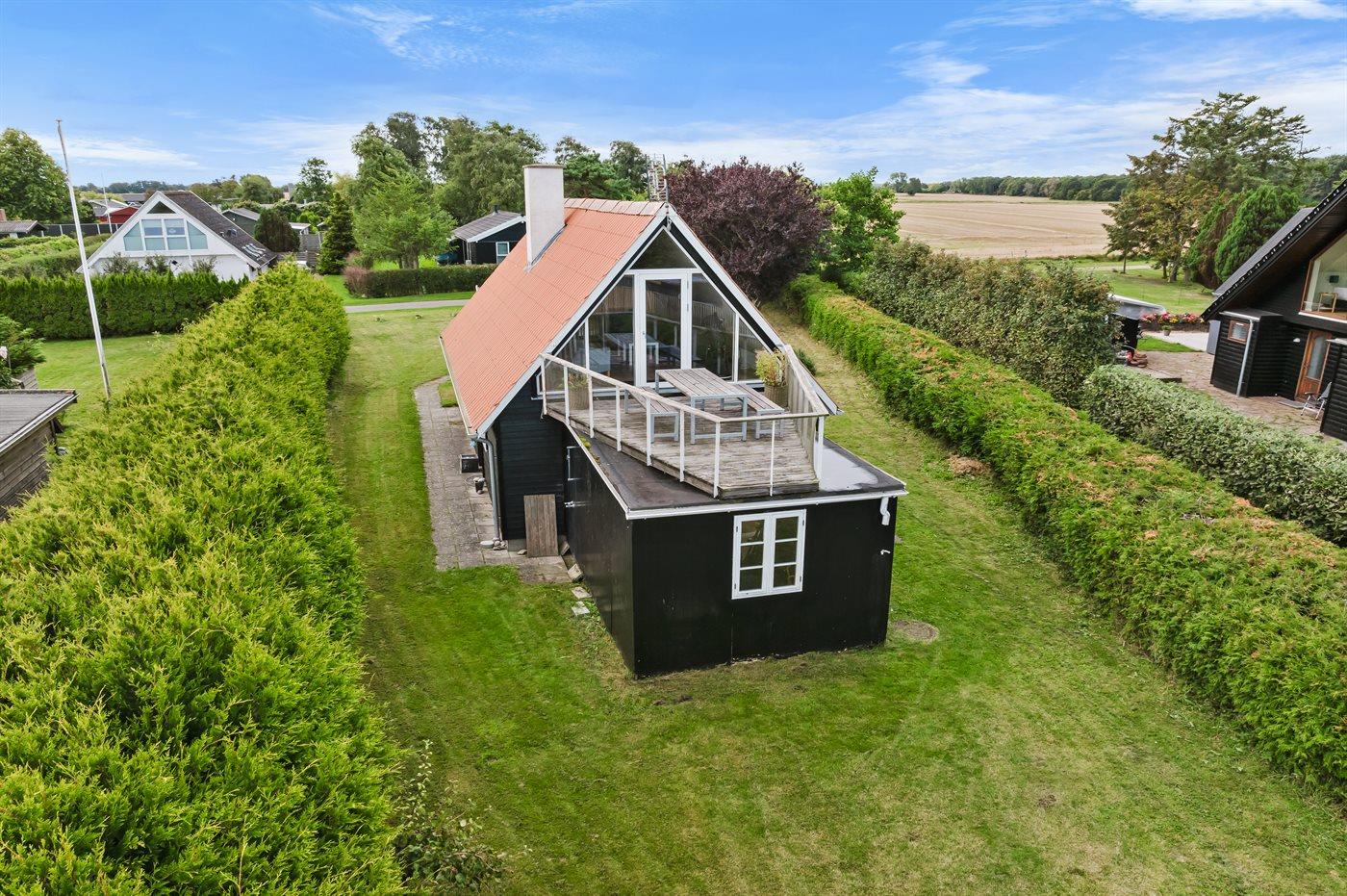 Et dejligt sommerhus i 1. række med et grønt område imellem huset og vandet. Huset er bygget i 2 plan, og fra stuen og tagterrassen på 1.sal er der en skøn udsigt ud over vandet. Fra tagterrassen kan man også nyde solnedgangen.