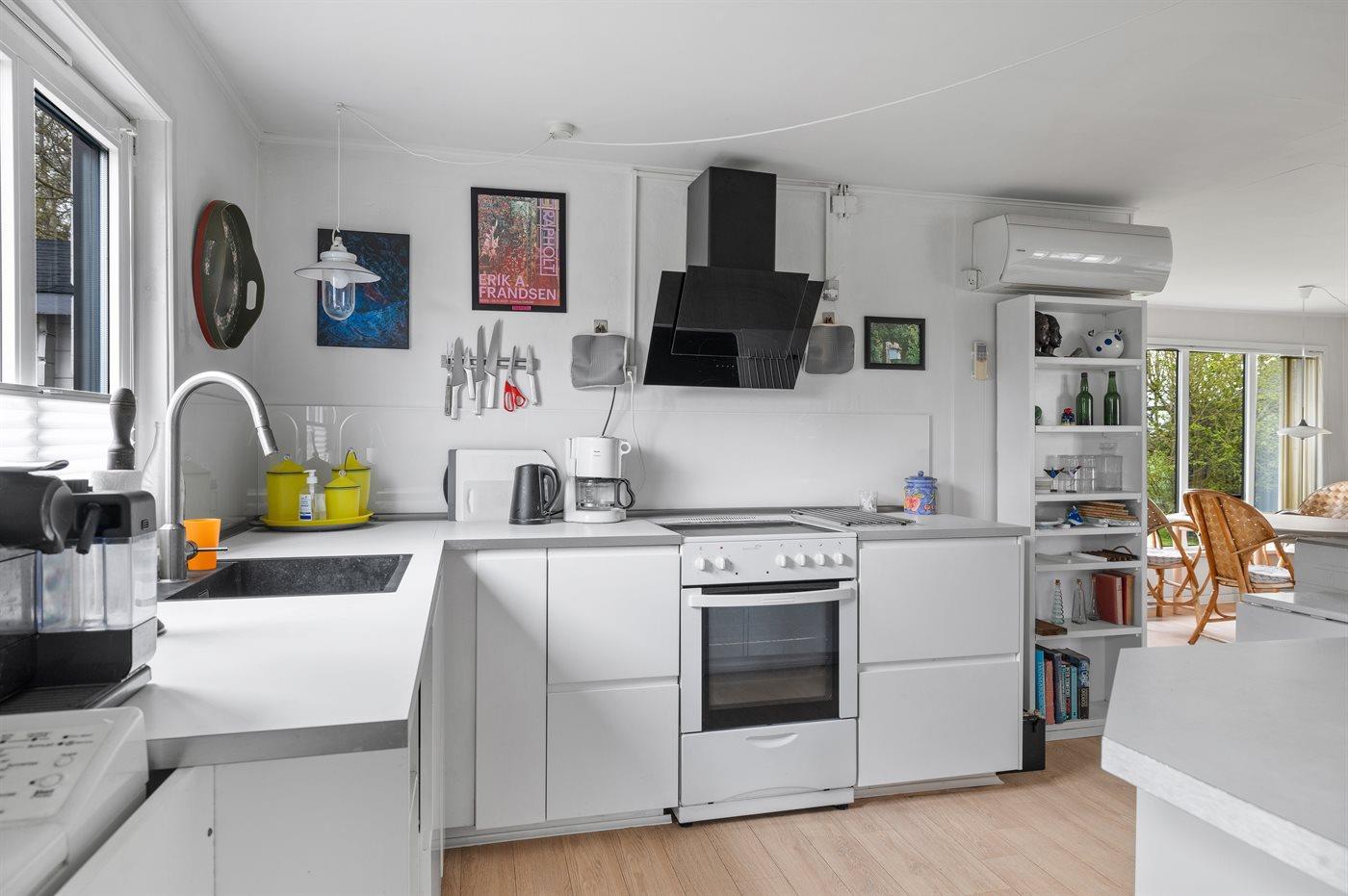 Køkkenet er udstyret med 1 køleskab. Der er 4 keramiske kogeplader, varmluftovn, mikrobølgeovn samt opvaskemaskine.