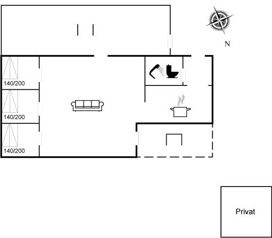 Der er i alt 3 soveværelser. Sovepladserne fordeler sig på: 6 sovepladser i dobbeltsenge. Derudover er der 1 stk. barneseng.