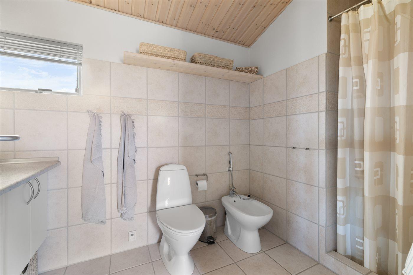 Der er 2 badeværelser med bruseniche og 2 toiletter. Der er gulvvarme på 2 badeværelser.
