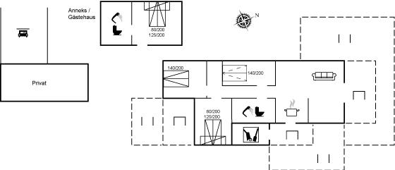 Der er i huset flere sovemuligheder, da der i alt er 10 sovepladser, men huset må kun bookes til max. 8 personer.
