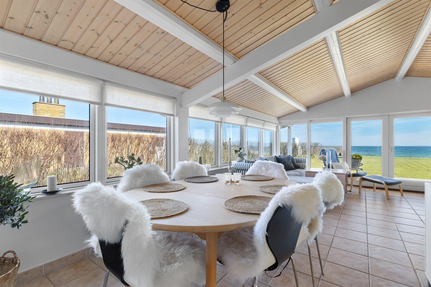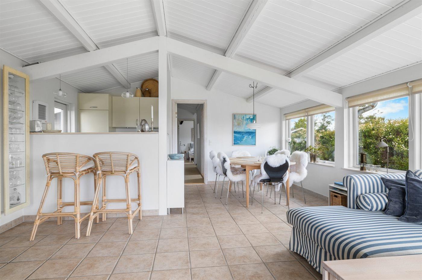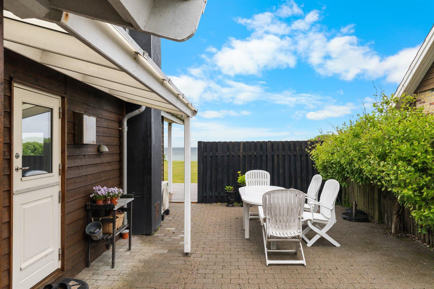 Huset er moderne og hyggeligt indrettet, og der er omkring huset flere terrasser og opholdssteder. Bl.a. et skønt terrasseområde helt nede ved strandkanten.