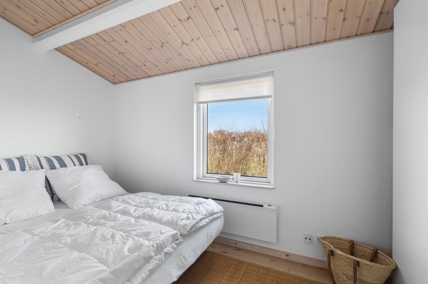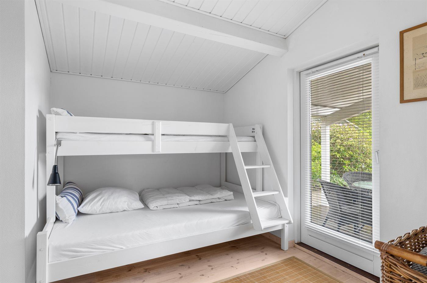 Det ene værelse i huset er også indrettet med samme type køjeseng, som er velegnet både for et par i den nederste seng og populær blandt børn, som gerne vil sove i køjeseng.