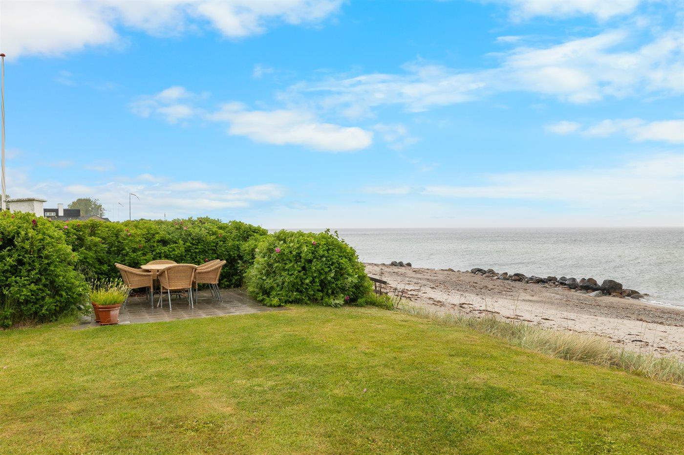Moderne sommerhus med havudsigt og direkte adgang til stranden ved Kristiansminde på Nordfyn.