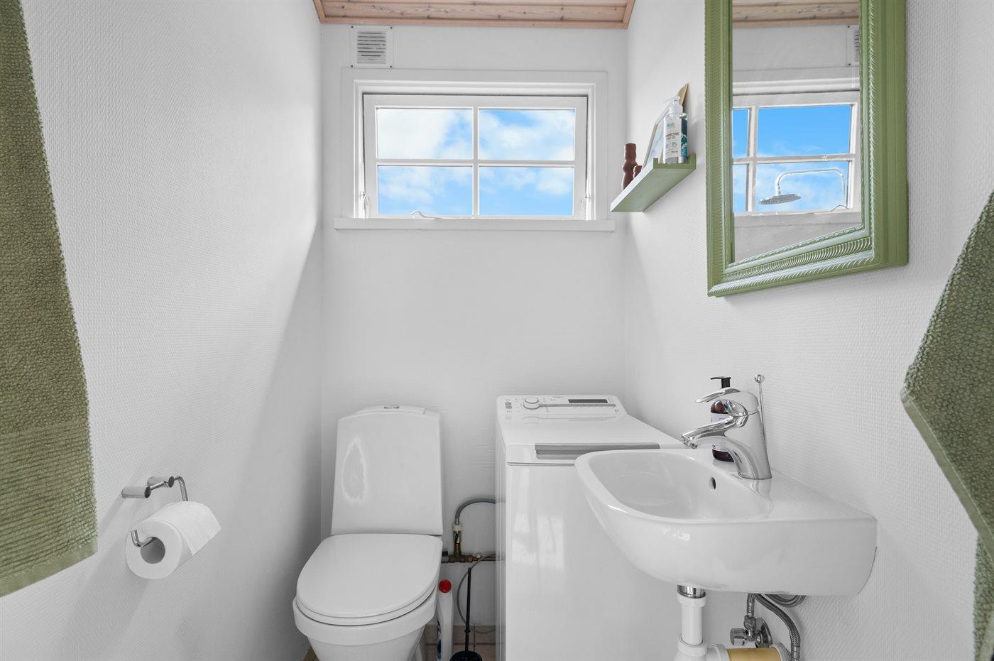 Der er 1 badeværelse med bruseniche og 3 toiletter, heraf 1 gæstetoilet. Der er gulvvarme på 1 badeværelse.