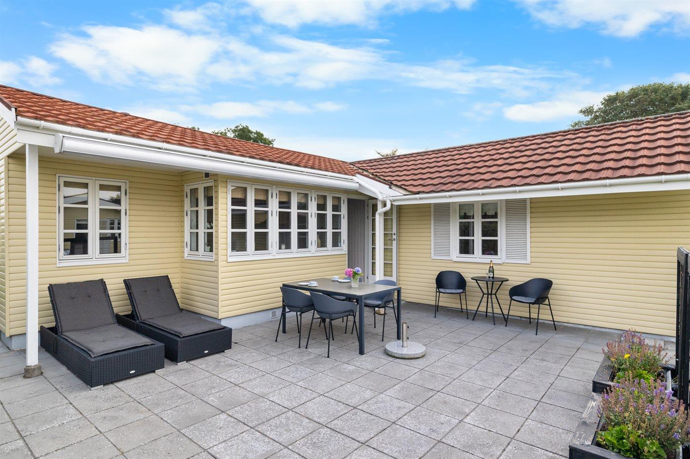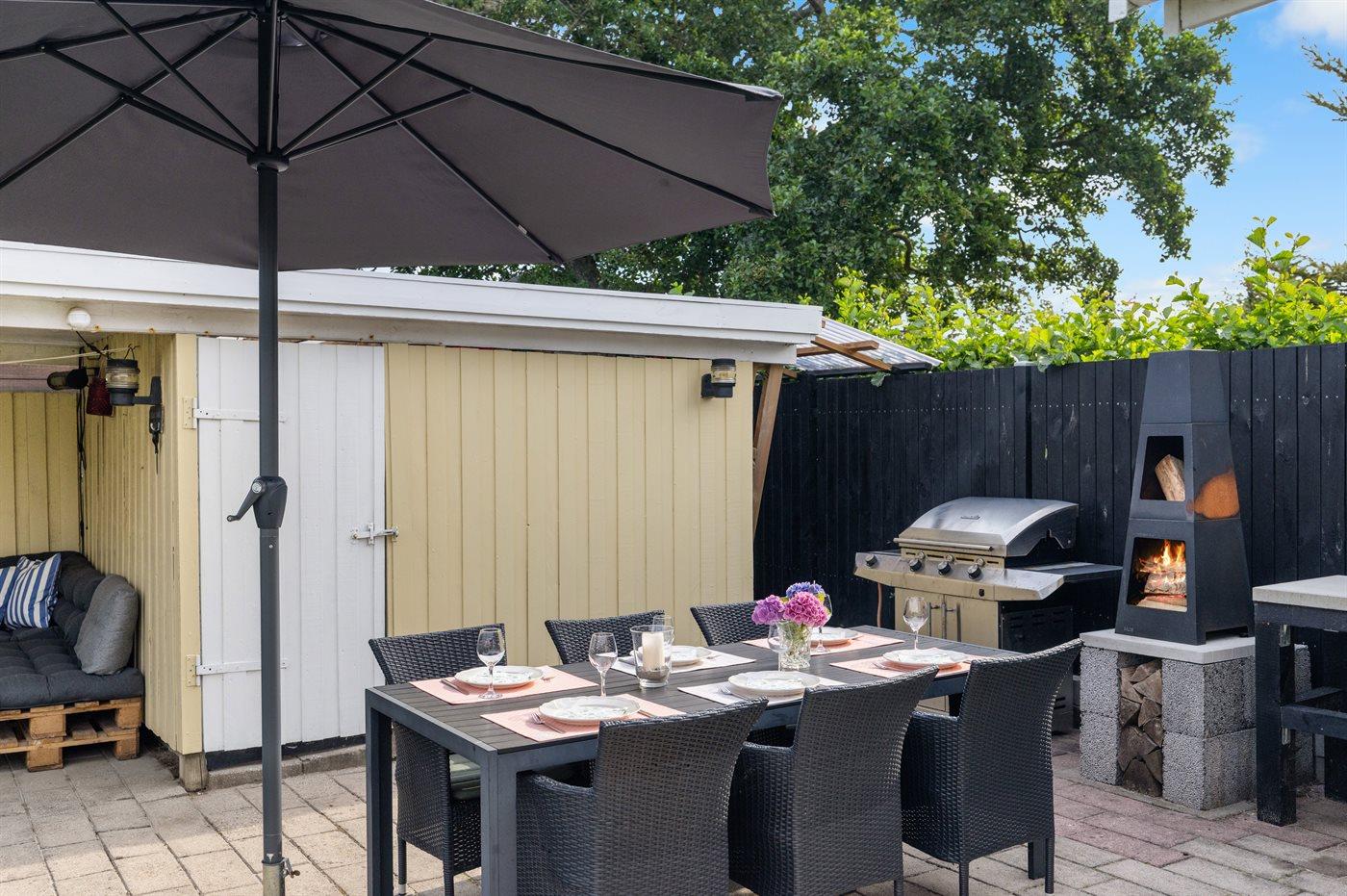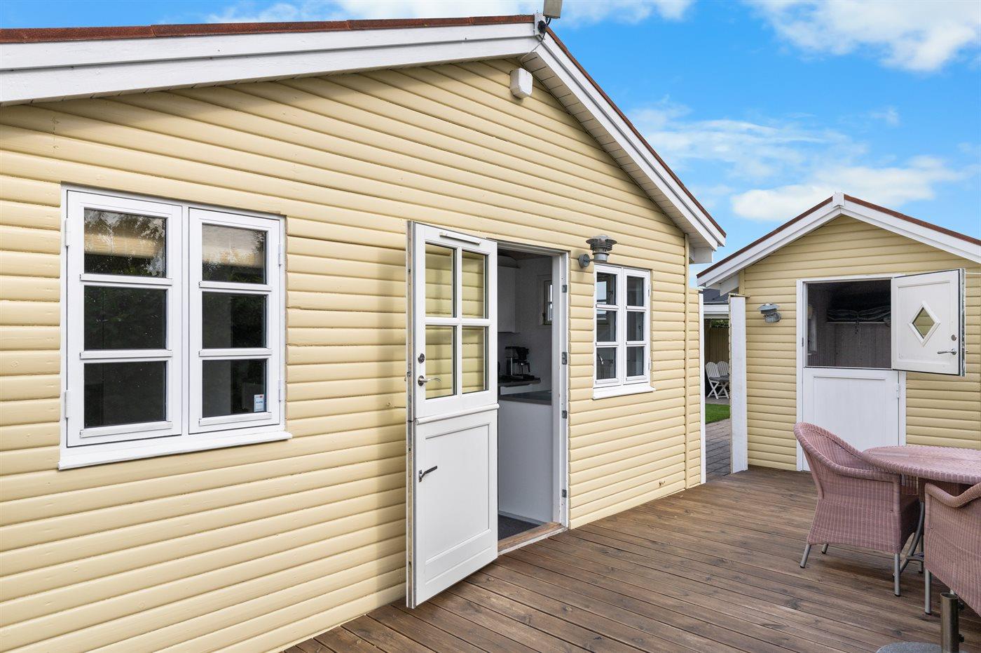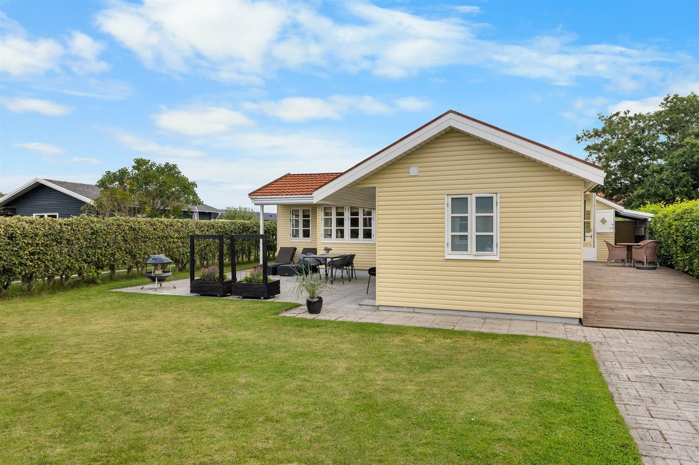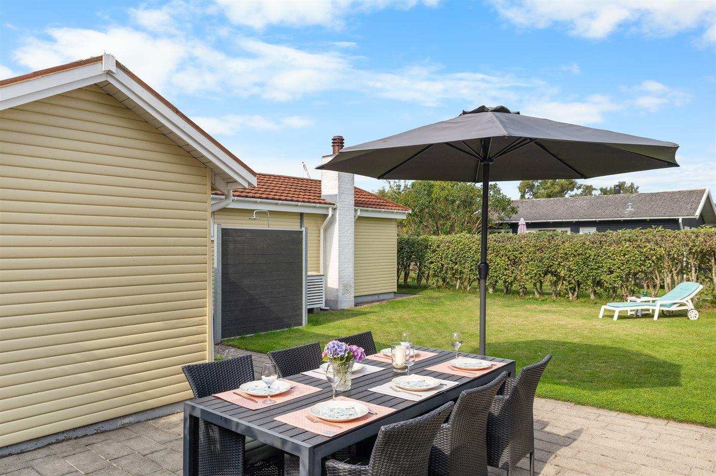Ferieboligen er beliggende på en 578 m² stor havegrund. Der er 60 m til havet. Nærmeste forretning er beliggende i en afstand af 2200 m. Til ferieboligen hører åbent terrasseareal. Desuden er der overdækket terrasse. Bålsted. Udendørs bruser. Grill til rådighed. Parkering ved ferieboligen.