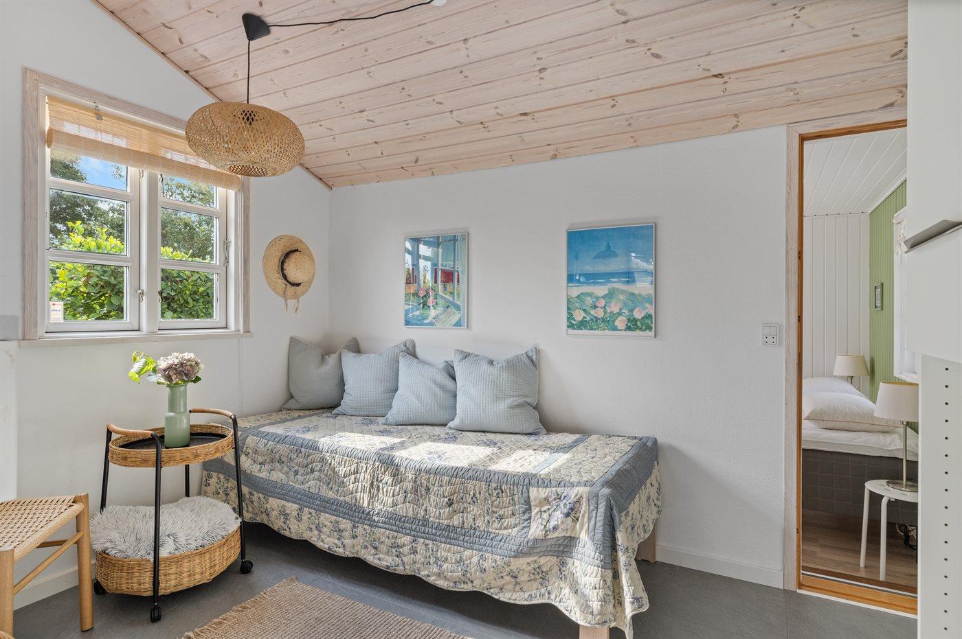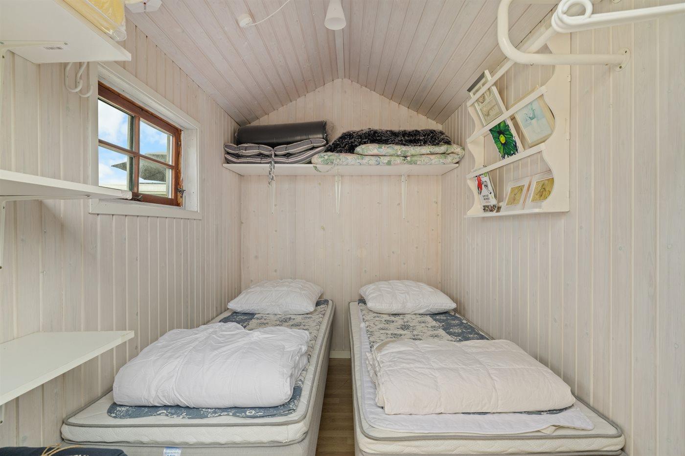 Der er i alt 2 soveværelser. Sovepladserne fordeler sig på: 4 sovepladser i dobbeltsenge. 1 soveplads i enkeltseng. 2 af disse sovepladser befinder sig i anneks, og 1 soveplads findes i sommerhusets stue. Derudover er der 1 stk. barneseng.