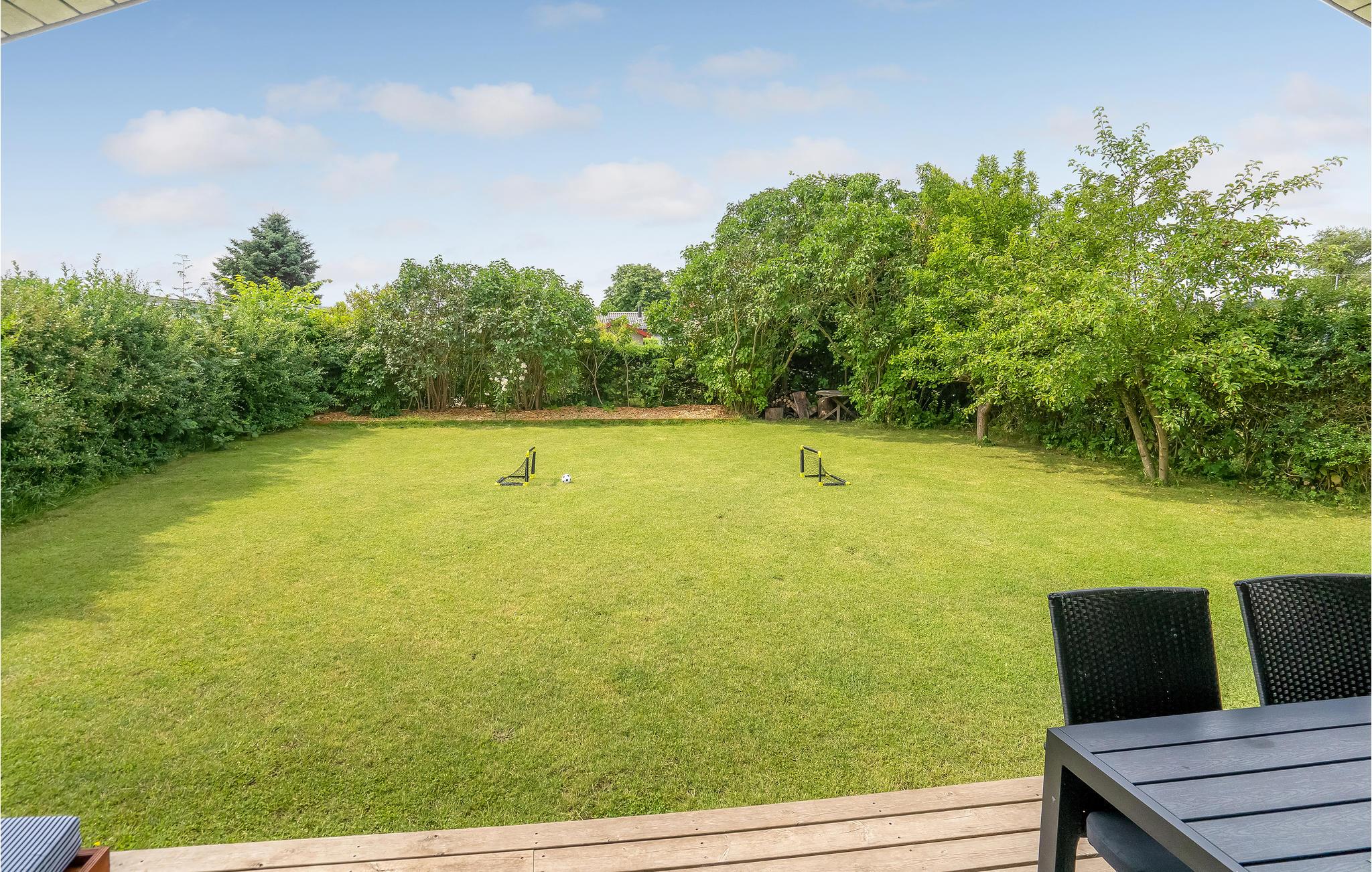 Tilbring dejlige øjeblikke på den overdækkede terrasse, mens du spiser eller med en kølig drink i solen, og lad hverdagen være bag dig. Der er plads nok til, at børnene kan lege i den private have.