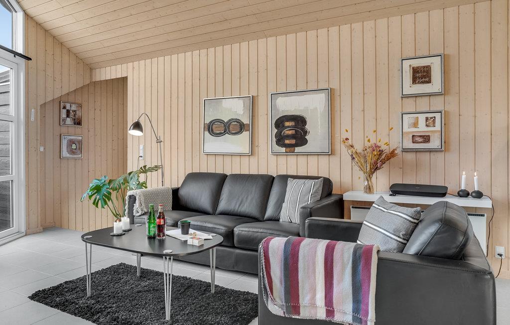 Dette skønne hus, der ligger helt tæt på den populære Hasmark Strand, byder velkommen med en høj levestandard. Det byder på klassiske skandinaviske møbler, der ikke lader noget tilbage at ønske. Herfra kan du allerede nu nyde et første glimt af havets blå.