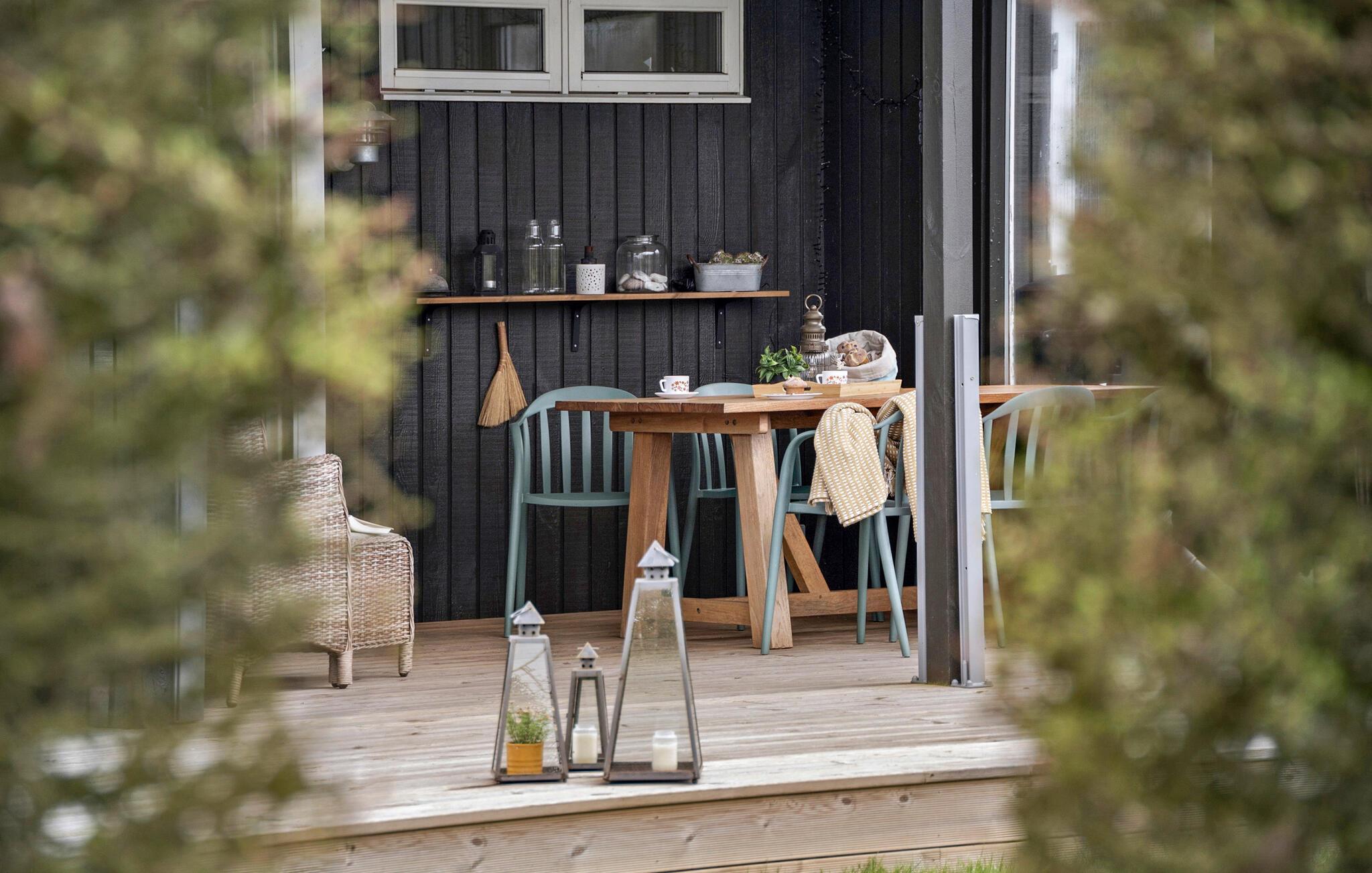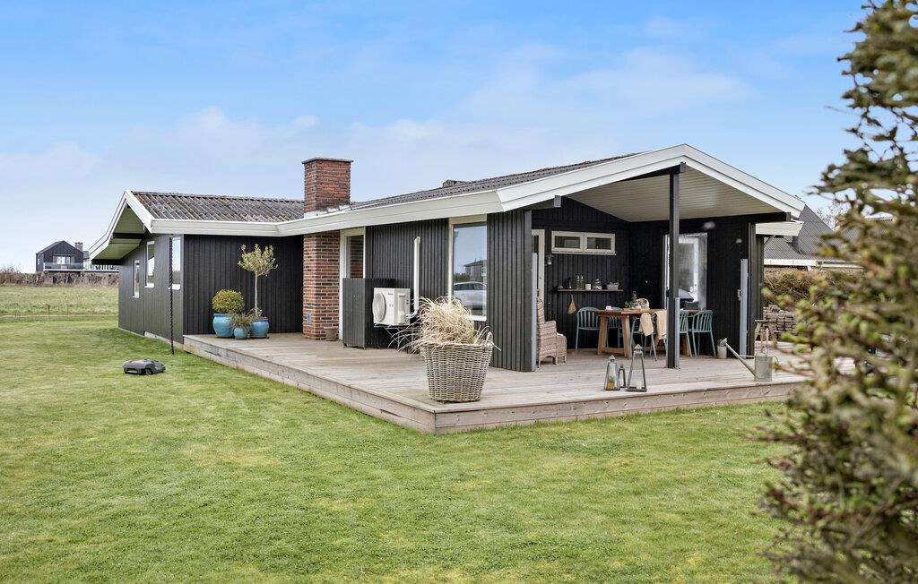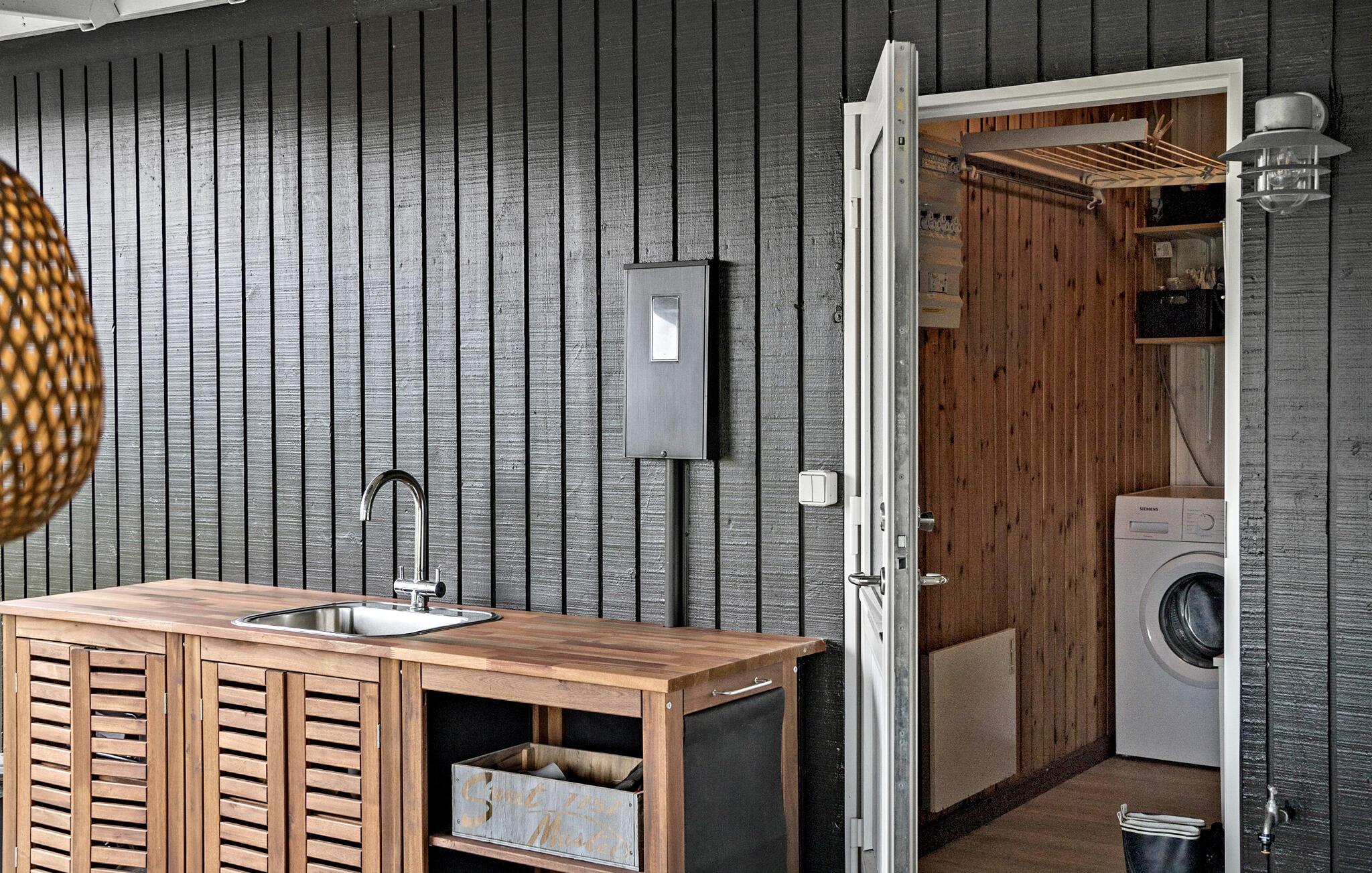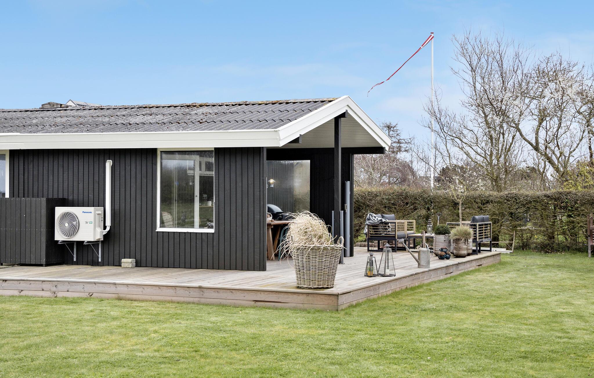 Udeområdet er virkelig dejligt og indbyder til mange stunder i det fri. Uanset vejret kan I nyde måltiderne på den vejrbeskyttede terrasse, hvor I tilmed får adgang til et fint udekøkken. På de solrige dage kan I nyde det gode vejr på den åbne terrasse, mens børnene løber rundt og leger i haven. Bliver varmen for meget, kan I tage en frisk skyller under udebruseren, og hen under aftenen kan I tænde op i grillen og runde en smuk sommerdag af med gode bøffer under den lune aftensol.