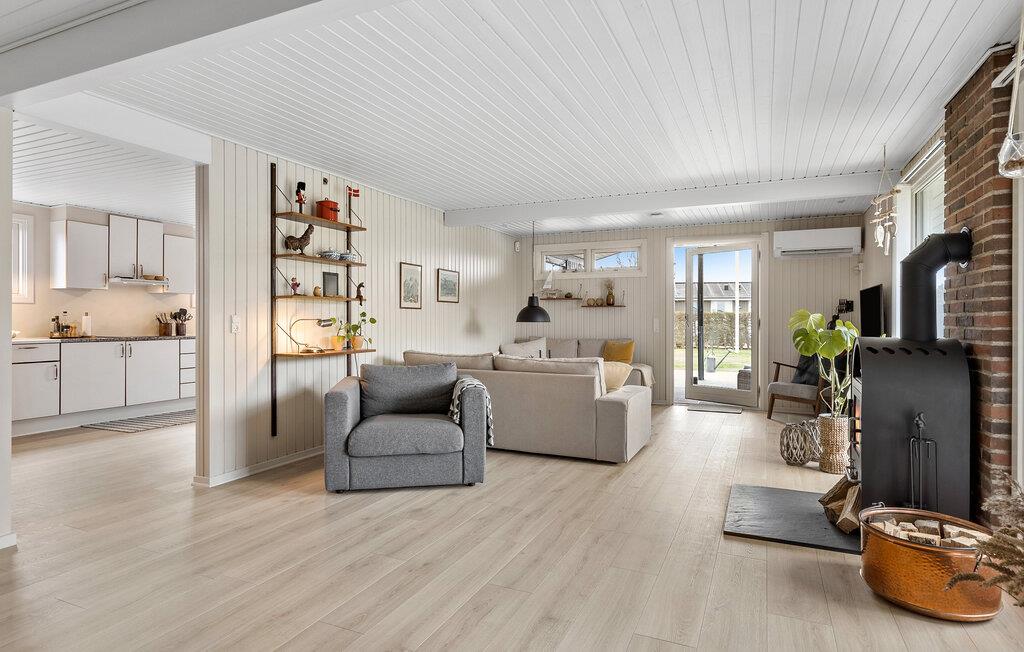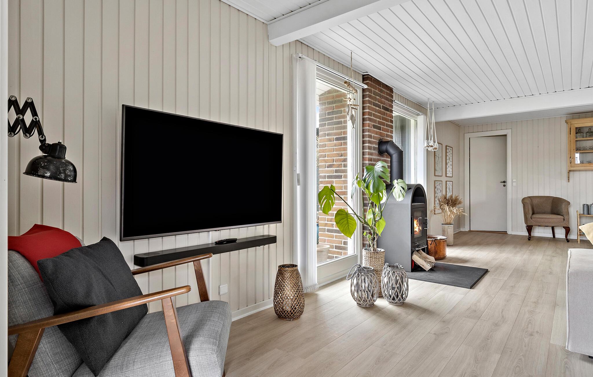 Tag familien under armen og rejs til Nordfyn, hvor I ved Tørresø Strand får base i dette flotte træhus. Huset er virkelig pænt indrettet med en åben stue, delvist fritlagte murværk og en brændeovn, der giver stemning og varme på de lidt køligere dage. Køkkenet er stort og veludstyret, så I kan gøre madlavningen til et hyggeligt fællesprojekt. Efter aftensmaden kan I trække over i sofaerne med brætspil eller en god film med ildens knitrende lydtapet i baggrunden.