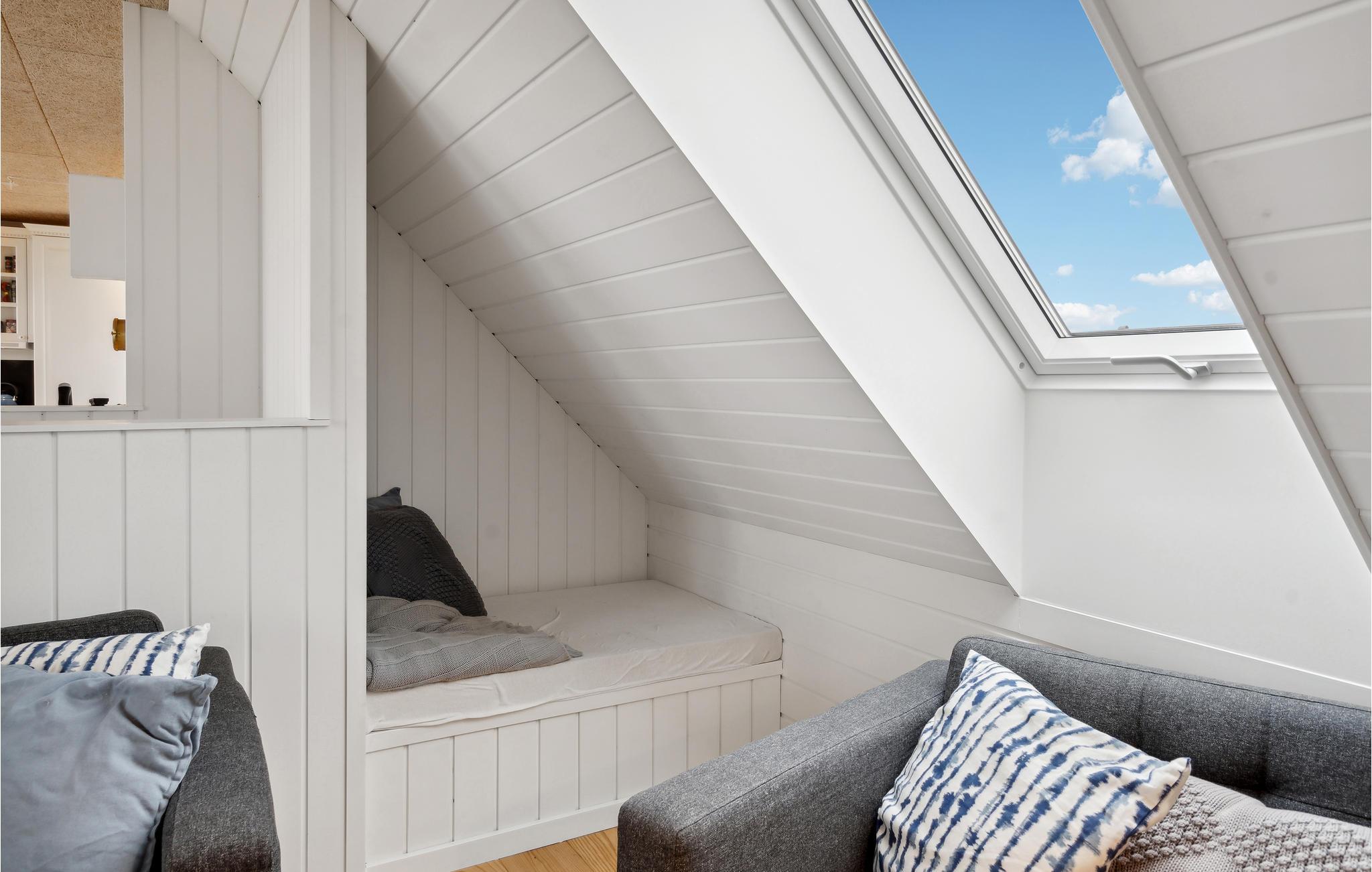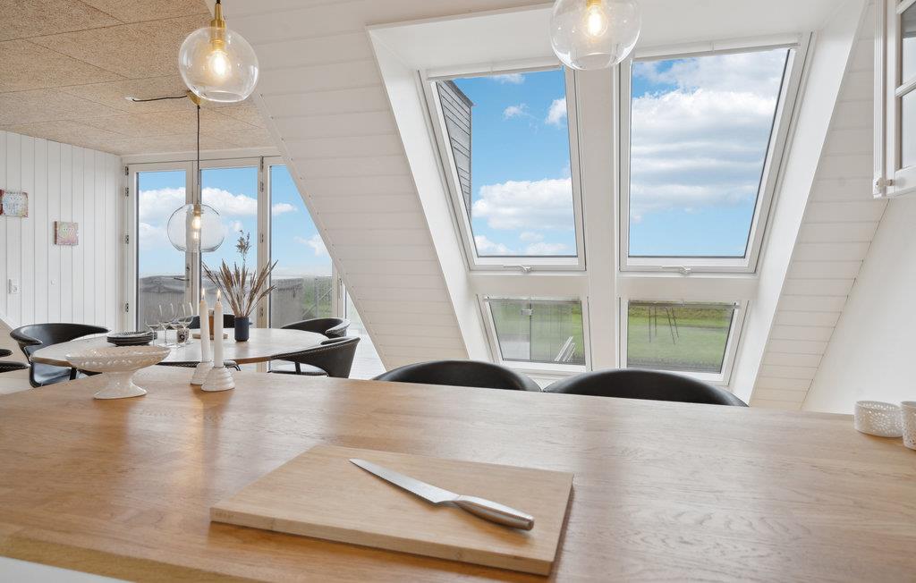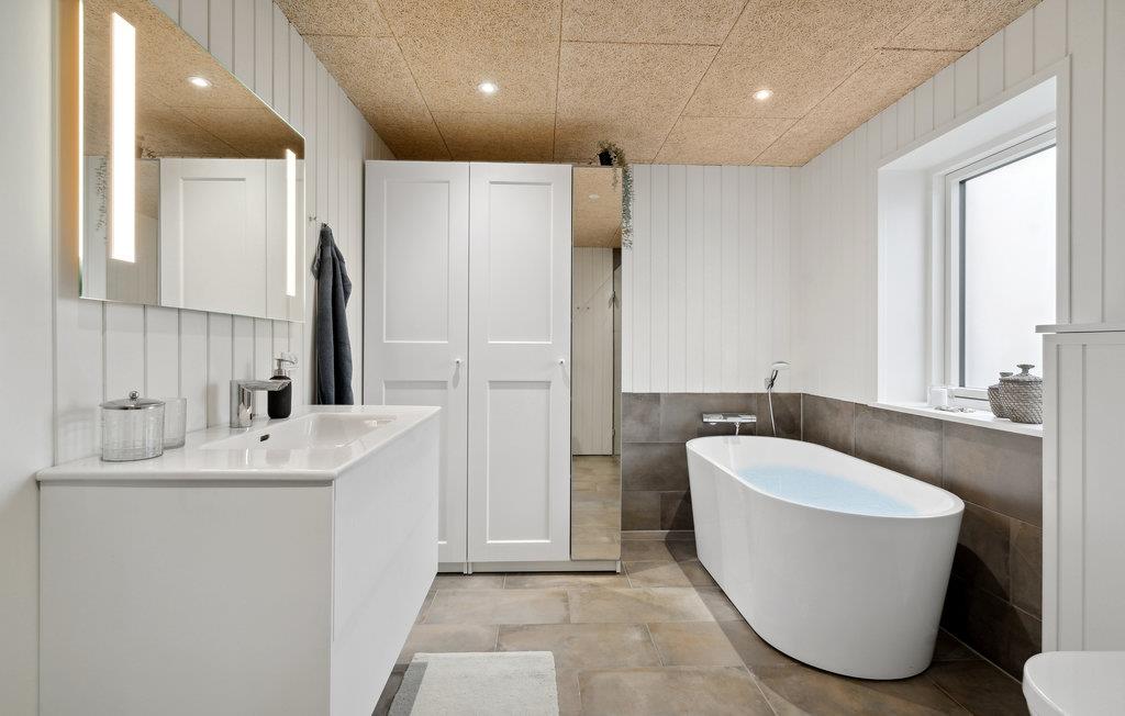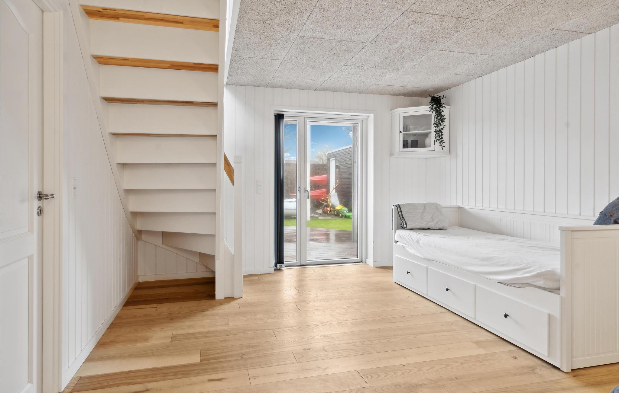 Vil I bo lige ved stranden? Ønsker I også at opleve fordelene ved et to-etagers feriehus med høj komfort og flot design? Så behøver I ikke at lede længere, for dette feriehus med en vidunderlig beliggenhed vil opfylde jeres ønsker og mere til! I dette hus på den dejlige strandgrund finder I soveværelserne i stueetagen, mens en lys opholdsstue med store panoramavinduer byder jer velkommen på første sal. Alle moderne faciliteter er til rådighed i huset. Tilbring uforglemmelige timer med at lave mad, spille spil og slappe af i sofaerne. Om morgenen kan I gå ud på terrassen med jeres kaffe, hvor et udendørs boblebad venter på jer. Stueetagens store terrasse fører ud i den private have, hvor I kan lege med jeres børn. Har I snarere lyst til at hygge jer i sandet ved det salte hav, leder havelågen jer direkte til stranden.