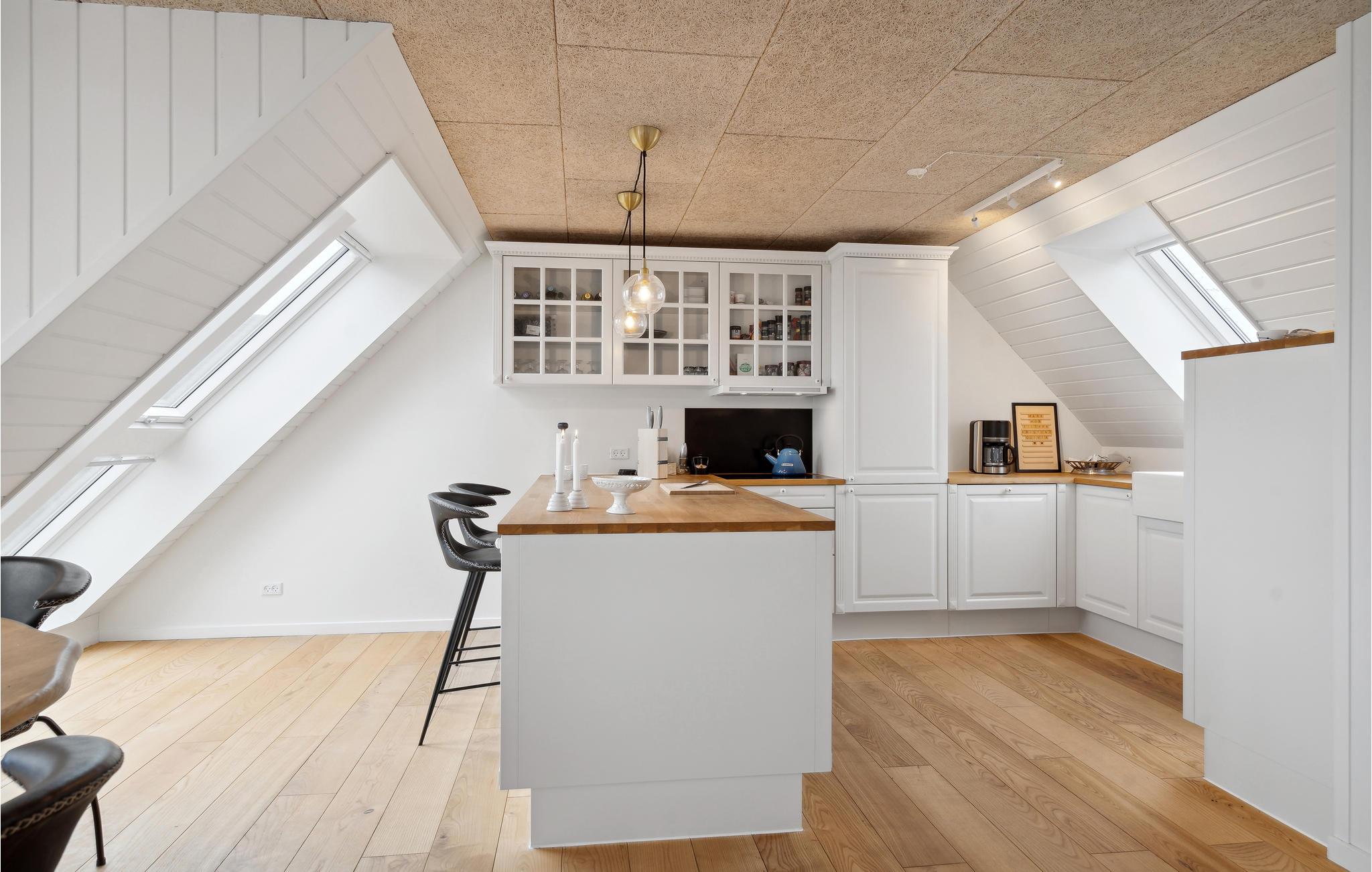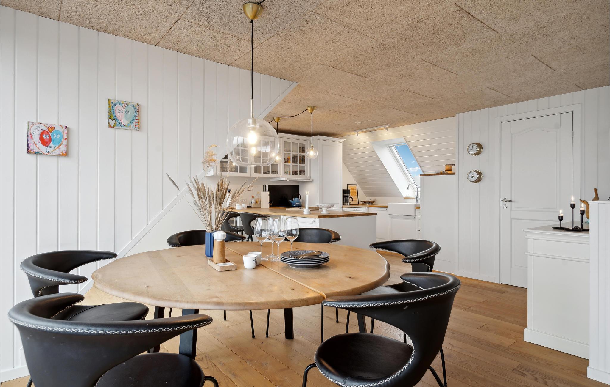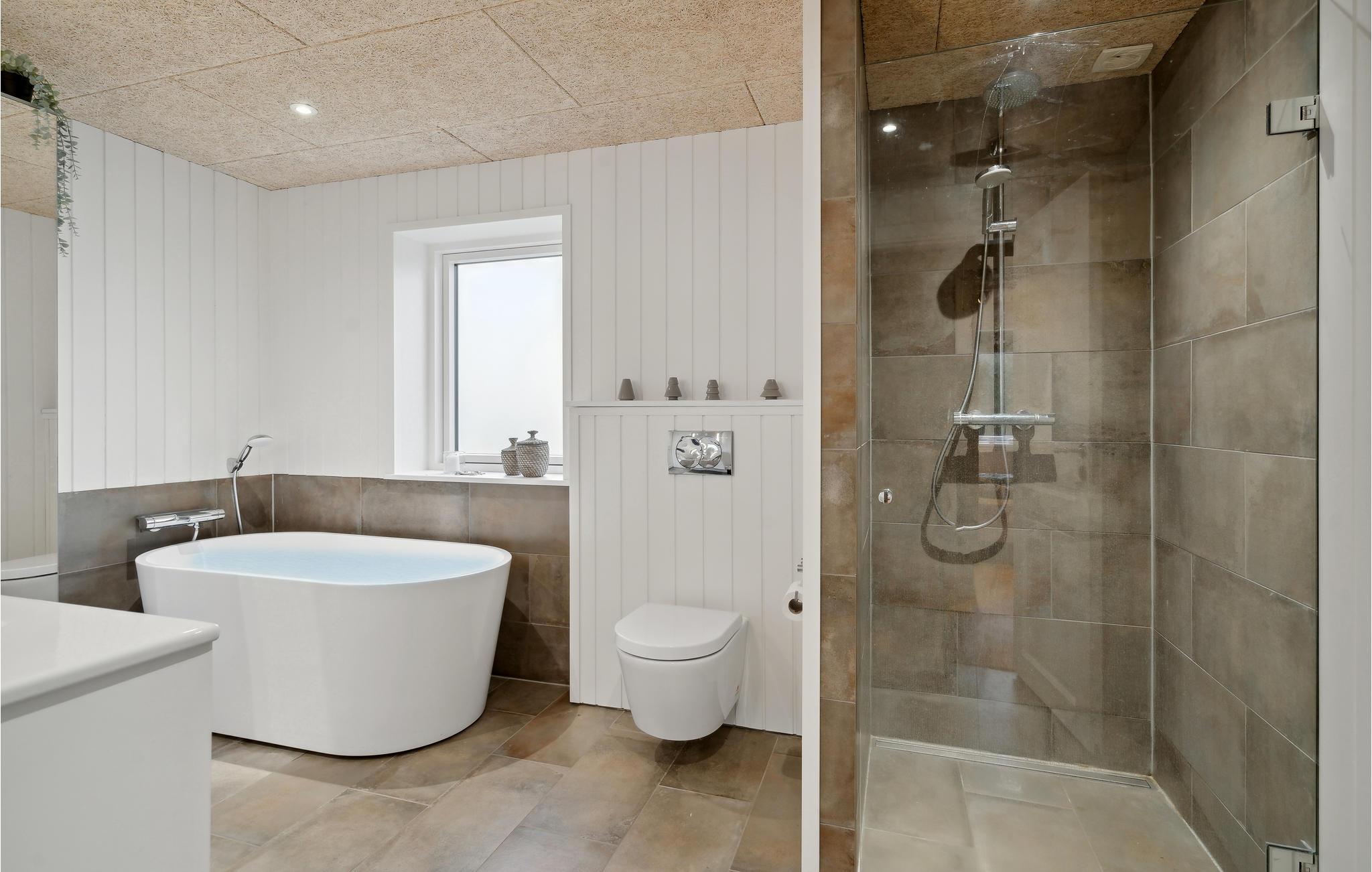 Vil I bo lige ved stranden? Ønsker I også at opleve fordelene ved et to-etagers feriehus med høj komfort og flot design? Så behøver I ikke at lede længere, for dette feriehus med en vidunderlig beliggenhed vil opfylde jeres ønsker og mere til! I dette hus på den dejlige strandgrund finder I soveværelserne i stueetagen, mens en lys opholdsstue med store panoramavinduer byder jer velkommen på første sal. Alle moderne faciliteter er til rådighed i huset. Tilbring uforglemmelige timer med at lave mad, spille spil og slappe af i sofaerne. Om morgenen kan I gå ud på terrassen med jeres kaffe, hvor et udendørs boblebad venter på jer. Stueetagens store terrasse fører ud i den private have, hvor I kan lege med jeres børn. Har I snarere lyst til at hygge jer i sandet ved det salte hav, leder havelågen jer direkte til stranden.
