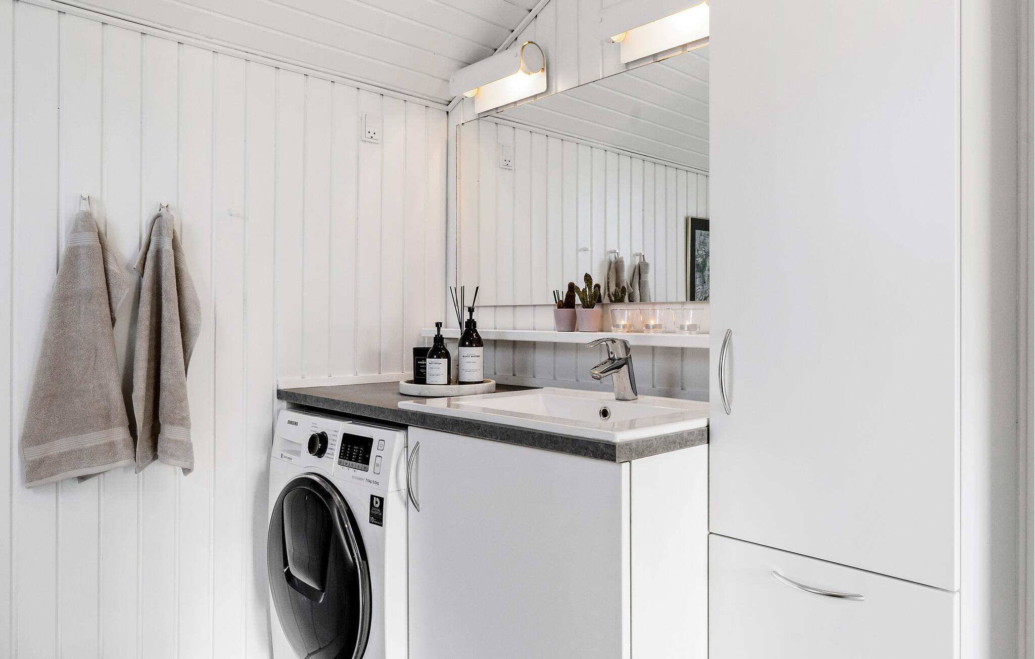 Velkommen til dette feriehus, som masser af plads til hele familien. Opholdsstuen er lys og indbydende med store vinduer ud til de helt utrolig smukke omgivelser. Slå jer ned og nyd varmen fra brændeovnen på en kølig dag eller dæk op til en skøn middag ved det store spisebord med havudsigt. Køkkenet er ligeledes dejlig lyst og åbent, så her kan I hygge jer med at kreere feriens små og store måltider.