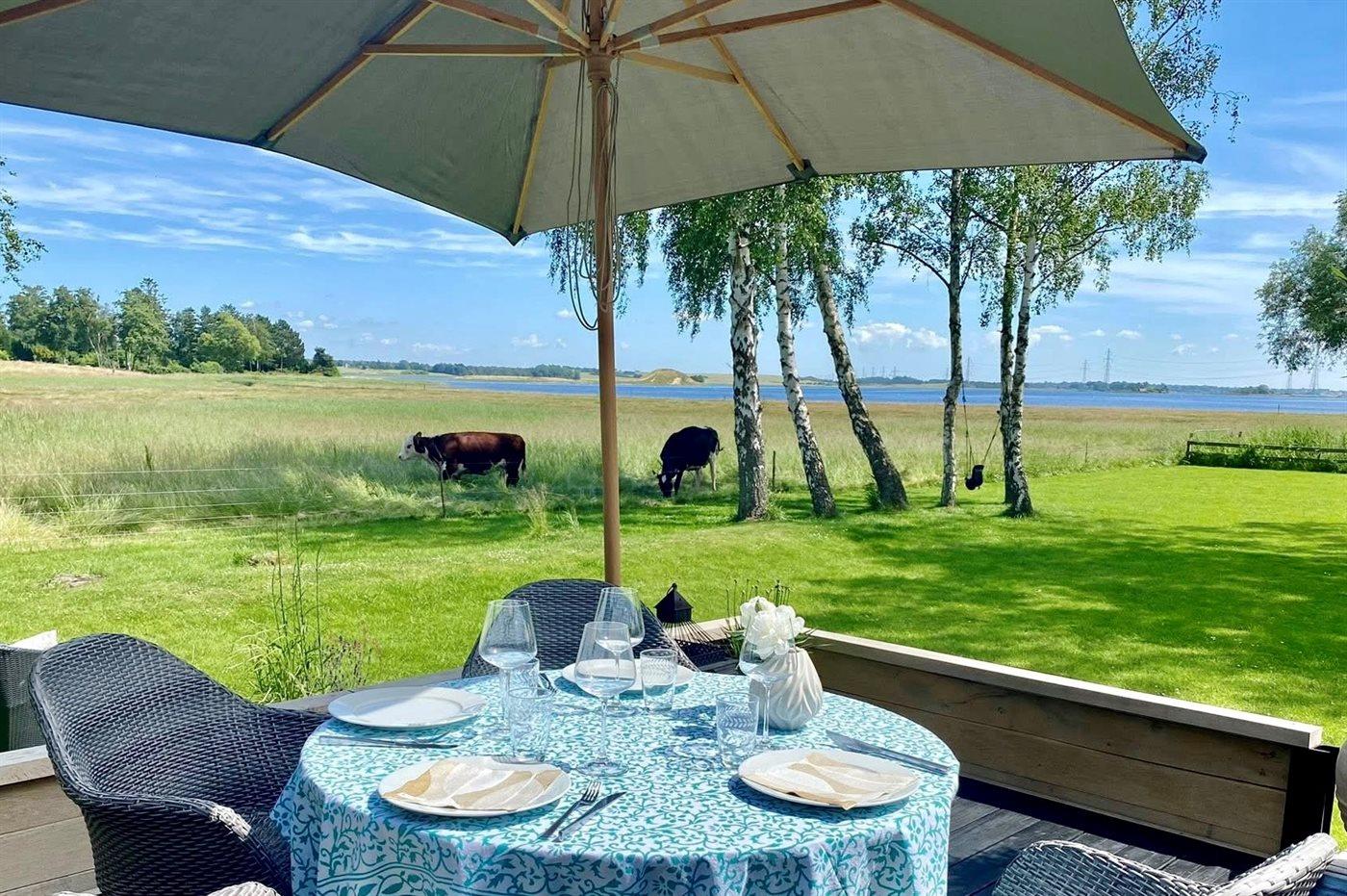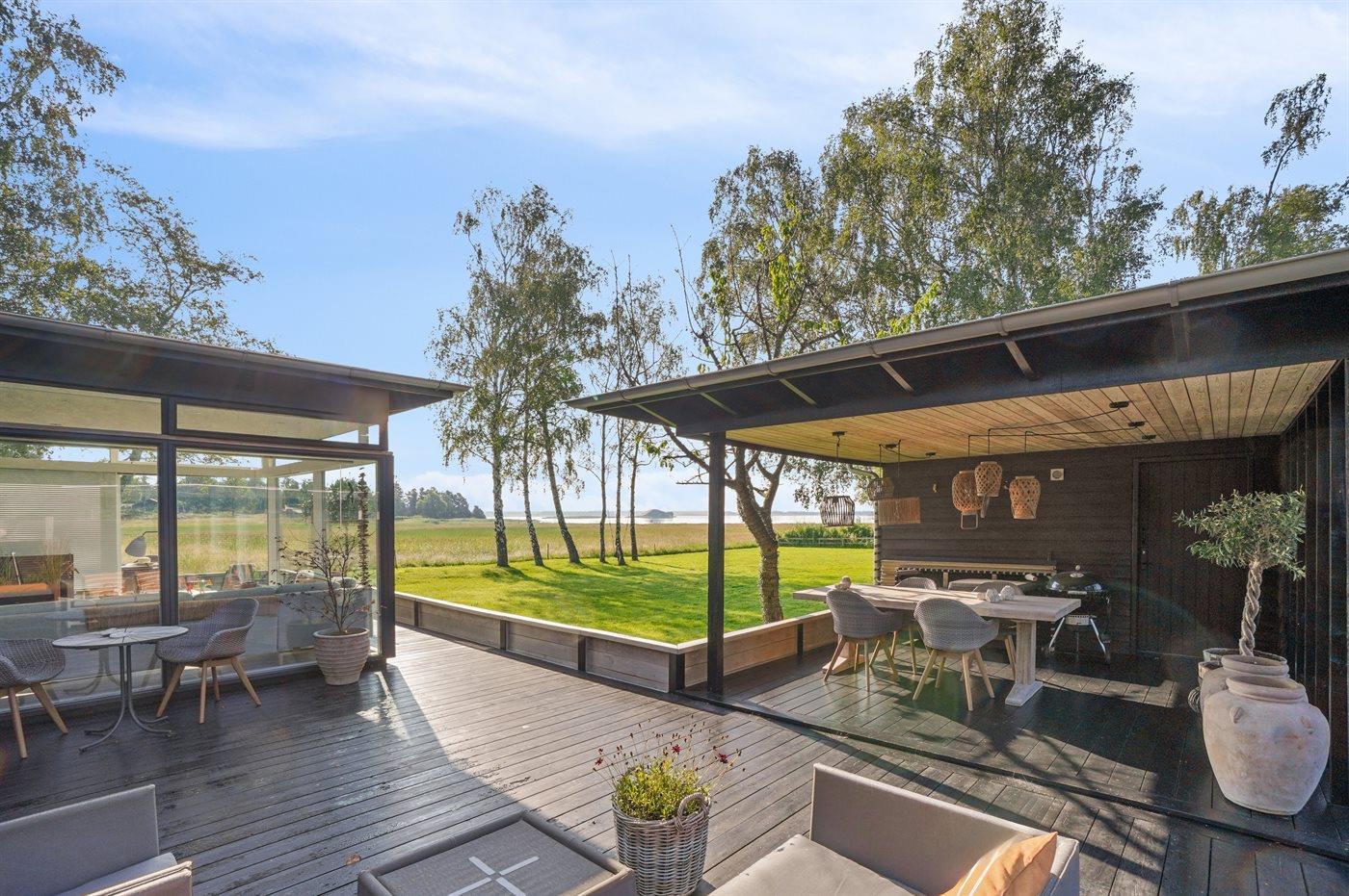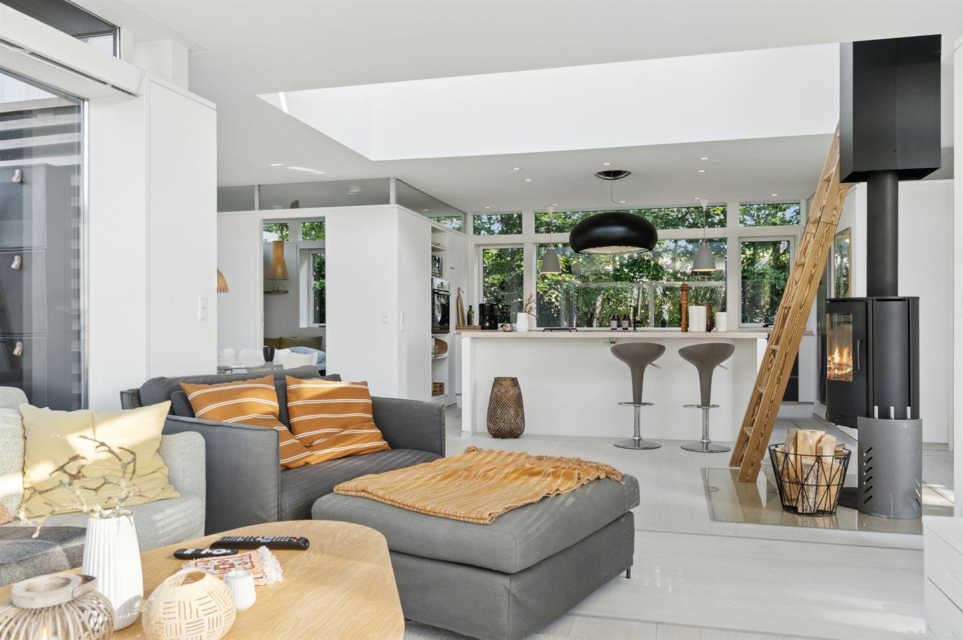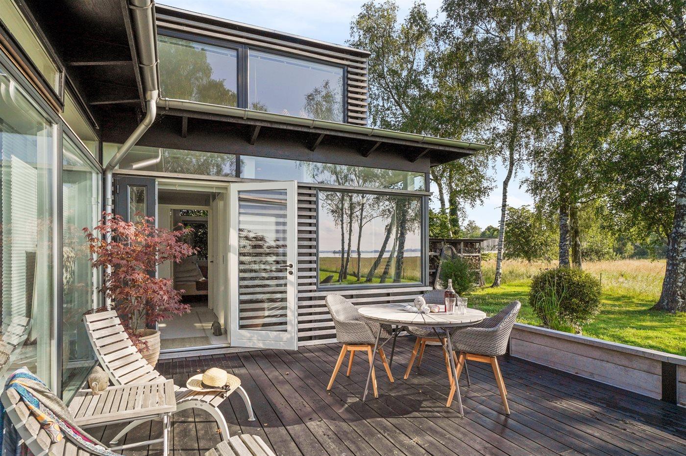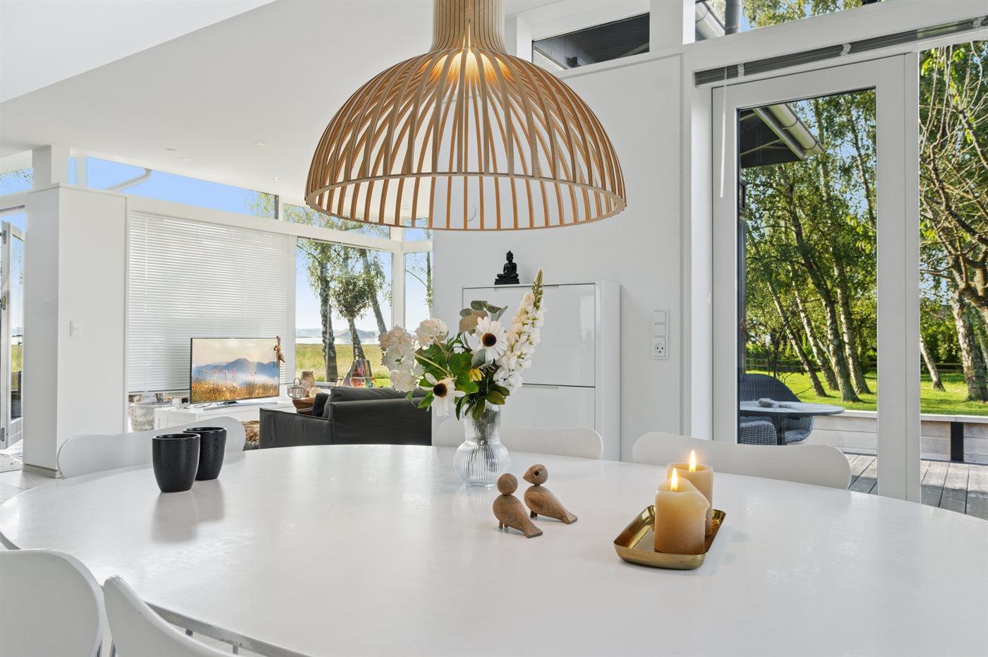 I naturskønne Tørslev Hage, direkte ved Roskilde Fjord, ligger dette eksklusive, arkitekttegnede sommerhus. Huset er opført i naturlige materialer med store vinduespartier, der inviterer lys og udsigt helt ind i boligen. Indretningen er stilren og nordisk med højt til loftet og en rolig, gennemtænkt atmosfære.