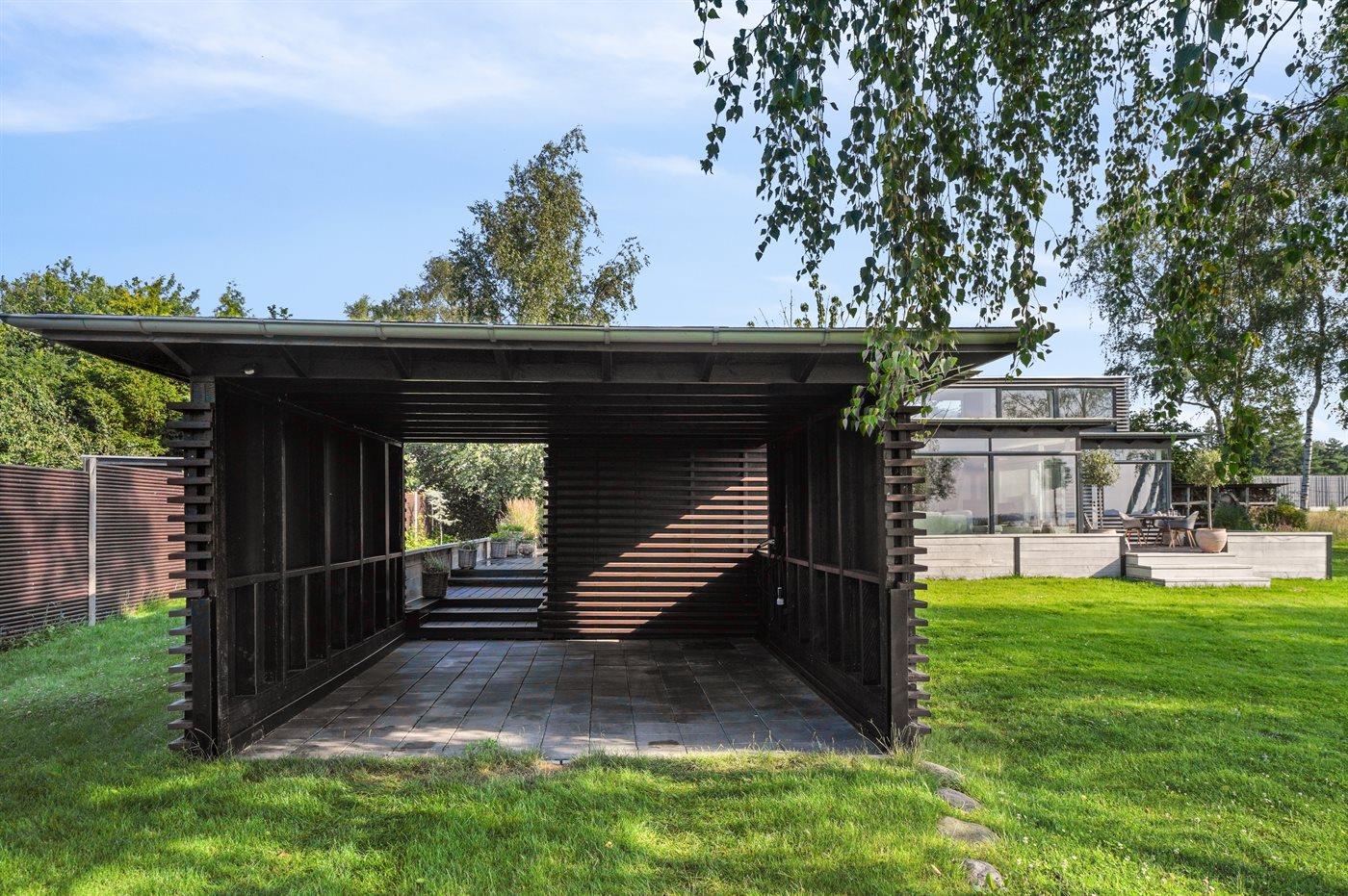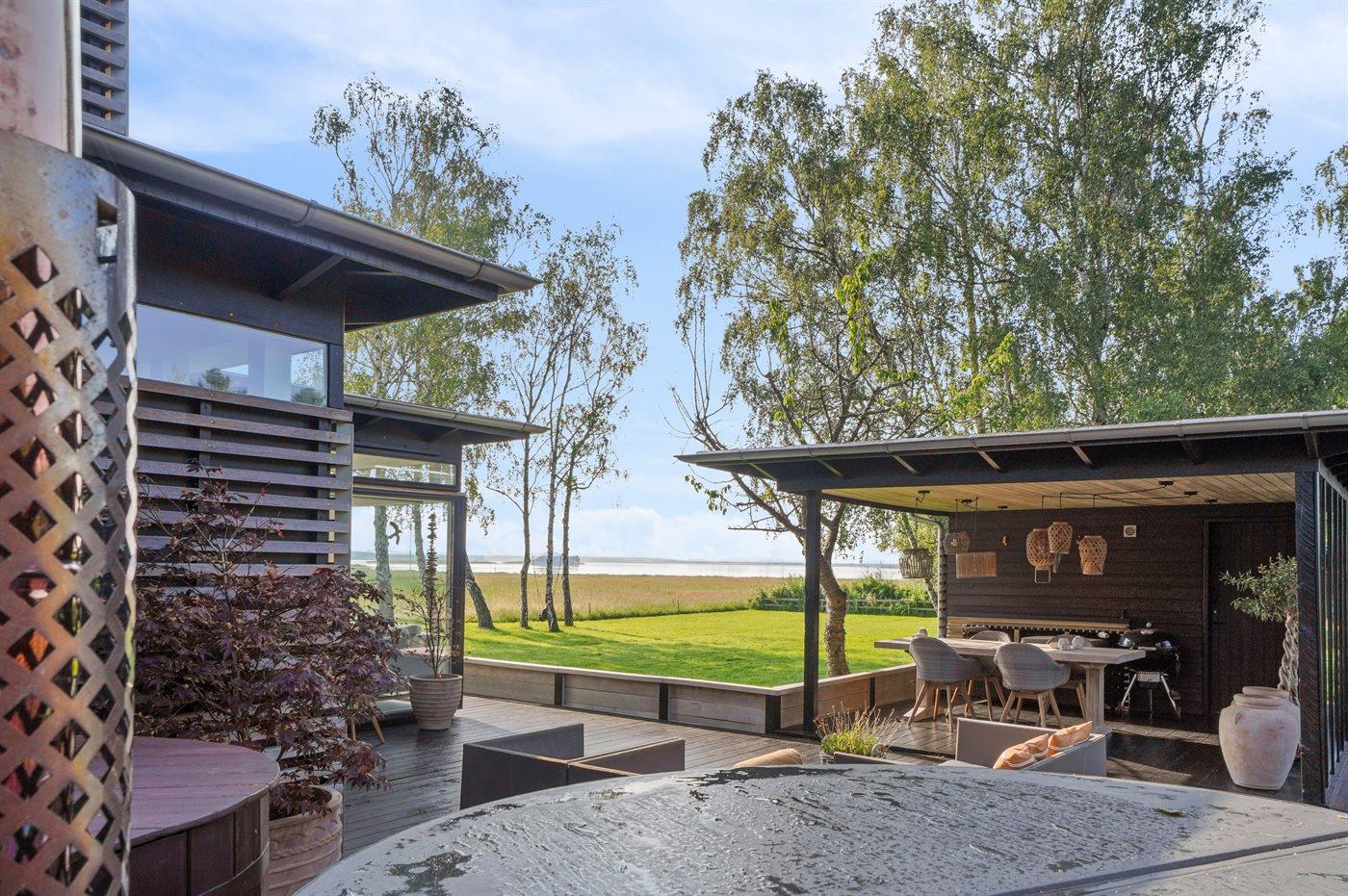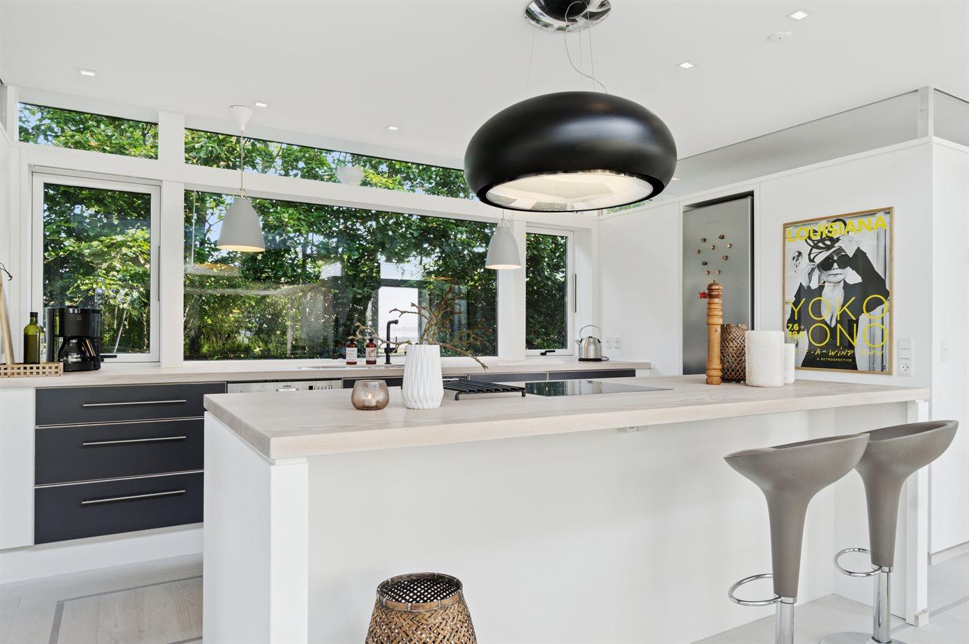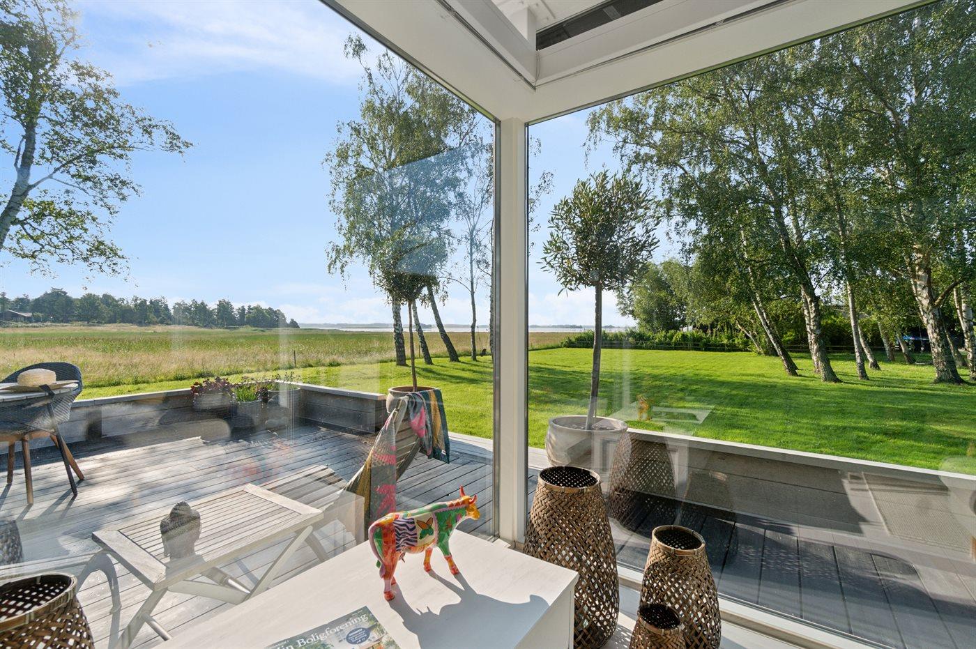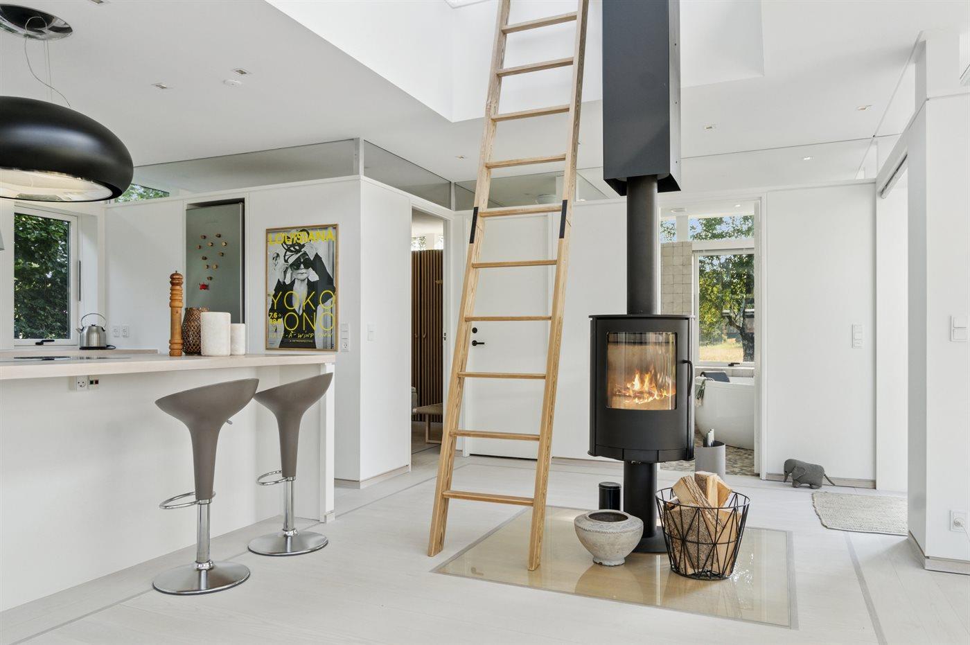 I naturskønne Tørslev Hage, direkte ved Roskilde Fjord, ligger dette eksklusive, arkitekttegnede sommerhus. Huset er opført i naturlige materialer med store vinduespartier, der inviterer lys og udsigt helt ind i boligen. Indretningen er stilren og nordisk med højt til loftet og en rolig, gennemtænkt atmosfære.