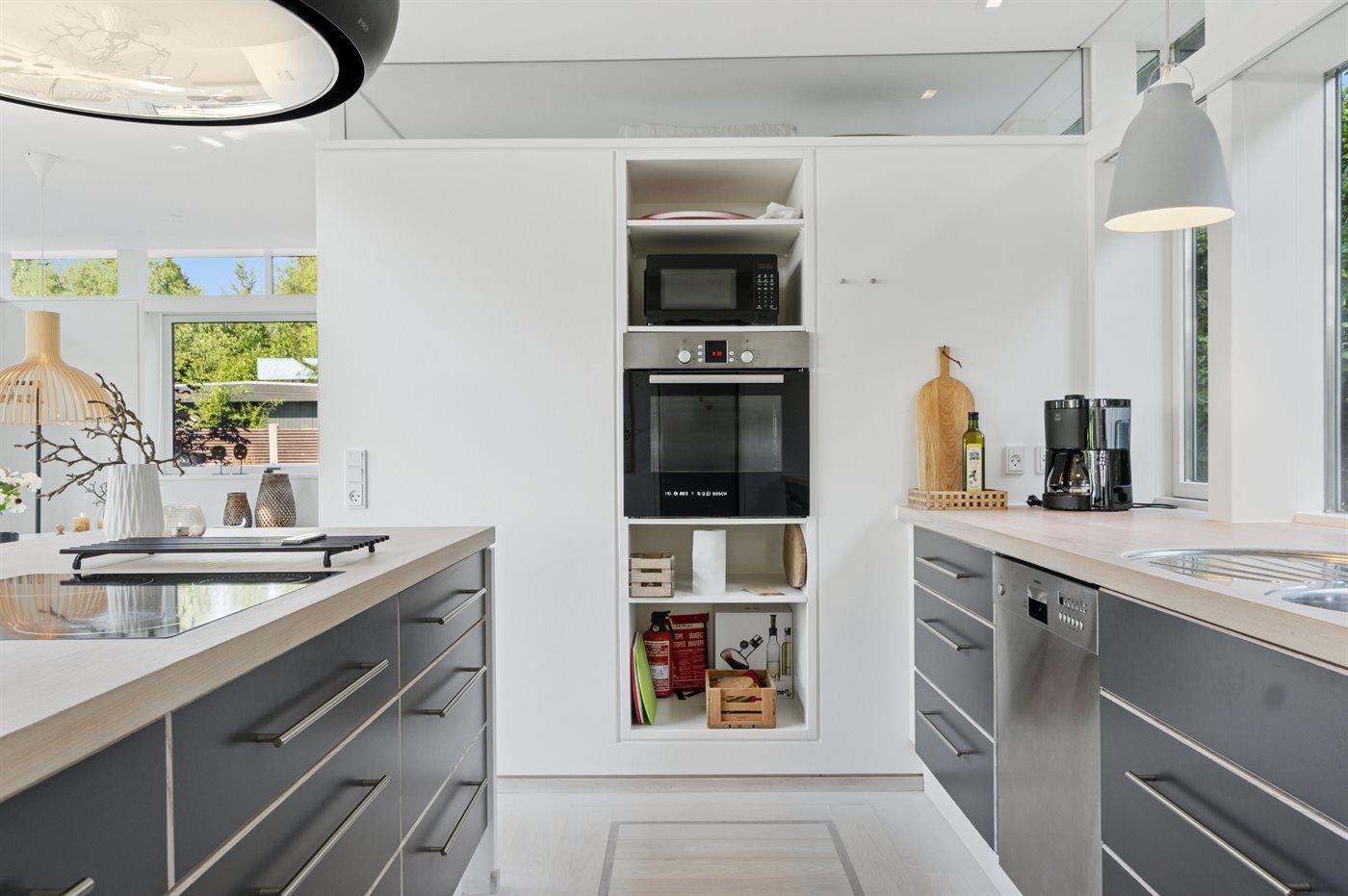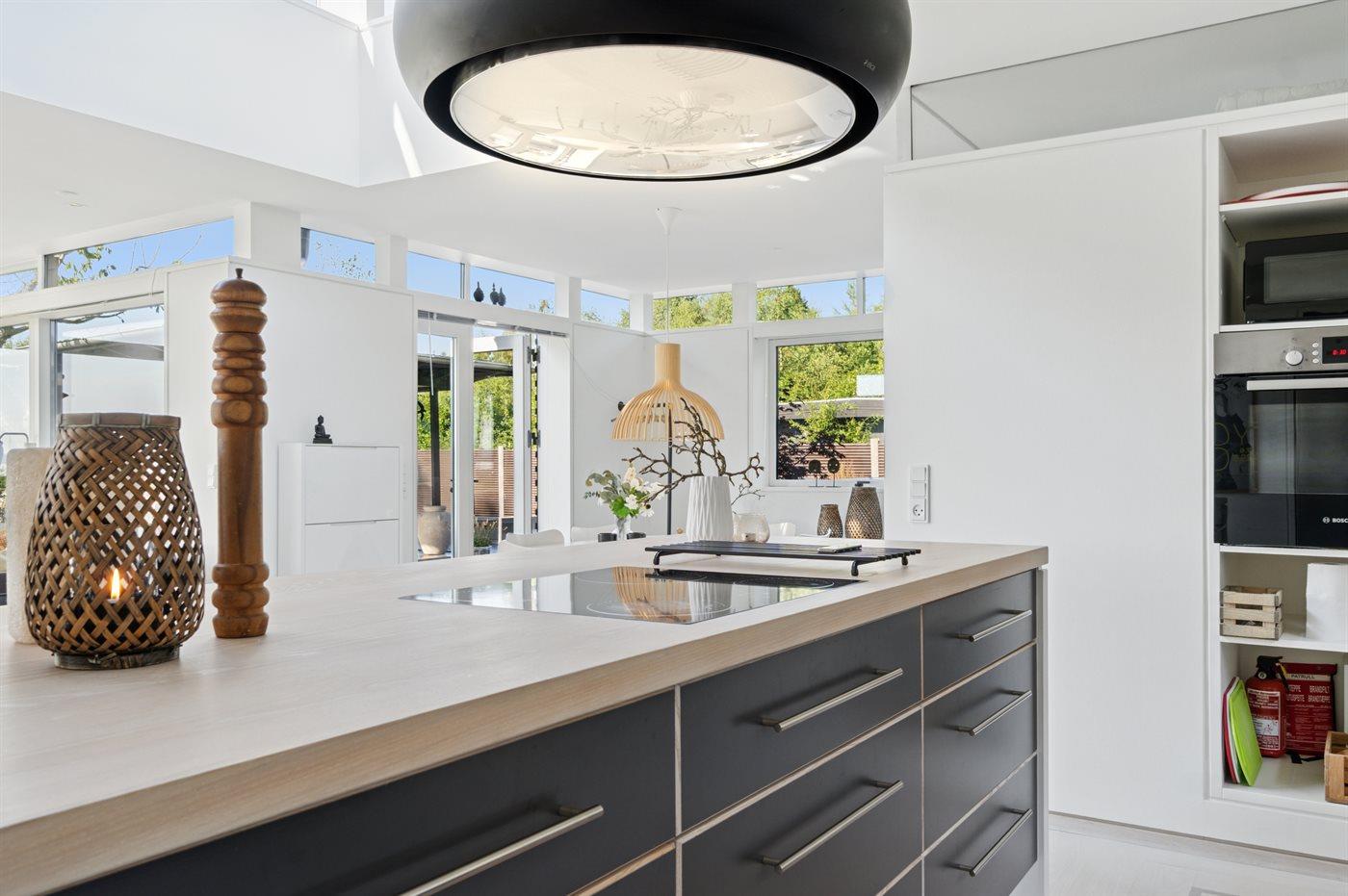 Køkkenet er udstyret med 1 køleskab. Der er 4 induktionskogeplader, varmluftovn, mikrobølgeovn samt opvaskemaskine.