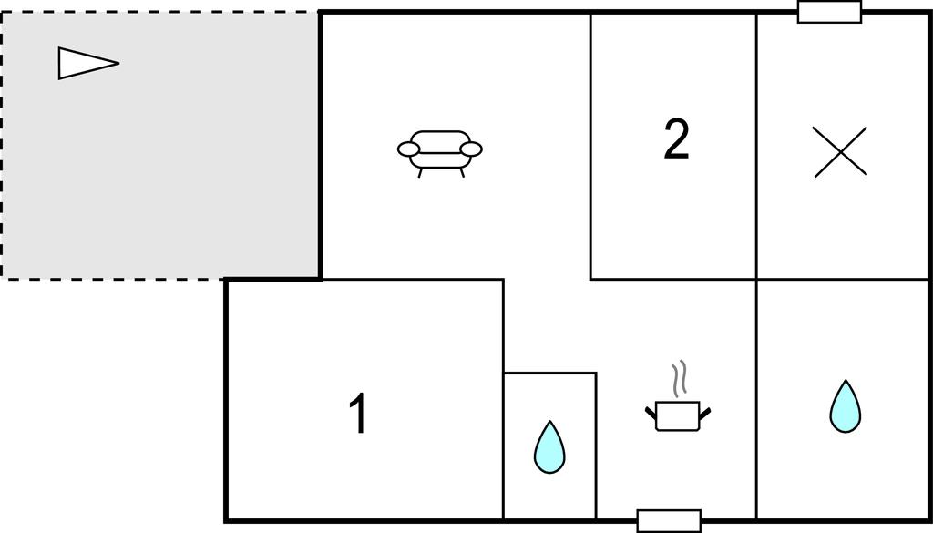 Bemærk: Et af soveværelserne har udefrakommende adgang og bruges også som opbevaring.