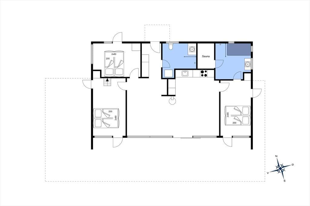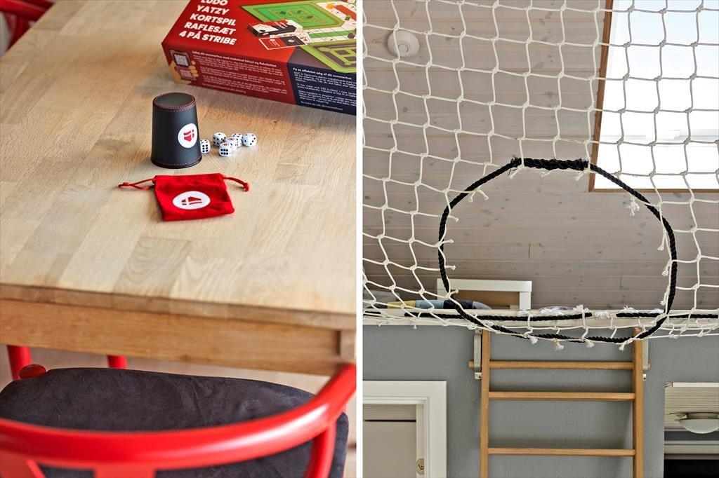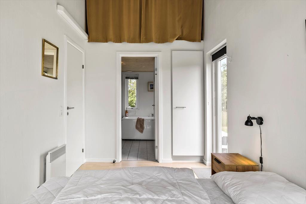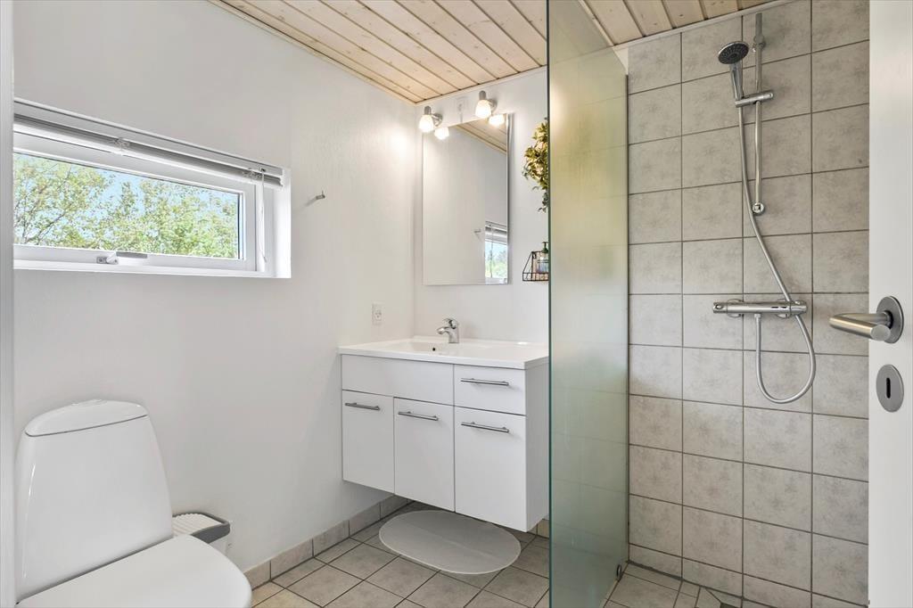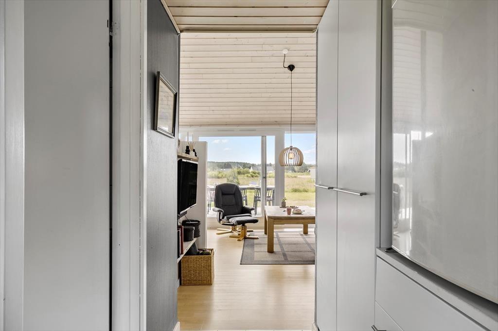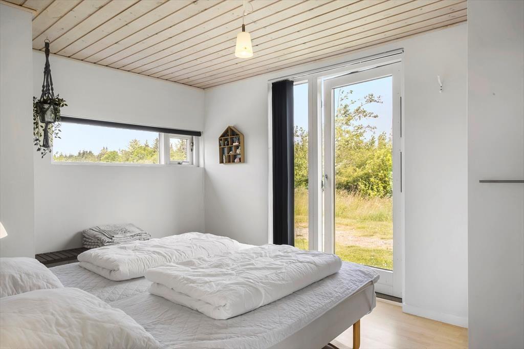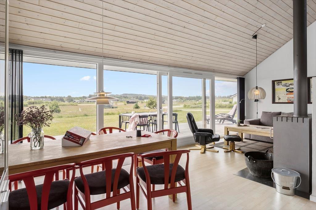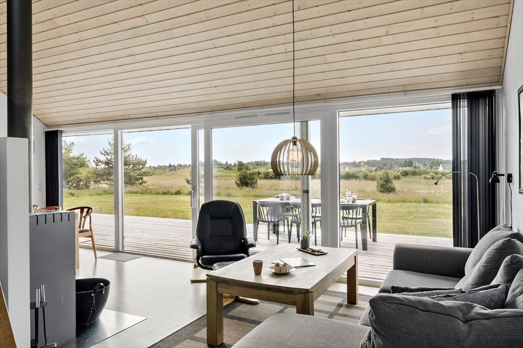 Når du træder ind i huset, mødes du af en lys og behagelig atmosfære. Opholdsrummet er indrettet med komfortable møbler og en hyggelig spiseplads, hvor feriens måltider og spilletid kan nydes i fællesskab. Den åbne planløsning gør det let at være sammen, mens der laves mad i køkkenet eller slappes af i sofaen. Stuen har store vinduer med udsigt mod legepladsen, og brændeovnen tilfører både varme og ægte sommerhusstemning. Huset har flere soveværelser og et praktisk badeværelse samt et ekstra gæstetoilet – ideelt når man er flere afsted.