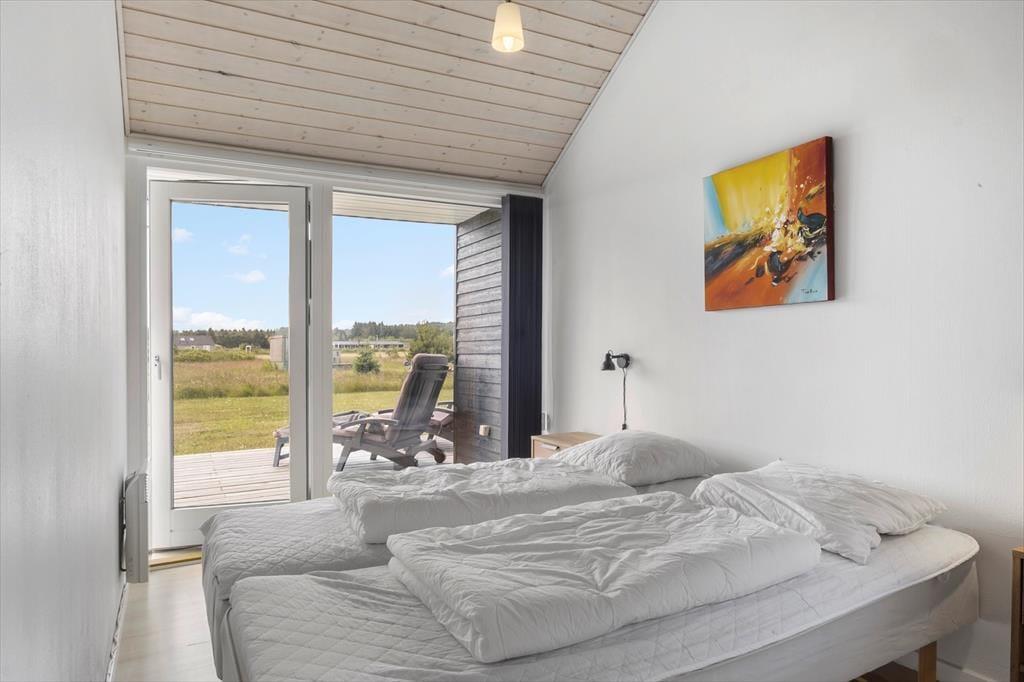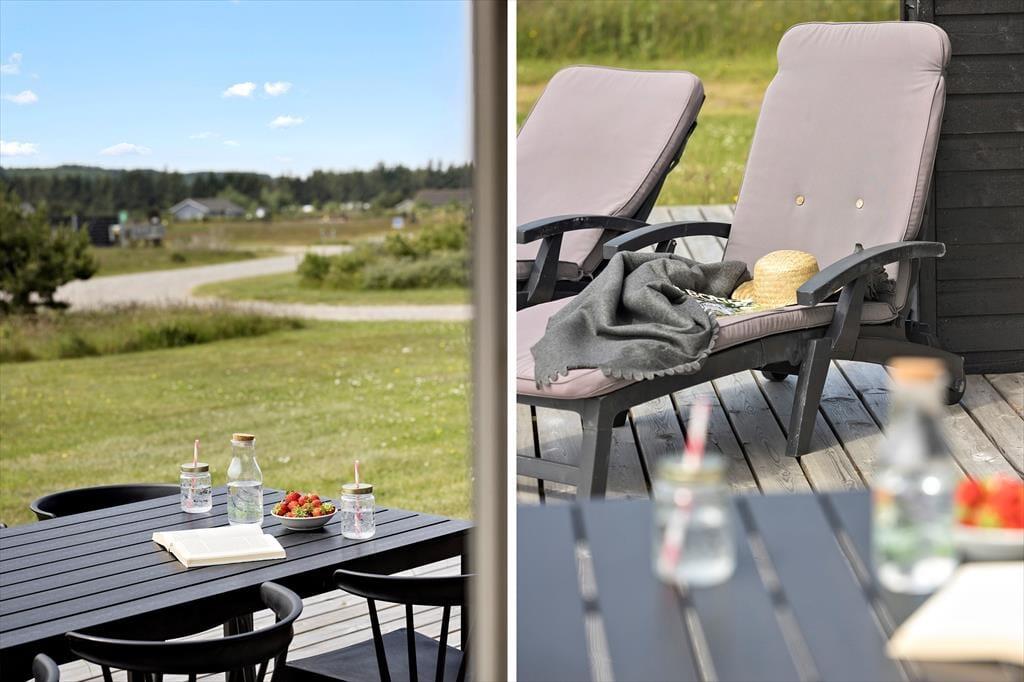 Haven og terrassen er indrettet, så du kan nyde solen og de lange sommerdage i ro og mag. På den overdækkede terrasse kan du finde skygge eller sidde i læ og grille, mens børnene kan boltre sig i haven eller løbe direkte over til legepladsen – som næsten er en del af baghaven. Herfra har du også let adgang til feriebyens øvrige faciliteter, og der er både havemøbler og liggestole, så du nemt kan koble helt af. Beliggenheden gør det nemt at nyde både privatlivet og fællesskabet i området.