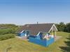 Dette sommerhus med sin karakteristiske blå farve byder på en indbydende og afslappet atmosfære. Huset har to soveværelser og plads til fem personer, hvilket gør det ideelt til en lille familie eller et par, der ønsker at nyde naturen i fredelige omgivelser. De moderne faciliteter sikrer komfort under opholdet. Området omkring huset byder på ro og naturskønne landskaber. Kun 800 meter til stranden gør det nemt at tilbringe tid ved vandet, hvor der er mulighed for at bade, gå lange ture eller fiske. Her finder du også skove og stier til udendørs aktiviteter. Sommerhuset på 81 m² giver god plads til afslapning. Det åbne køkken og opholdsrum skaber en hyggelig ramme for samvær. Udendørs er der en dejlig terrasse, hvor du kan nyde de lange, lyse sommeraftener. Denne feriebolig er et perfekt udgangspunkt for både afslapning og udforskning af den danske natur. Tæt på både skov og strand er der noget for alle – både til aktiviteter og til stille stunder. Obs, udlejes ikke til erhversmæssigt brug.
