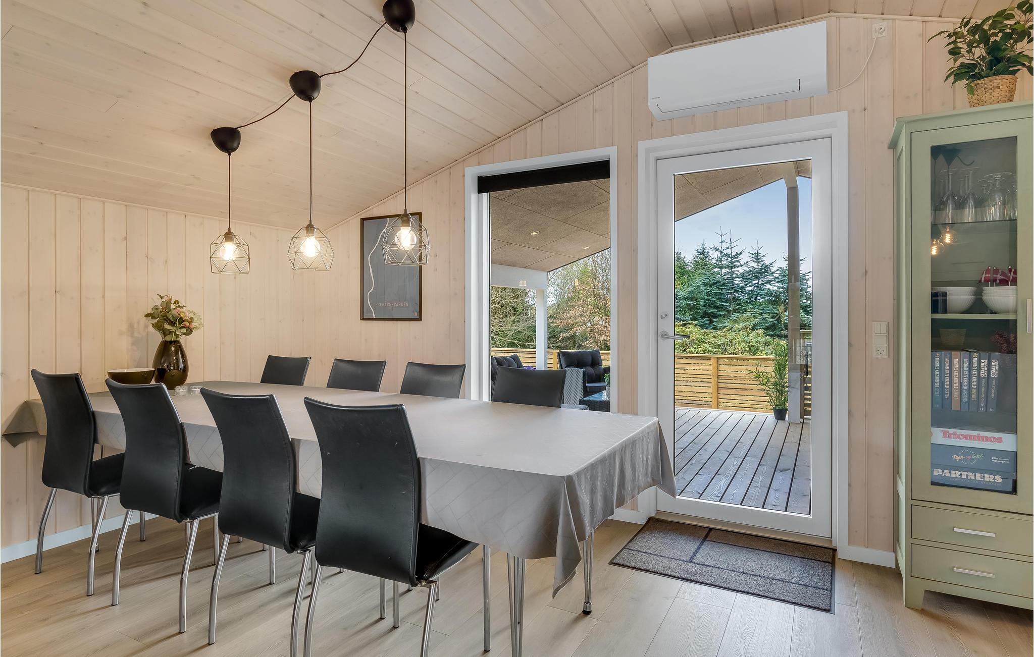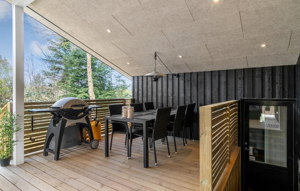 Det komfortable hus byder jer velkommen midt i naturen og er det ideelle sted for en uforglemmelig pause, både for de aktive og for dem, der foretrækker et langsommere tempo. De velindrettede værelser får et indbydende udtryk gennem den lyse træbeklædning og det smagfulde interiør, og det store køkken-alrum bliver hurtigt centrum for fælles aktiviteter. Indtag jeres måltider ved det lange spisebord. I sofahjørnet kan I slappe af efter en udflugt og se en god film, spille eller blot nyde hinandens selskab. Husets udendørsområde har også meget at byde på. Uanset om I solbader på terrassen eller tager en lur i det integrerede shelter, vil I mærke roen og ferielykken strømme igennem jer. I kan altid springe i den fælles pool. Afslut en skøn dag med en hyggelig grillaften i samvær med familien eller gode venner.