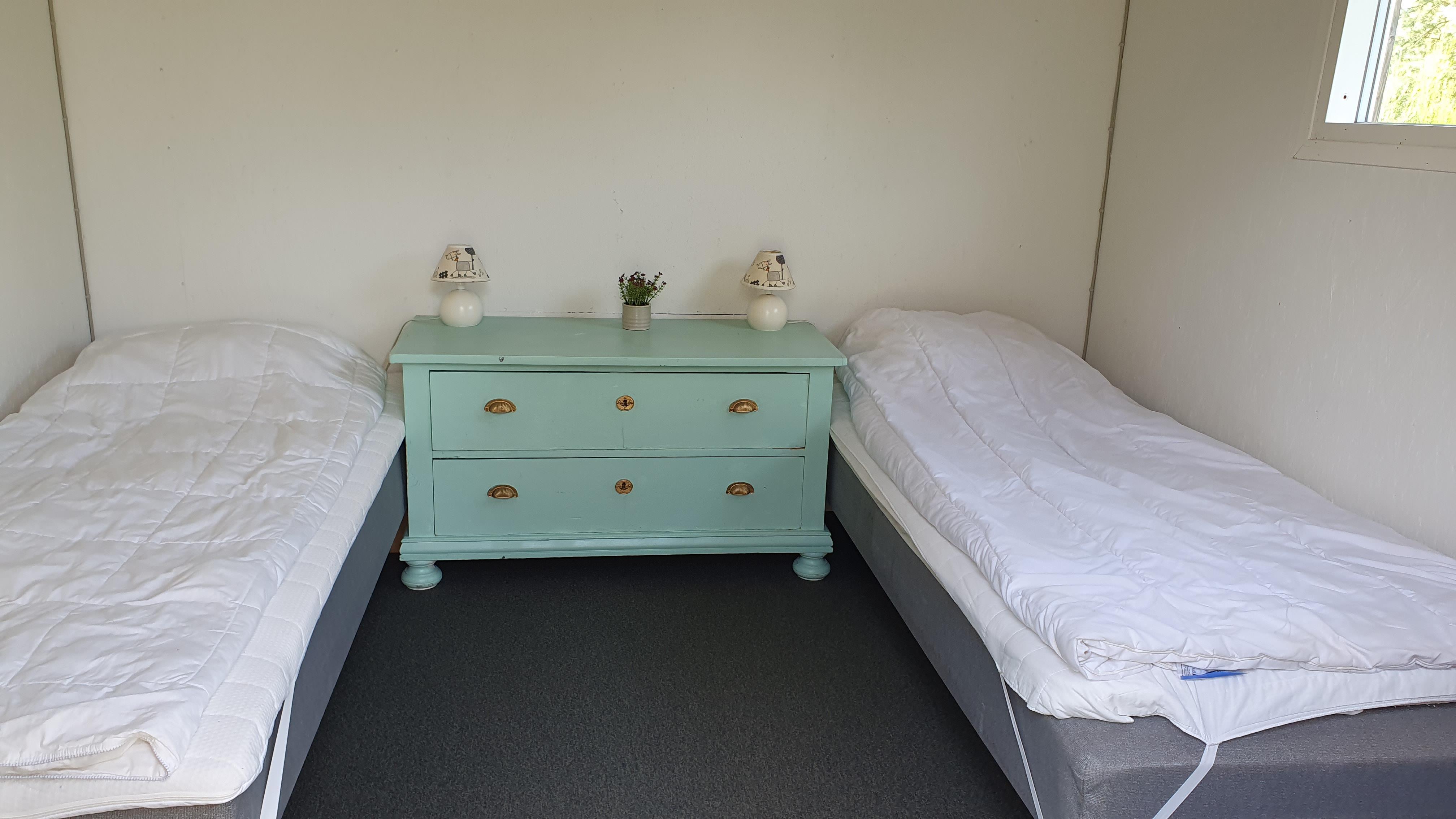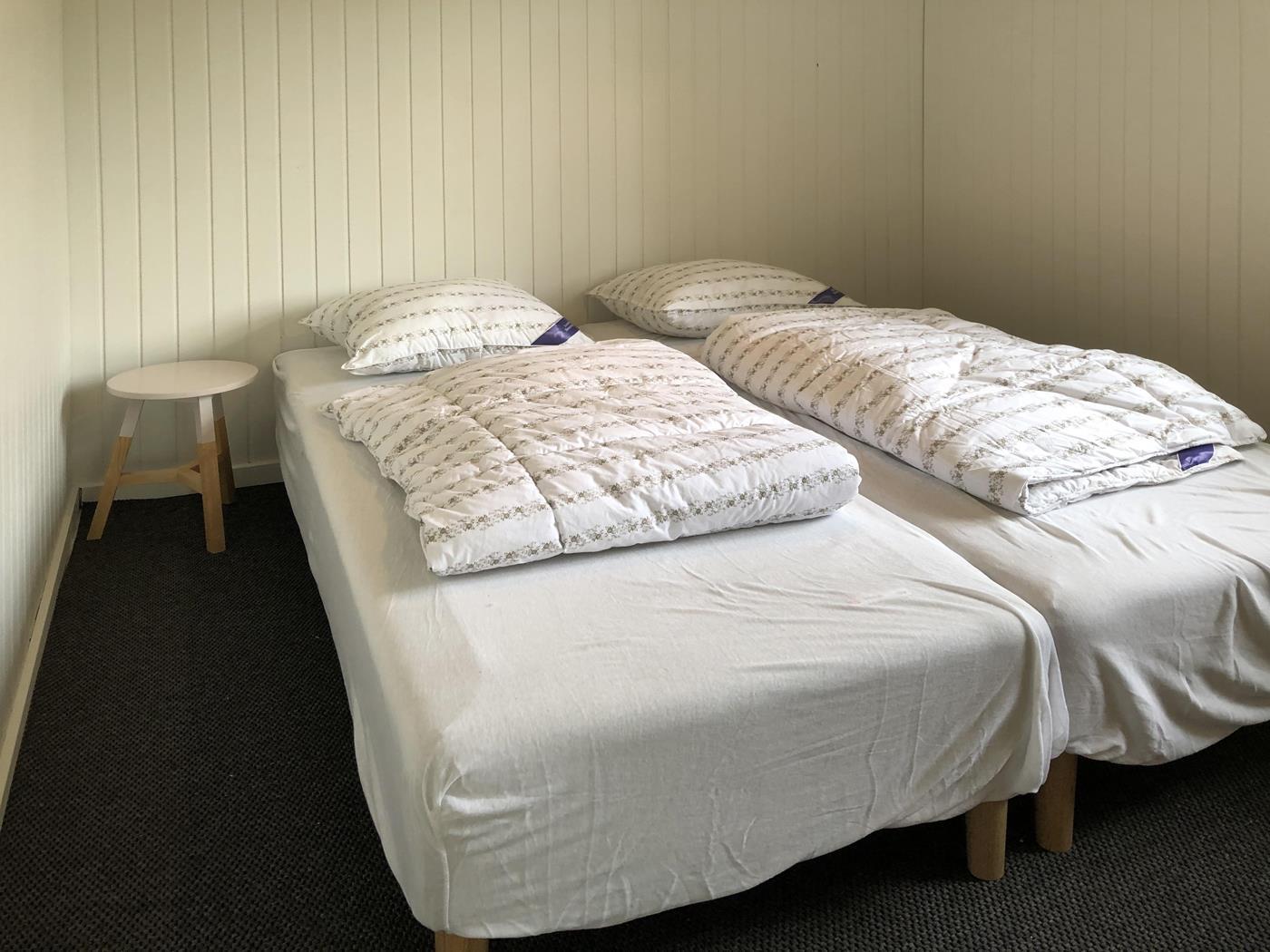 I selve huset er der 3 soverum (alle værelser har 2 boksmadrasser) samt et anneks med 2 sovepladser (også 2 boksmadrasser).