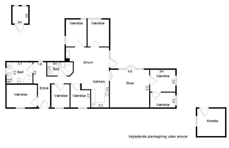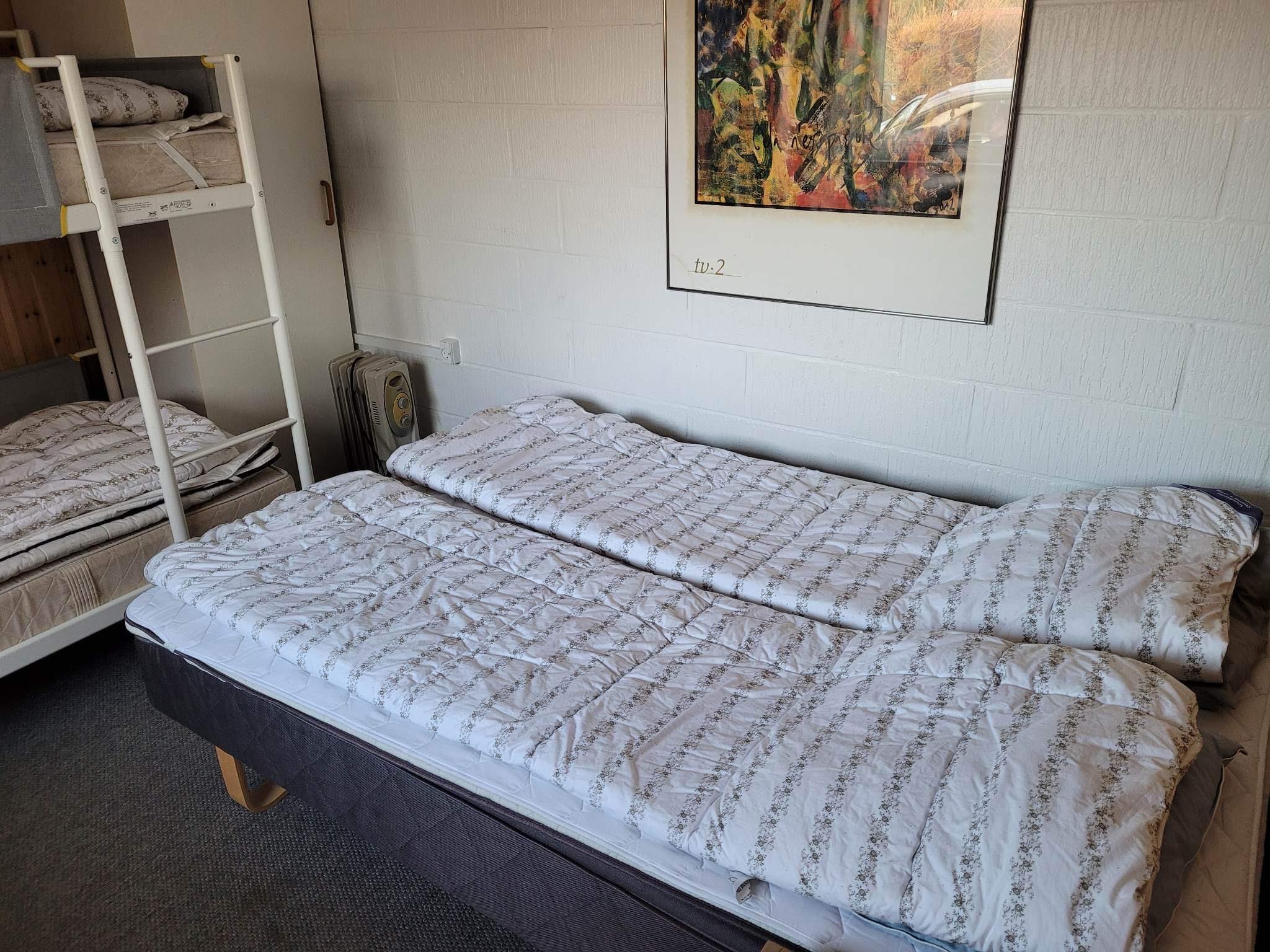 Værelse 1 : Familieværelse med 1 dobbeltseng og 1 køjeseng med 2 sovepladser. Værelse 2 : 1 dobbeltseng. Værelse 3 : 1 køjeseng med 2 sovepladser. Værelse 4: 2 boksmadrasser. Værelse 5: 2 boksmadrasser. Værelse 6:1 sovesofa. værelse 7: 1 dobbeltseng. Værelse 8. anneks med 2 boksmadrasser. Værelse.9 anneks med 2 boksmadrasser