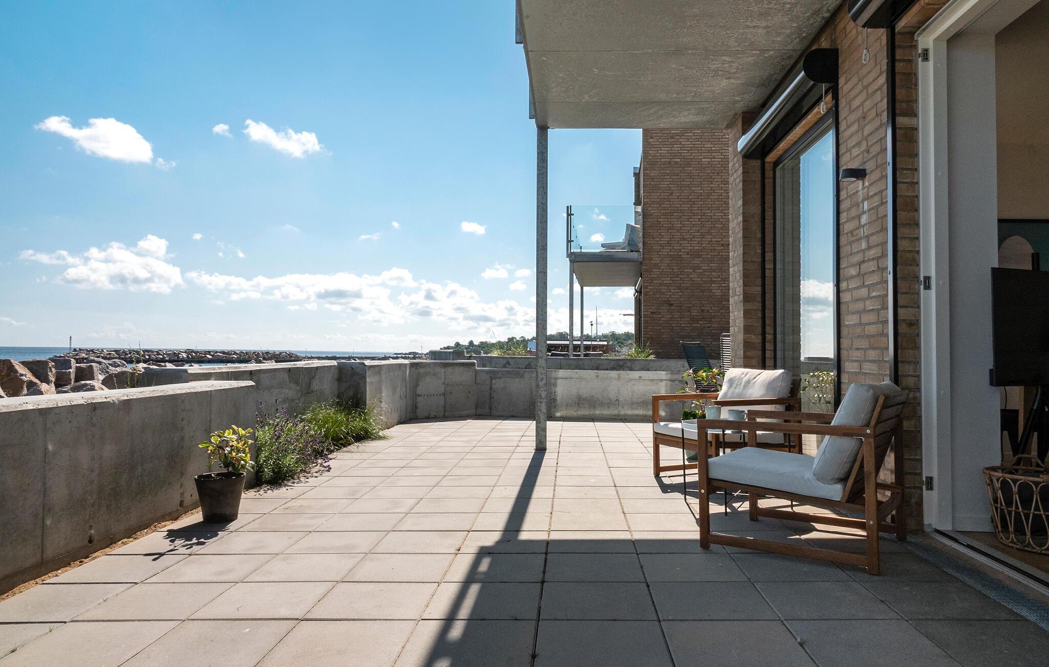 Udenfor venter en indbydende terrasse, hvor I kan nyde den friske havbrise og den smukke udsigt. Takket være den nære beliggenhed til havet er der rig mulighed for forfriskende badeture og afslappende vandreture langs kysten.