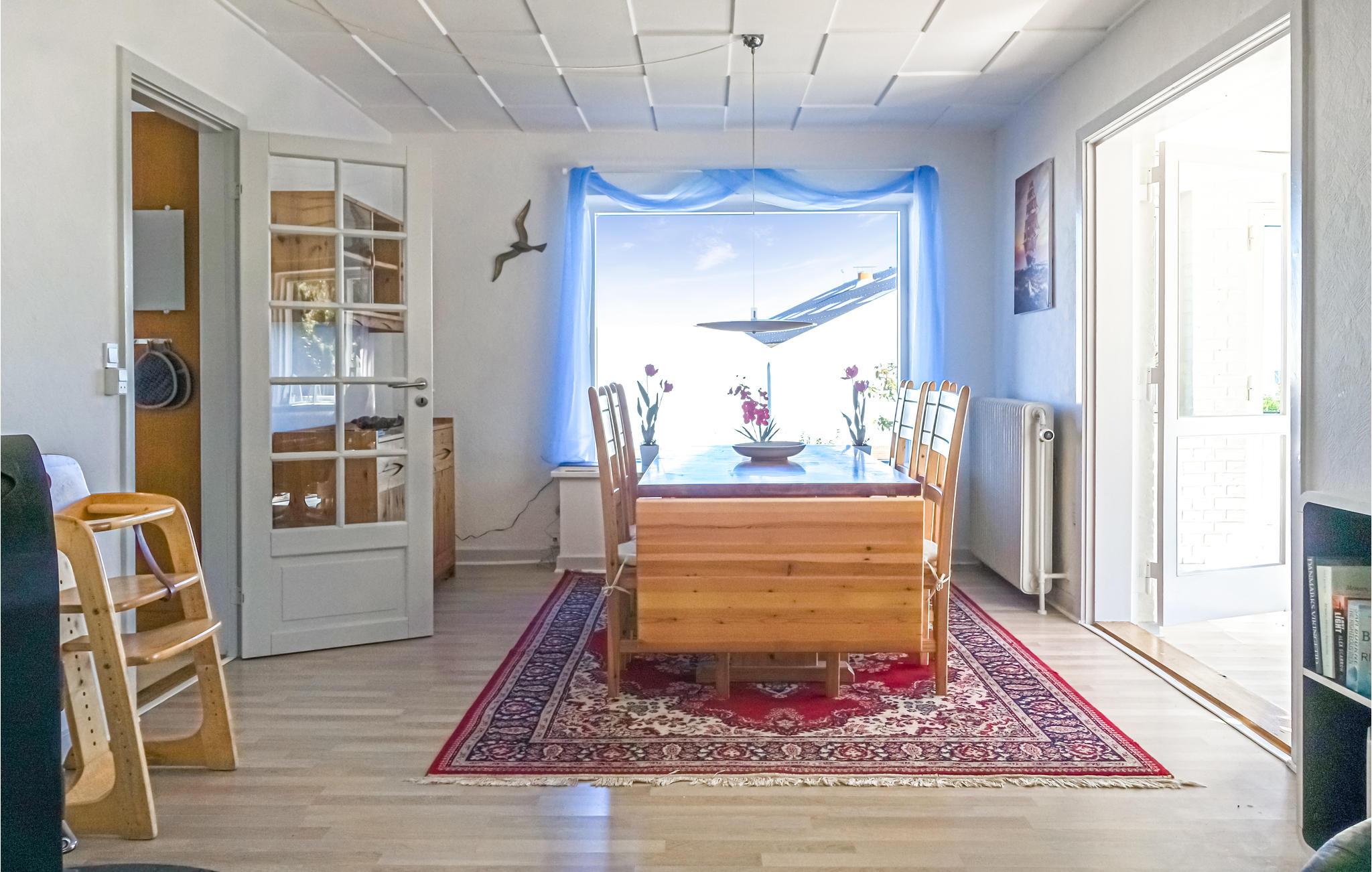 Dette hyggelige hus ligger centralt placeret på havnen i Tejn - ikke så sært, at den har fået navnet "Havnehyggen". Foruden de tre soveværelser på 1. sal er der yderligere to soveværelser i kælderen, så her er der god plads til alle.