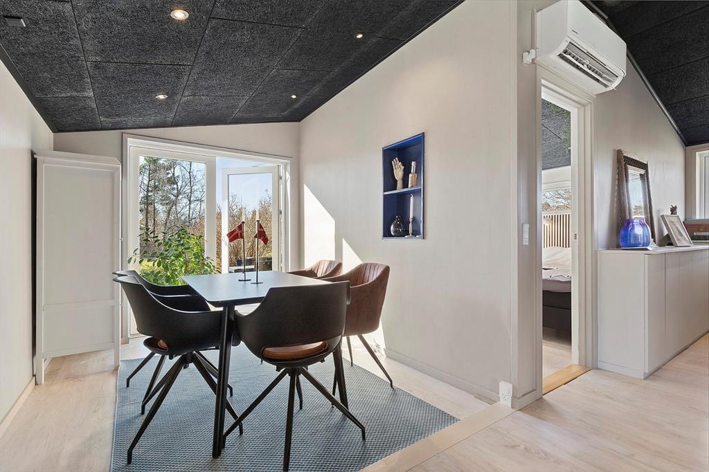 Sommerhus i Følle Strand, Østjylland, med plads til 5 voksne og 2 husdyr. Der er en hyggelig indretning, og du finder desuden opvaskemaskine i boligen.