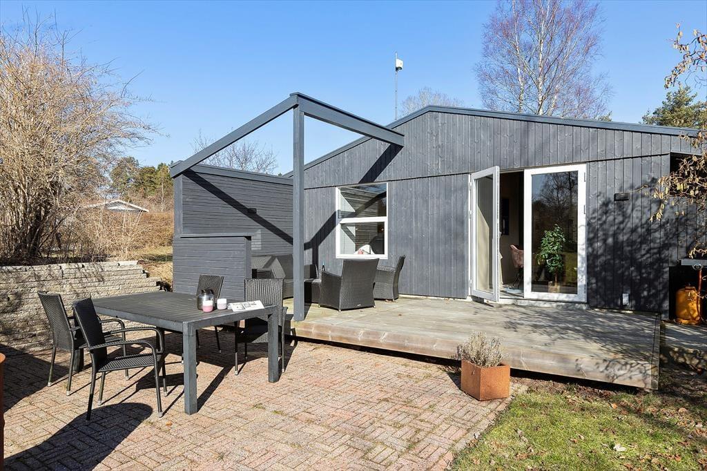 Hyggeligt sommerhus i Rønde med plads til 5 personer og 2 hunde, gratis Wi-Fi og gasgrill.