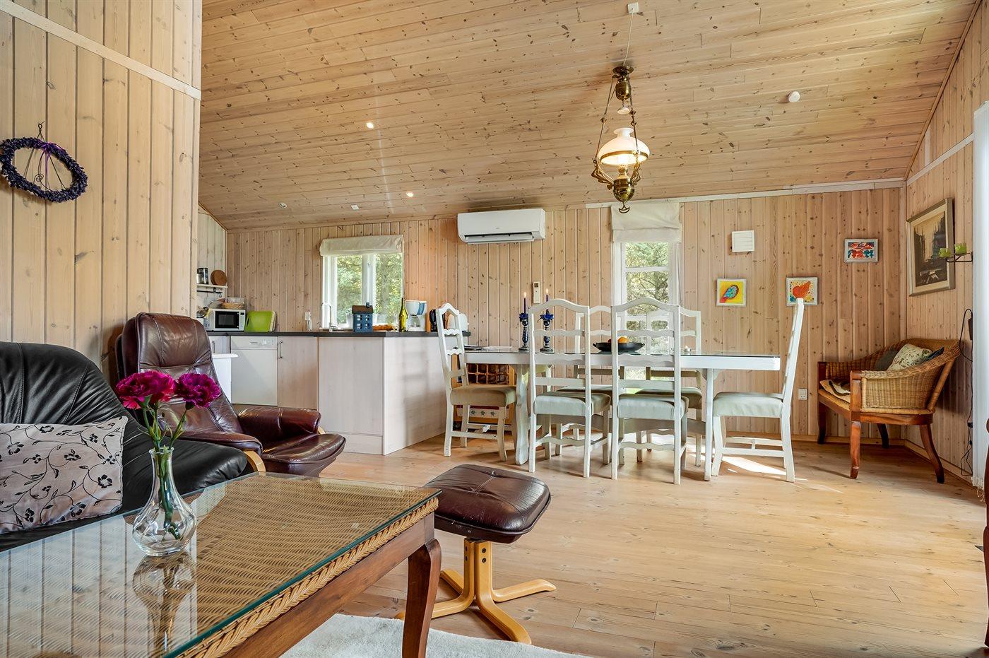 Sommerhuset egner sig til 4 personer. Ferieboligen er på 63 m² og er bygget i 2002. Det er tilladt at medbringe 1 husdyr. Ferieboligen er udstyret med energibesparende varmepumpe. Ferieboligen har vaskemaskine. Frysekapacitet på 40 liter. Til de små er der 1 stk. barnestol.