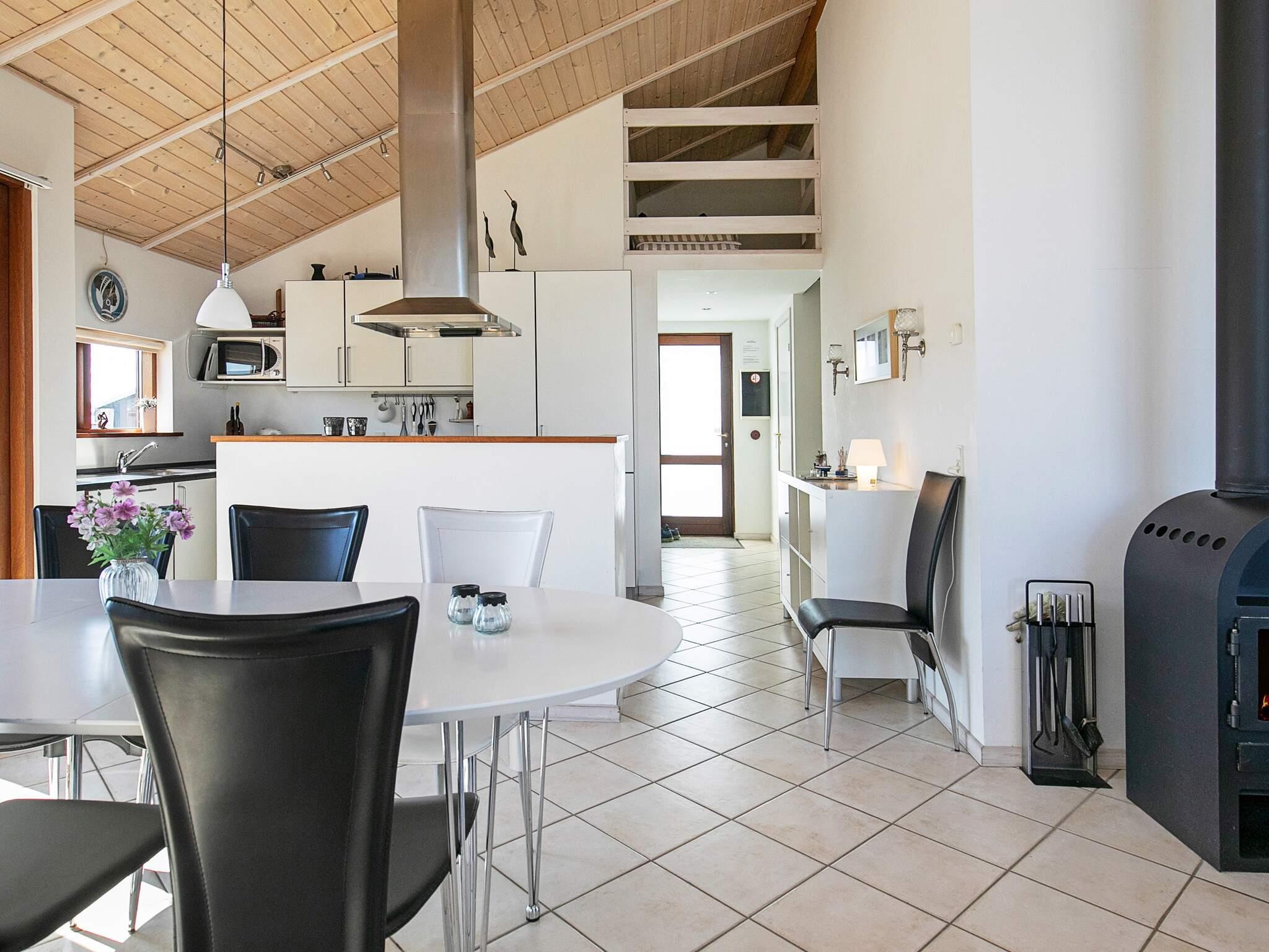 Velholdt kvalitetssommerhus med panoramaudsigt over Nissum Fjord og i kort gåafstand til Vesterhavet. Lys indretning med badeværelse med spabad og sauna og soverum i begge ender af sommerhuset. Der er også gæstetoilet. Klinkegulv i opholdsstuen og køkken/alrum. Trægulve i alle soverum og gulvvarme overalt i sommerhuset. Den delvist lukkede terrasse gør, I kan sidde ugenert og i læ ved huset. Der er 400m til Vesterhavet, hvor der kan bades. Ønsker man at bade i fjorden, som er meget børnevenlig, er det også en mulighed indenfor et par kilometer. I Thorsminde by er der gode fiske muligheder ved molen. I sommerperioden er der fiske auktion i byen.