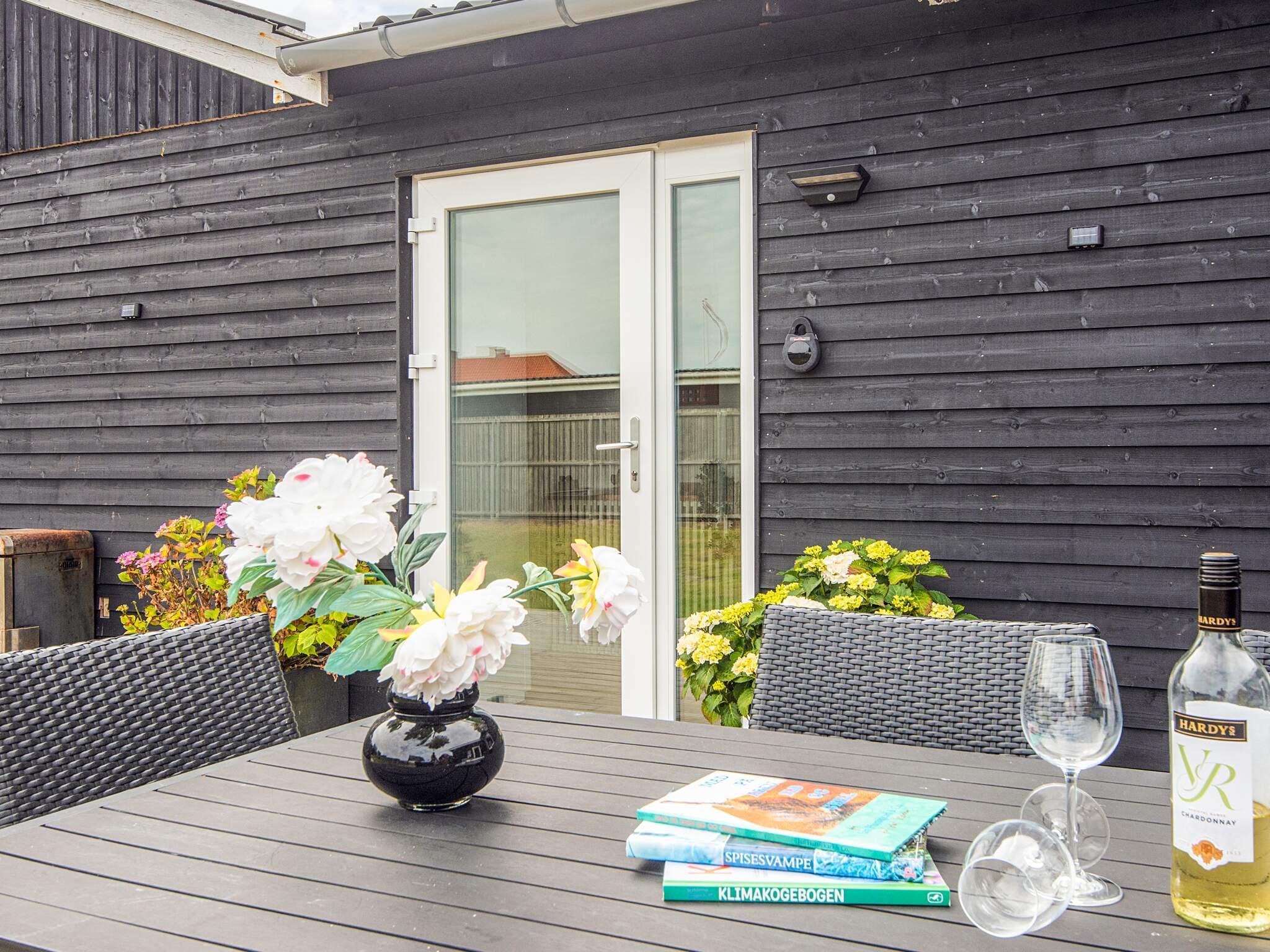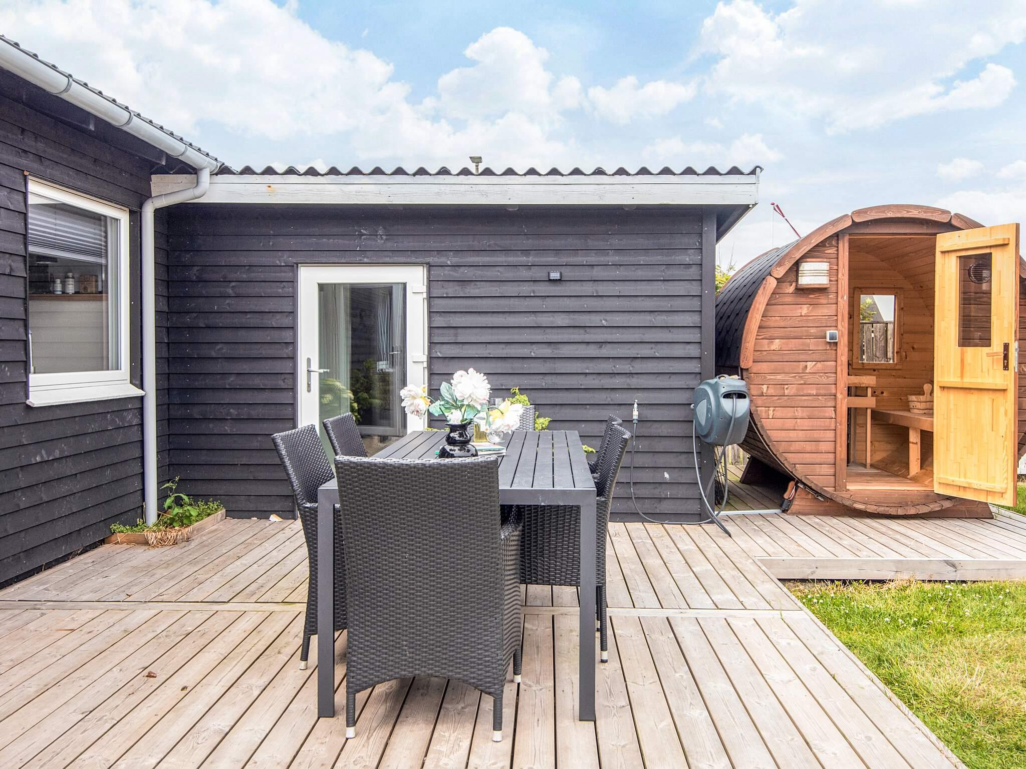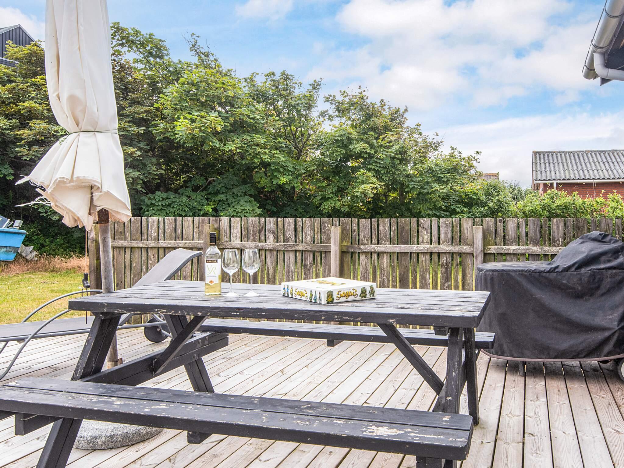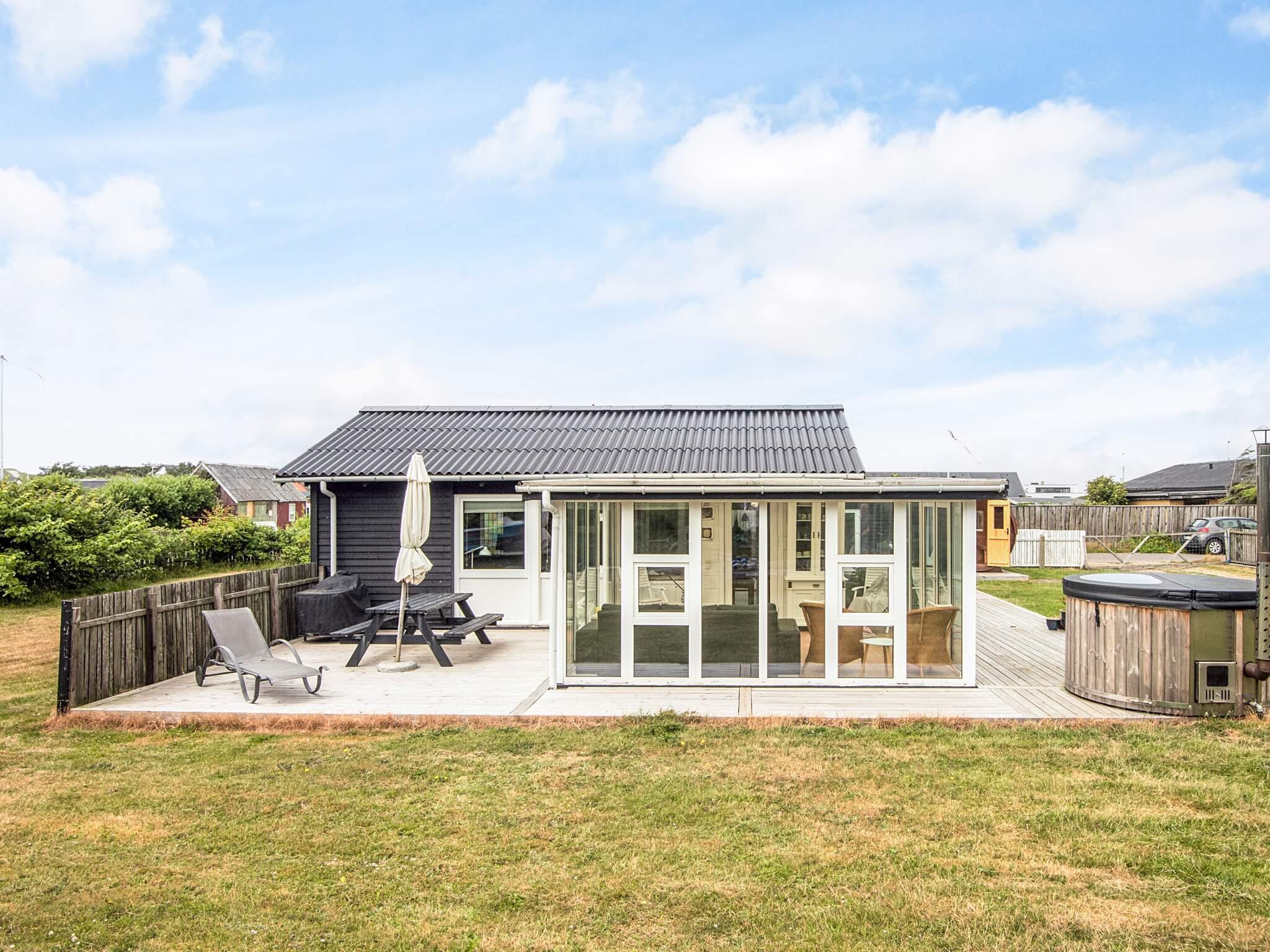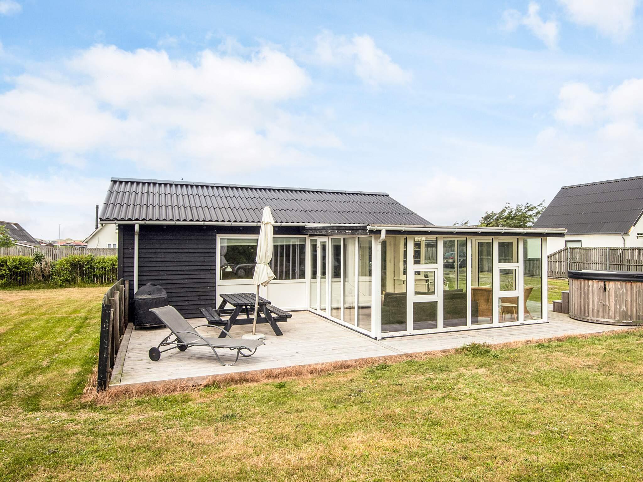 Godt indrettet sommerhus med udendørs jacuzzi samt udendørs bruser med både koldt samt varmt vand. Beliggende midt i Thorsminde by tæt på både havn, Vesterhavet og Nissum Fjord. Den velindrettede stue, der bl.a. indeholder et stort TV, har udgang til en 25m2 stor overdækket terrasse, hvorfra I kan overskue haven og nyde sol og udeliv inden døre på kølige dage. I det veludstyrede køkken er der indrettet en hyggelig spisekrog. De tre værelser indeholder hver en dobbeltseng, og i to af værelserne er der installeret TV. På den østvendte terrasse kan I nyde morgensolen mens I indtager morgenkaffen, eller tage en tur I den flotte sauna. P å den sydvestvendte terrasse kan I fra jacuzzien nyde solen om eftermiddagen og solnedgangen om aftenen I den lækre jacuzzi er der både massagedysser og lys Kun 200 m fra huset er der mulighed for at fiske langs molerne ved havnen, hvorefter de kan tilberedes enten på grill eller i rygeovn. For enden af vejen er der stor legeplads, fodboldbane og udendørs fitness. Nissum fjord med lavt vand og gode bademuligheder ligger blot 200 m. fra huset I dette hus er der mulighed for at opleve det autentiske Thorsminde med fiskeauktion om sommeren og tørfisk der hænger i haverne.