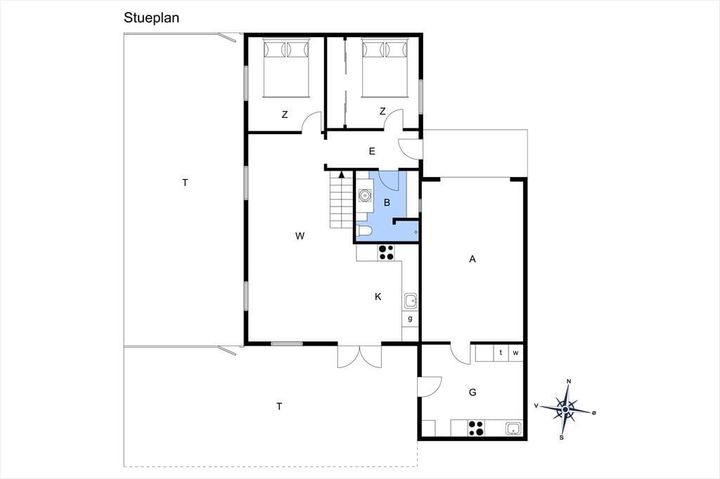Glæd jer til et hyggeligt og indbydende feriehus med plads til afslapning og samvær. Huset byder på et veludstyret køkken, hvor I kan tilberede lækre måltider og nyde dem sammen ved spisebordet, mens hyggen breder sig. Fra den lyse stue er der direkte udgang til en sydvendt, flisebelagt terrasse, hvor I kan nyde en god bog, en kop kaffe eller en lækker middag under åben himmel.