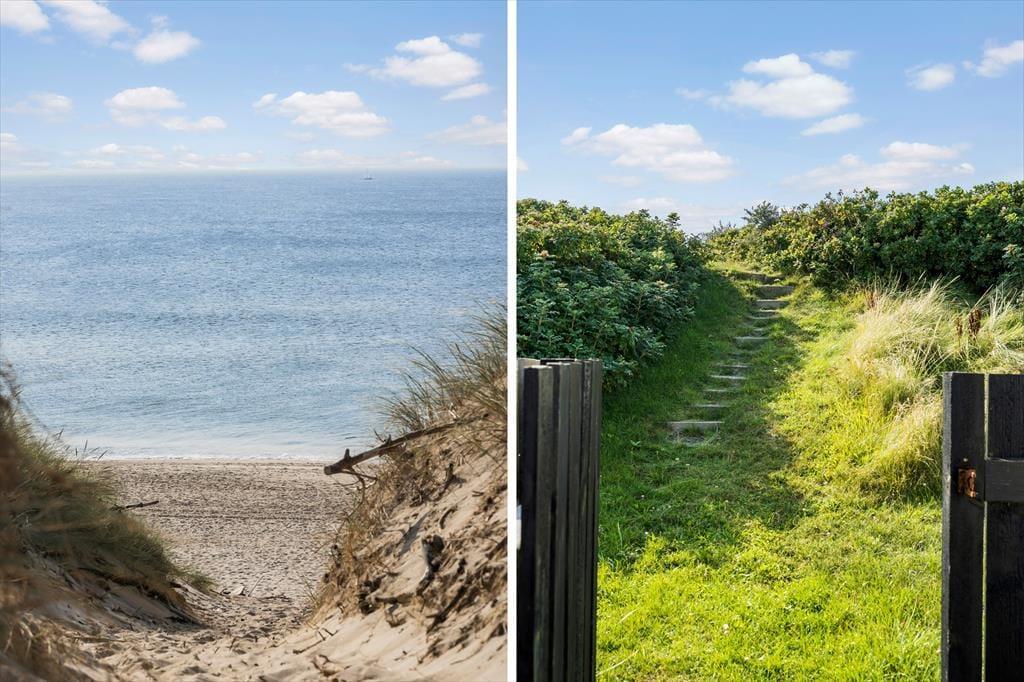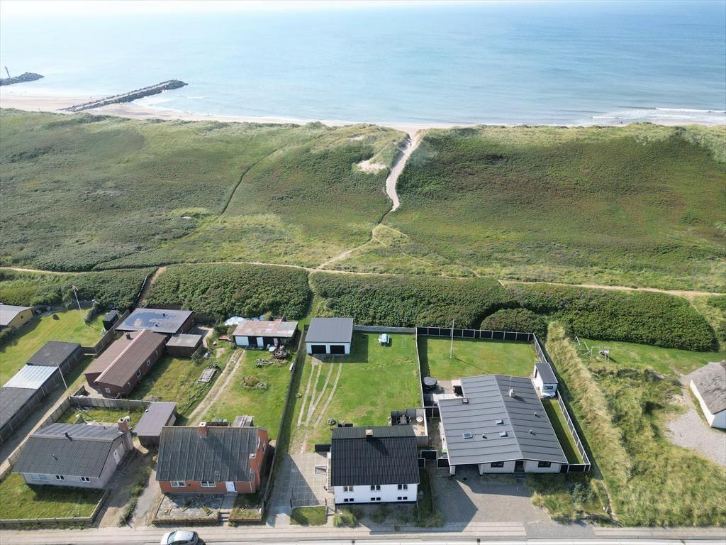 Sommerhuset har en fantastisk beliggenhed med Vesterhavet som nærmeste nabo mod vest. Når I slapper af i den dejlige have, kan I virkelig fornemme naturens kræfter og få følelsen af at være helt tæt på havet. Fra grunden går en sti direkte til stranden, så I hurtigt kan komme ud og opleve havet på nært hold. Hvis I er til sjov på vandet, er der rig mulighed for at mærke vindens sus i håret ved at kitesurfe eller nyde en tur på fjorden i kano.