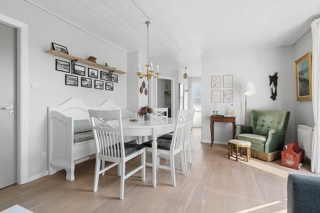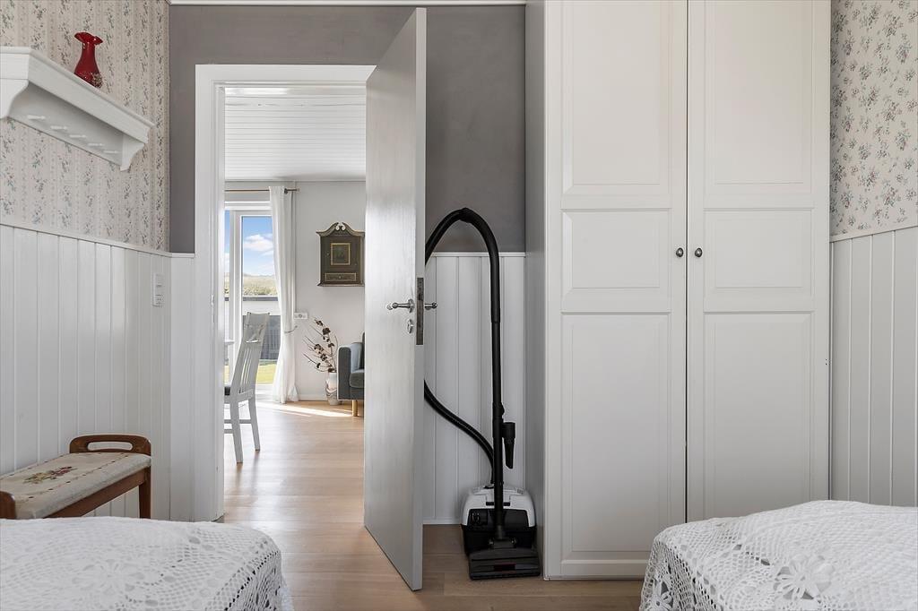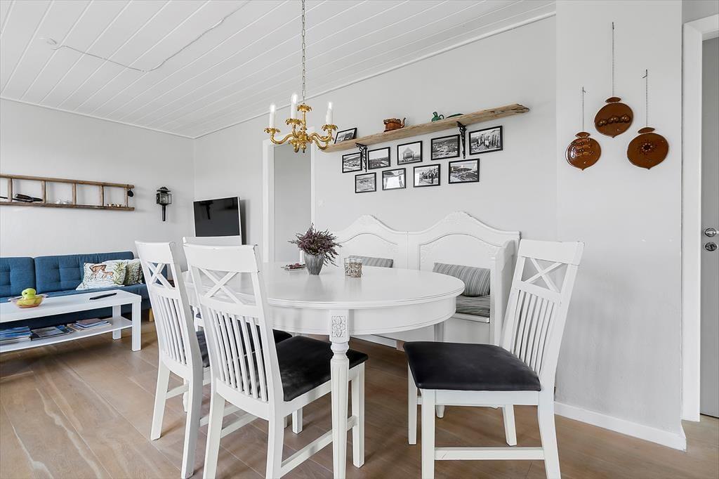 Huset emmer af ægte dansk sommerhusstemning med sin hyggelige indretning, det lyse og rummelige miljø og masser af plads til både afslapning og samvær. Her er alt, hvad du behøver for at skabe gode ferieminder, uanset om du vil nyde en stille stund med en bog eller samle familien til en hyggelig spilleaften. Ved køkkenbordet kan I starte dagen med morgenkaffe og den smukke solopgang med kig til fjorden mod øst, og fra spisebordet er der en betagende udsigt til de smukke klitter mod vest – åbnes vinduet, kan I høre Vesterhavets beroligende brusen i baggrunden.
