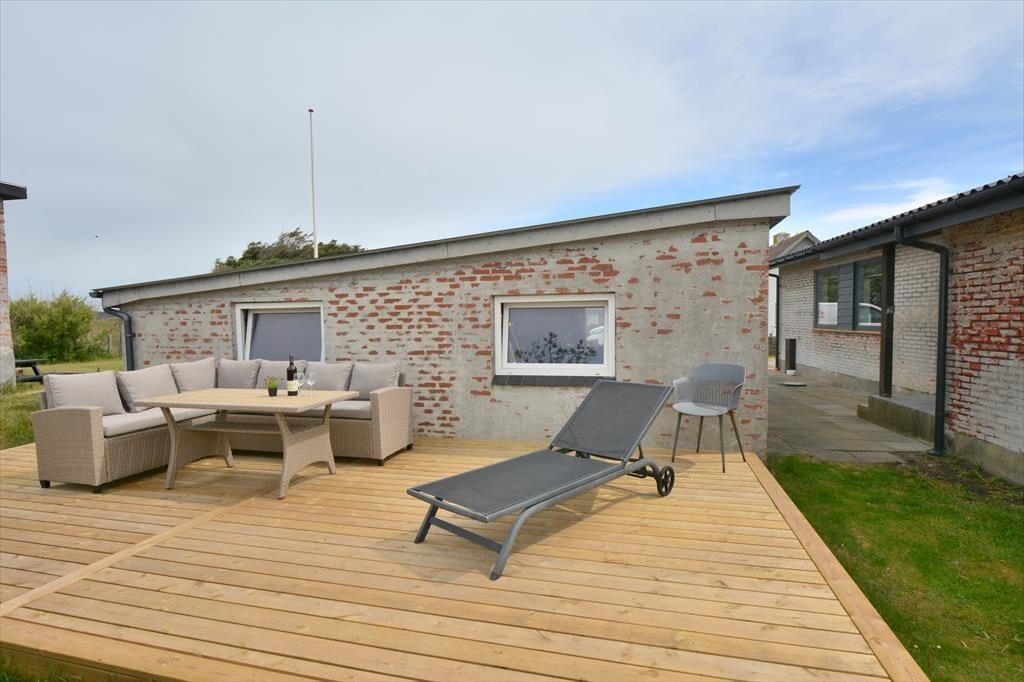 Fra stuen træder I ud på en dejlig sydvendt træterrasse, hvor I kan nyde solen fra morgen til aften – perfekt til grillmiddage eller en stille stund med en god bog. Udhus, hvor fiskestængerne og de medbragte cykler kan sættes ind.