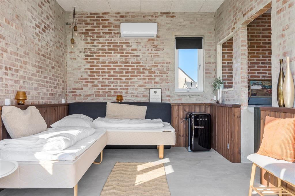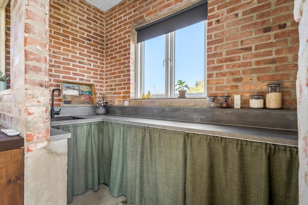 Sommerhuset byder på et åbent køkkenalrum, som indbyder til hygge og samvær. Her kan I lave mad sammen, spille spil eller bare nyde hinandens selskab i lyse og rummelige omgivelser. På grunden findes et charmerende anneks - et tidligere vandværk, der oser af historie og sjæl – en atmosfære som ikke kan beskrives. Med to sovepladser, eget køkken og badeværelse er annekset ideelt for større børn, forældre eller venner, der gerne vil have lidt privatliv under ferien